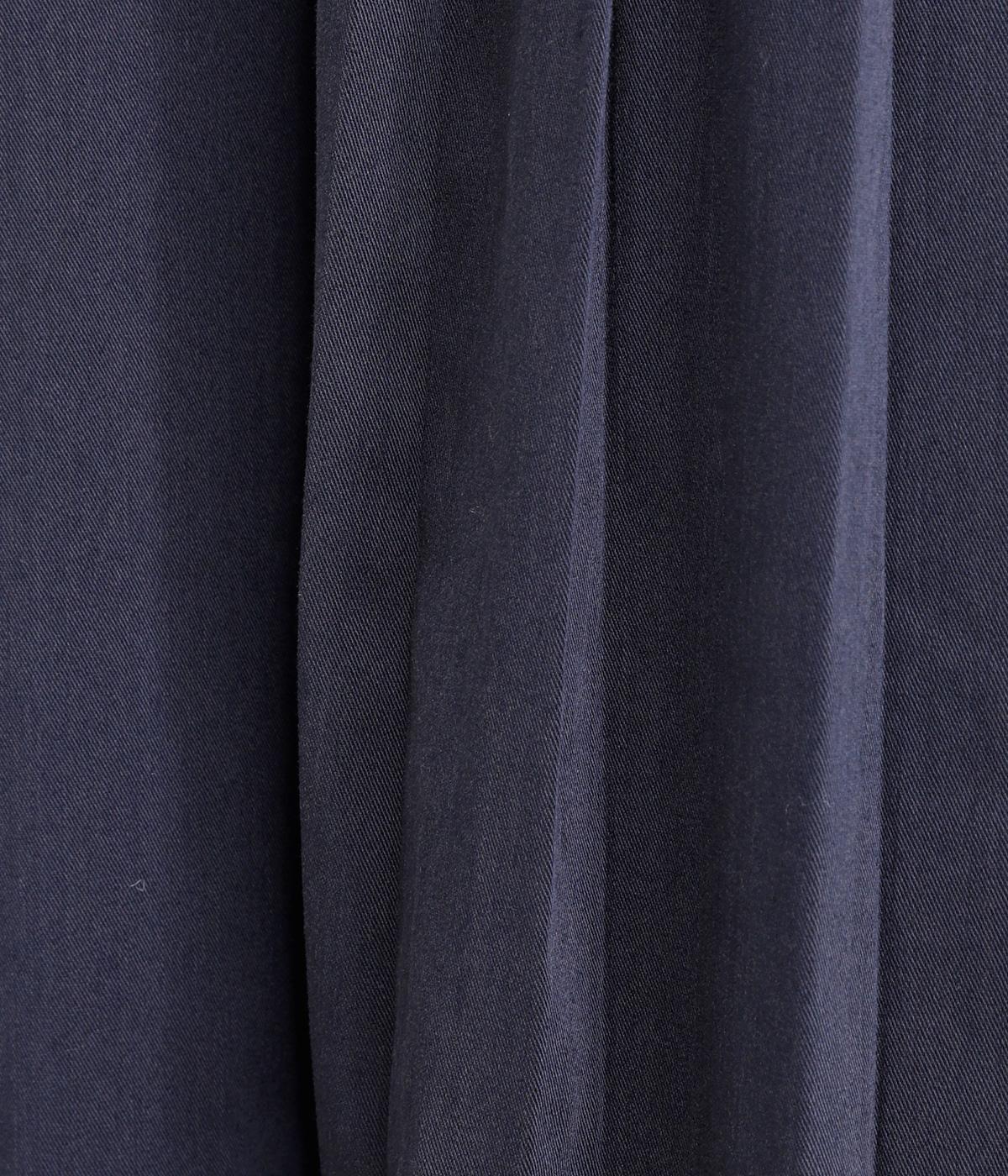 ほんのりとした光沢と落ち感のある綾織り生地。しなやかな質感ときれいめな仕上がりがスーツライクな印象です。