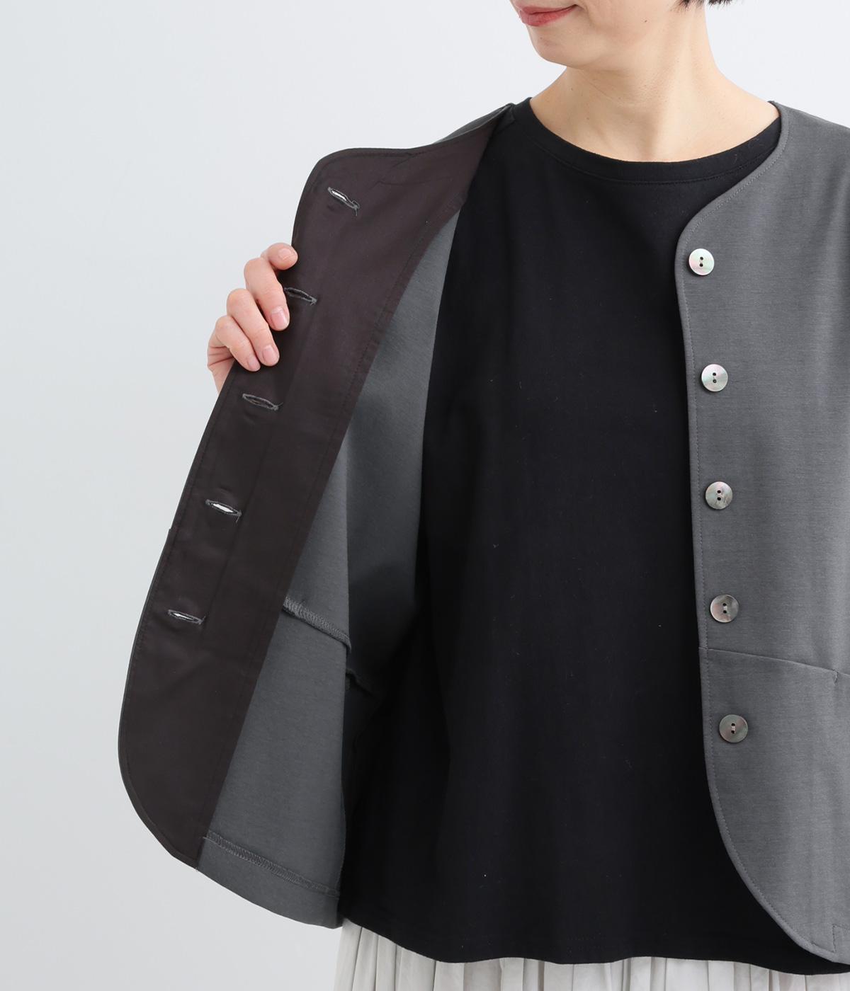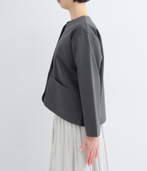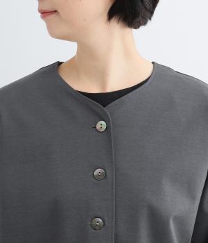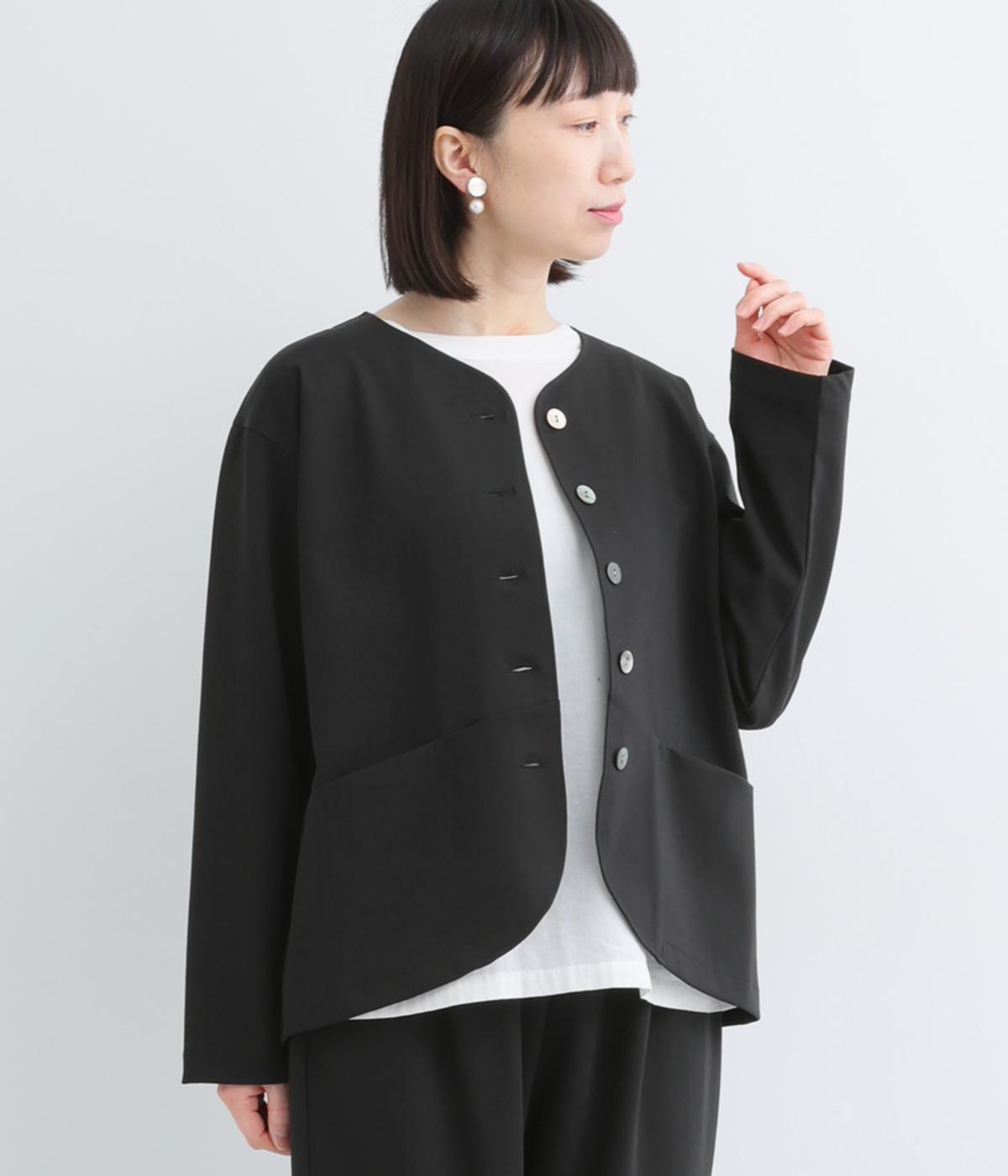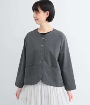オケージョンにもマッチするきちんと感のあるジャケットです。抜群のストレッチ性で動きやすく、長時間の着用でも疲れにくいのがうれしいポイント。首元はノーカラーですっきりさせ、ラウンドした裾やシームポケットでデザイン性をプラスしました。