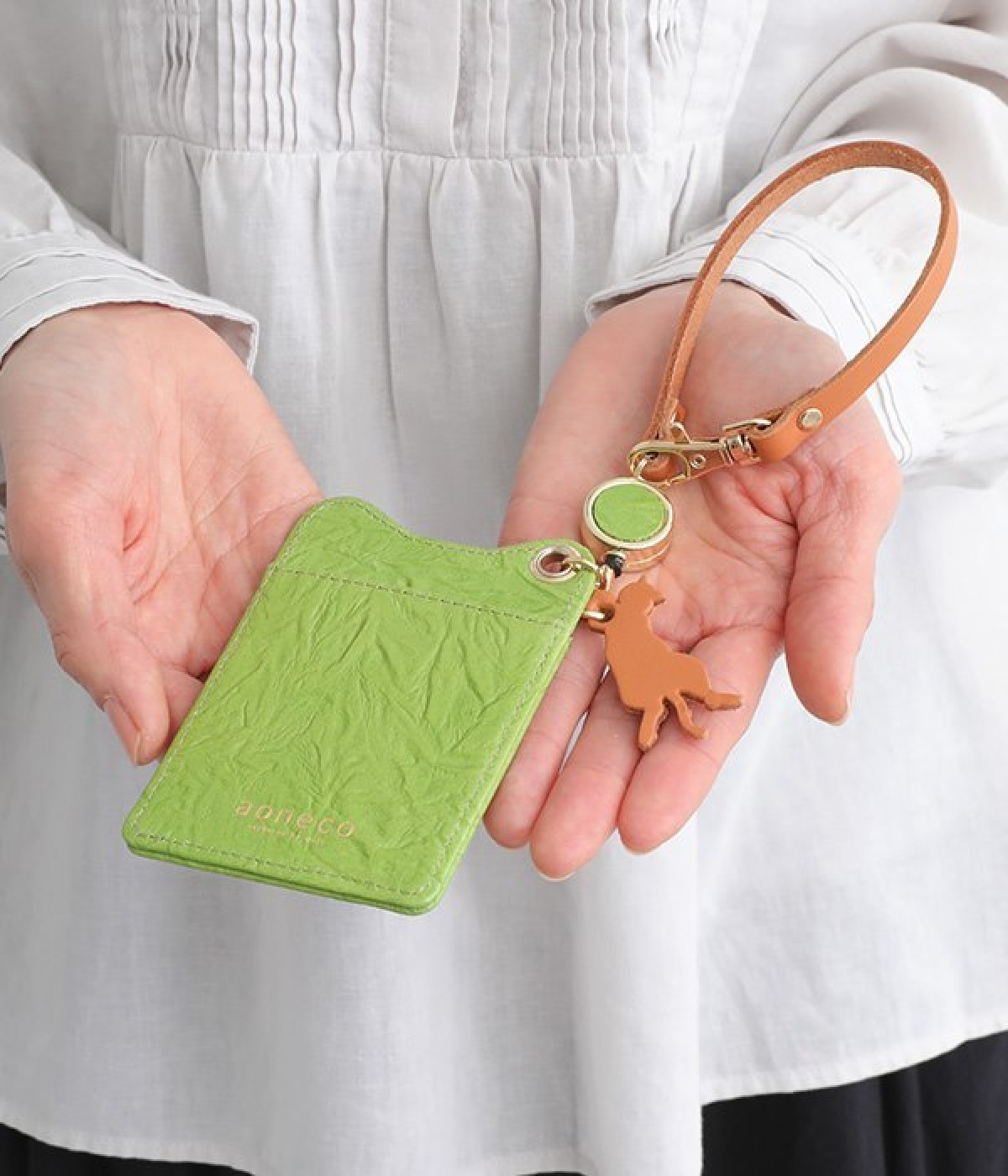片面にはICカード、片面には回数券など、使い分けできるパスケース。ループはバッグのハンドルなどにつければ鞄の中で迷子になる心配なく、伸びるリールを用いているのでバッグにつけたまま改札にタッチできます。