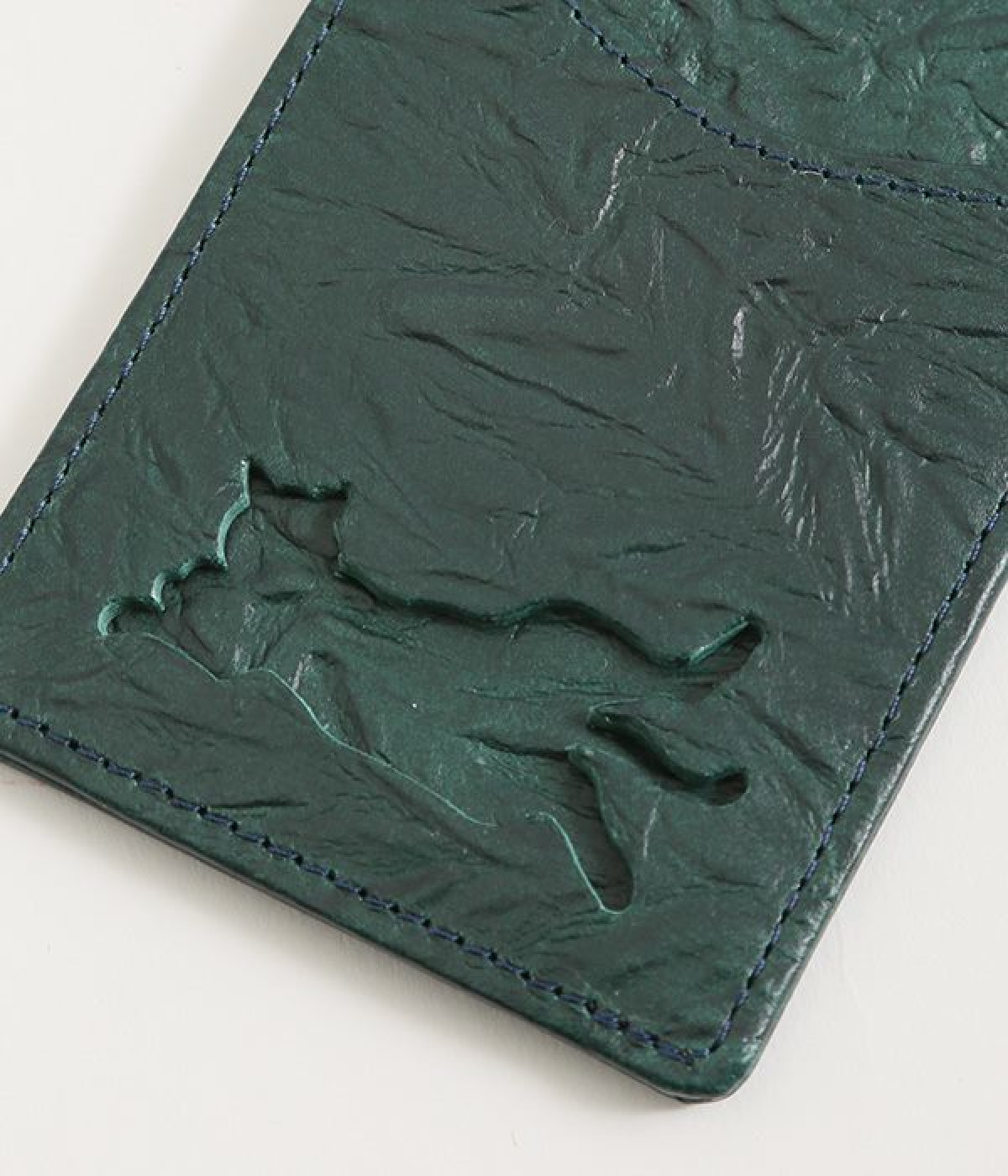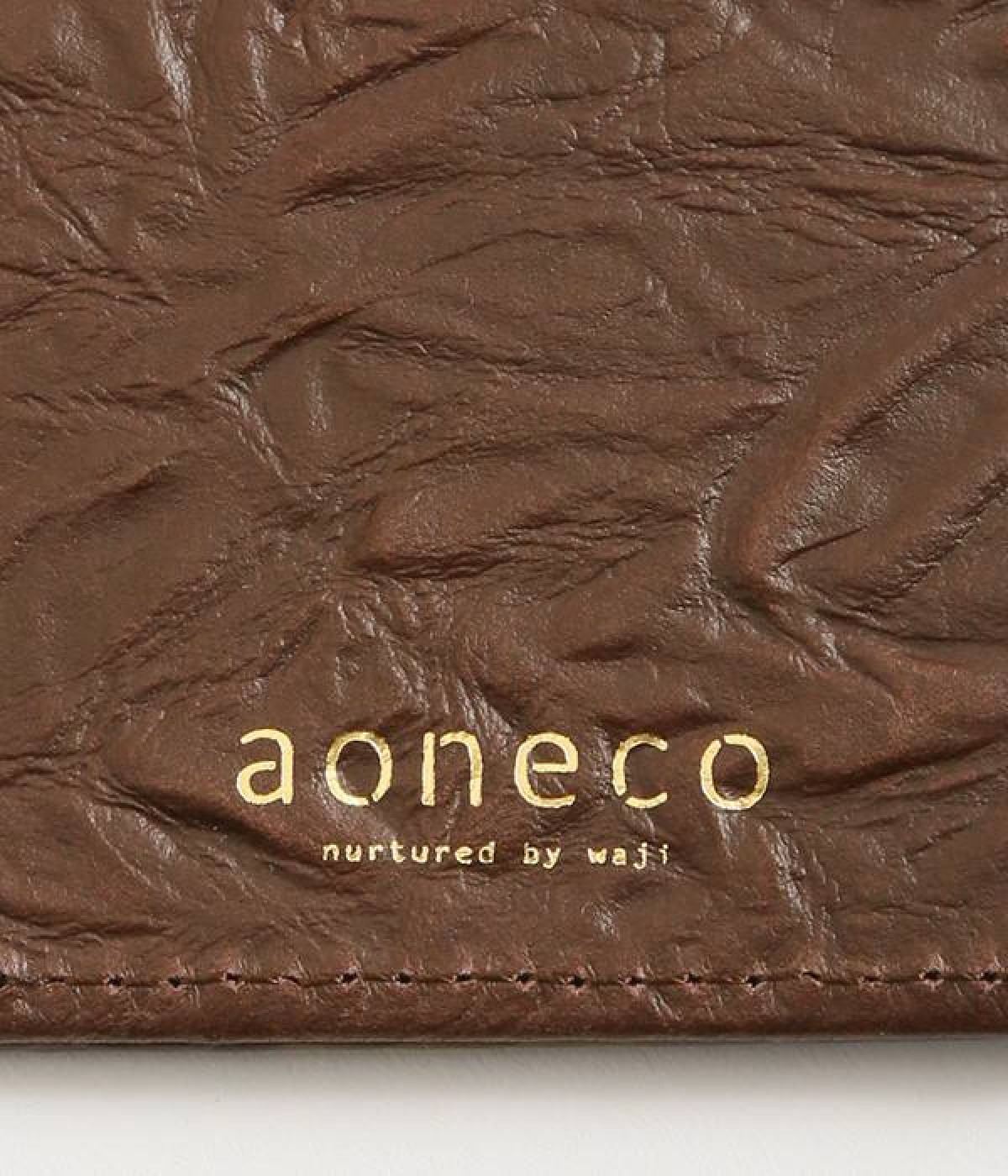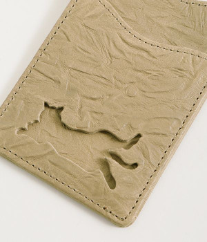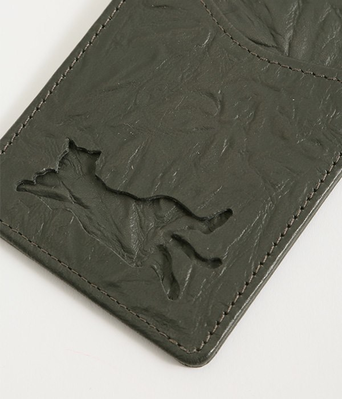 波打つシワのような表面感が特徴的なレザーを使用。ループにはヌメ革を配することで、レザーのこなれ感とピュアな抜け感を表現。