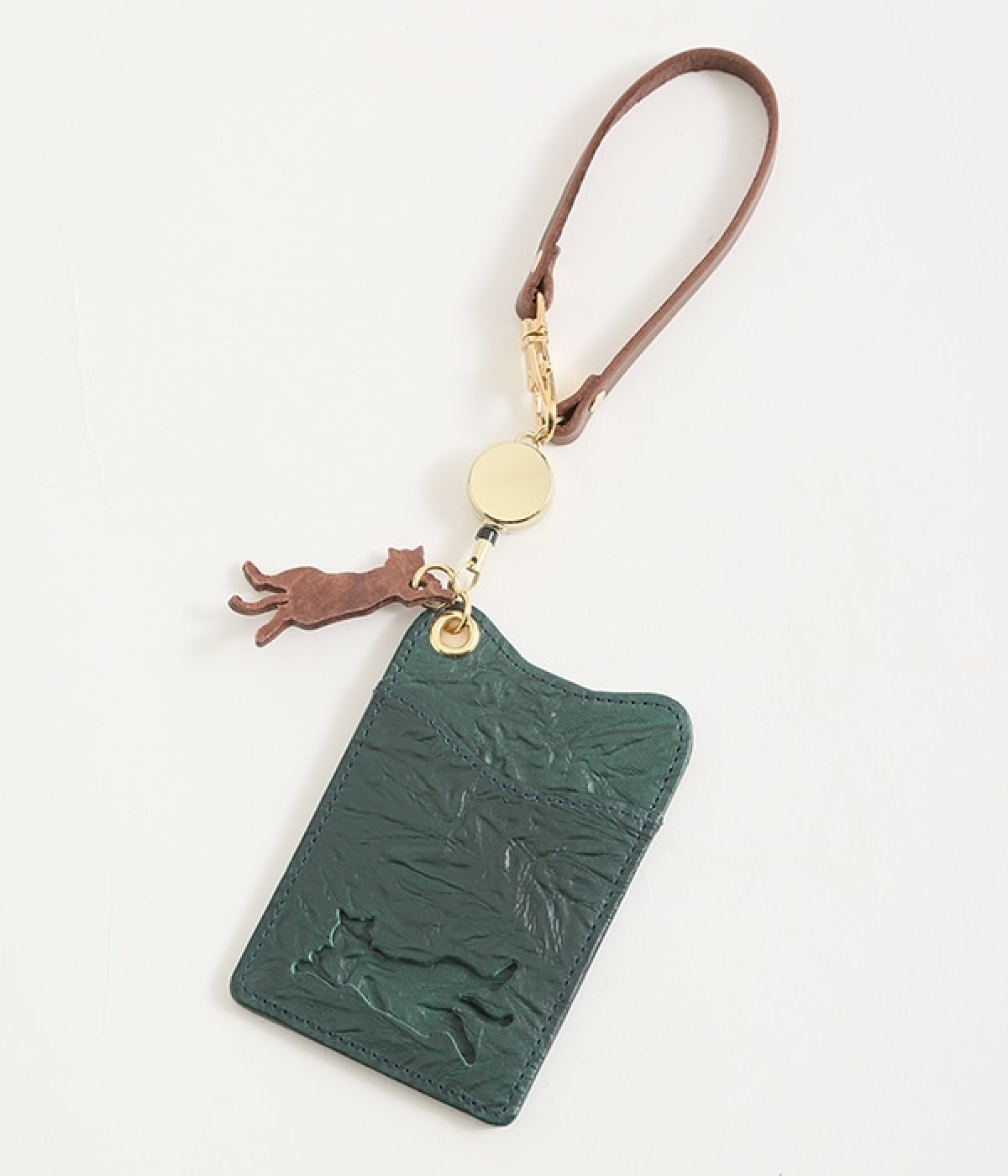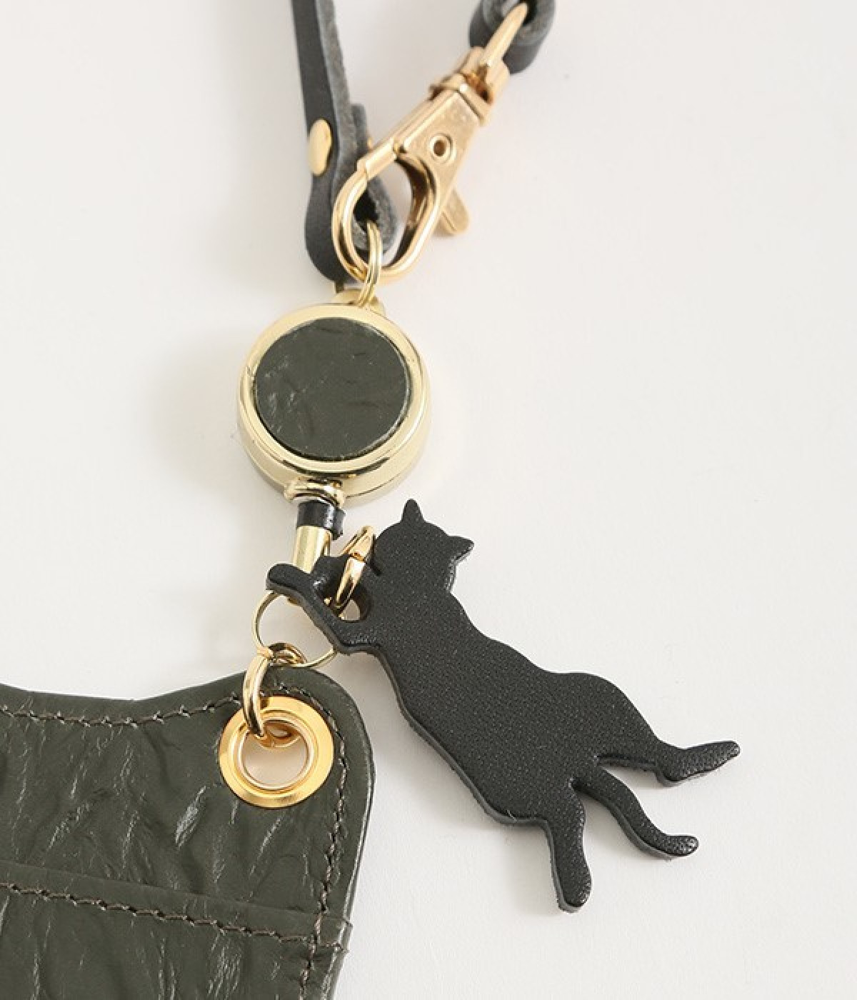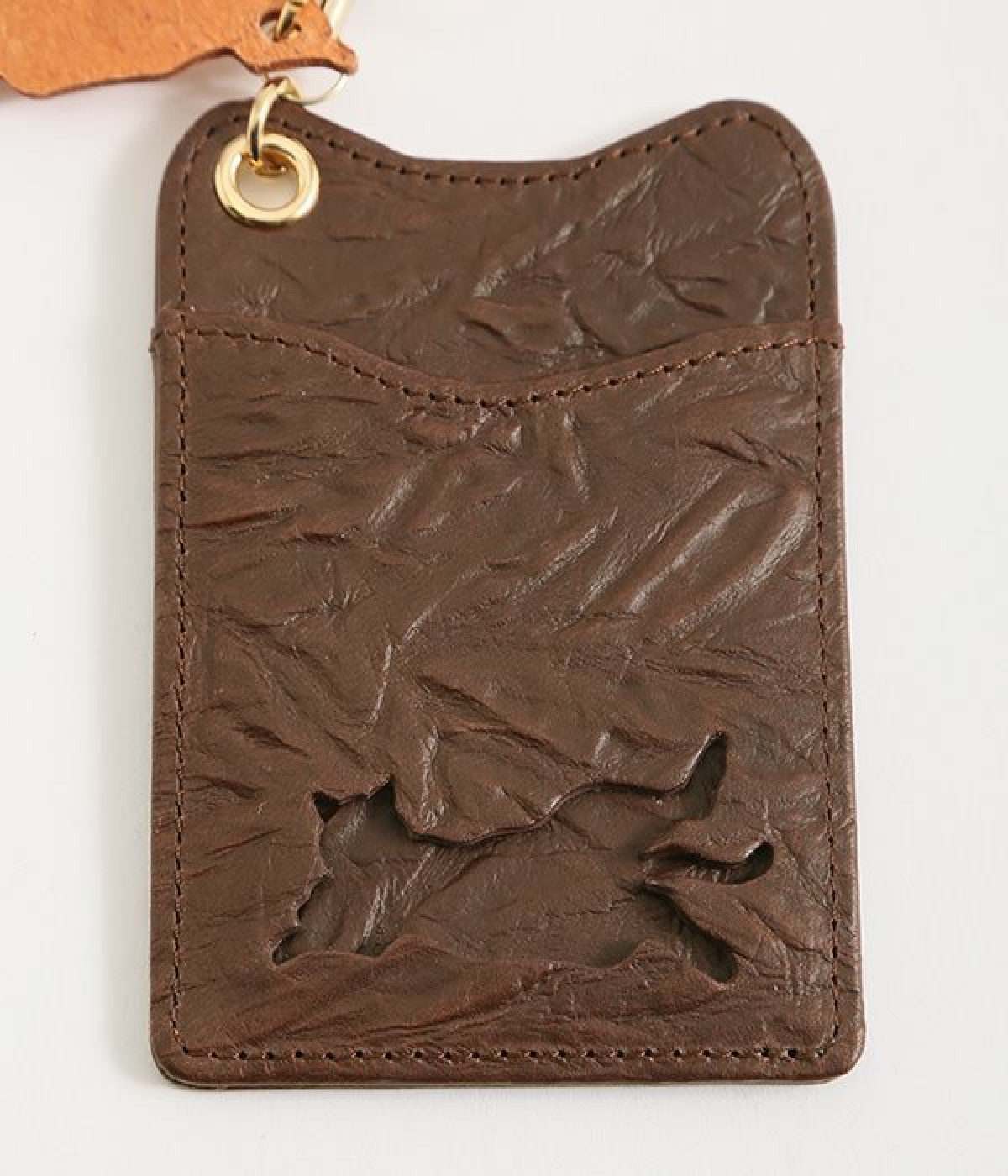 波打つシワのような表面感が特徴的なレザーを使用。ループにはヌメ革を配することで、レザーのこなれ感とピュアな抜け感を表現。