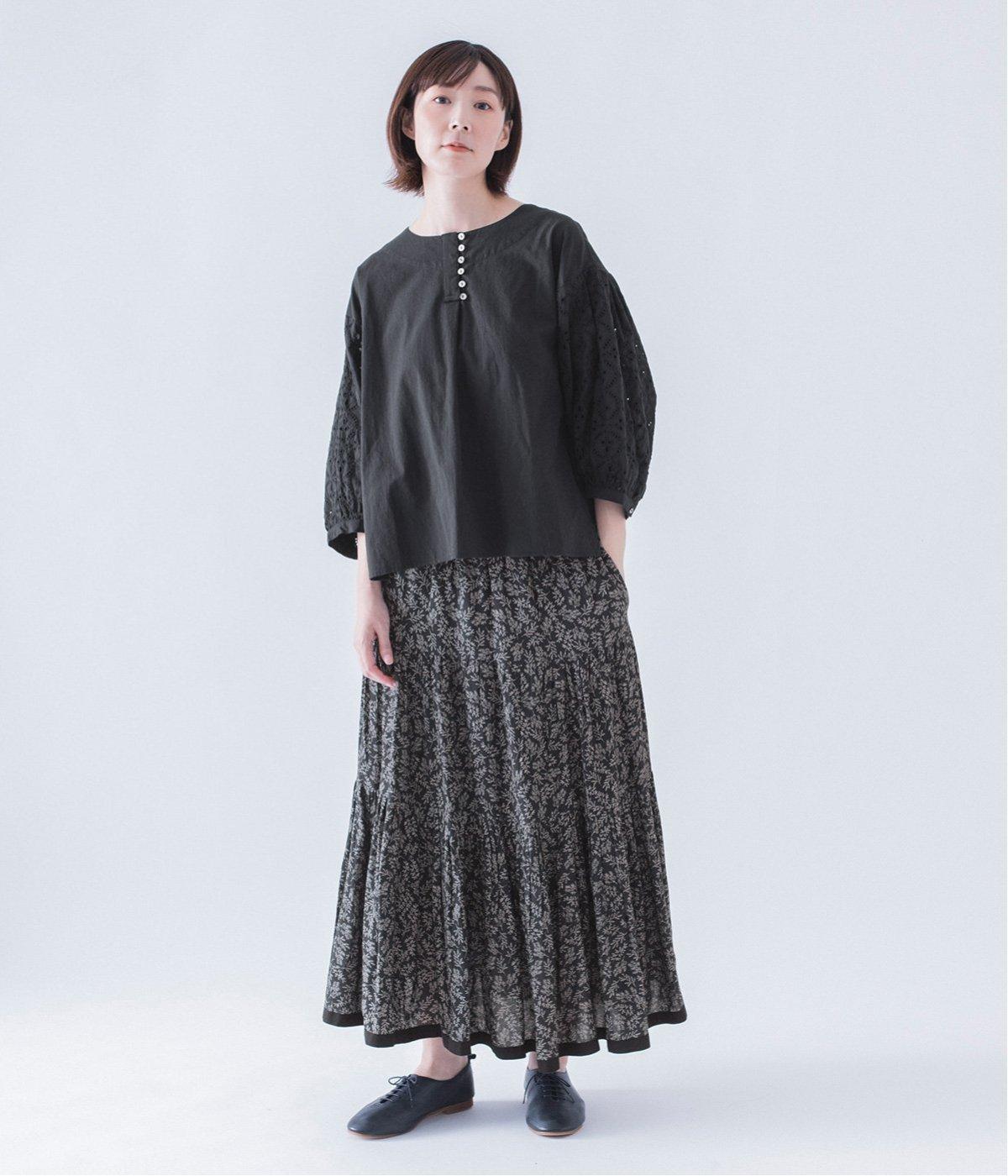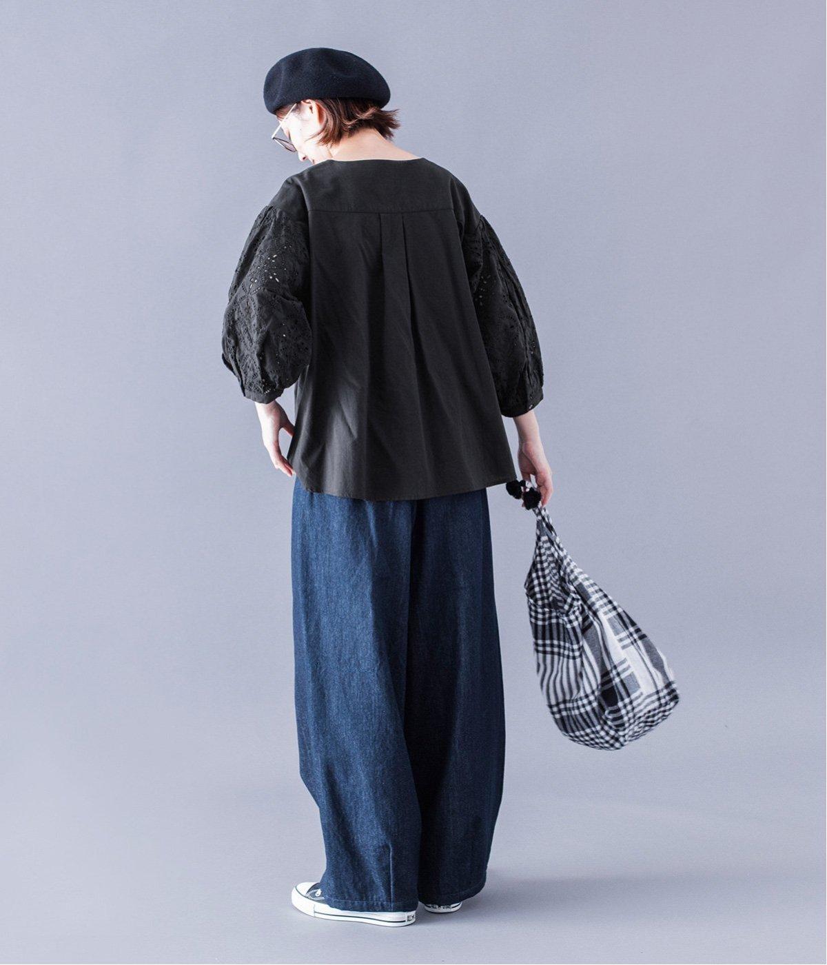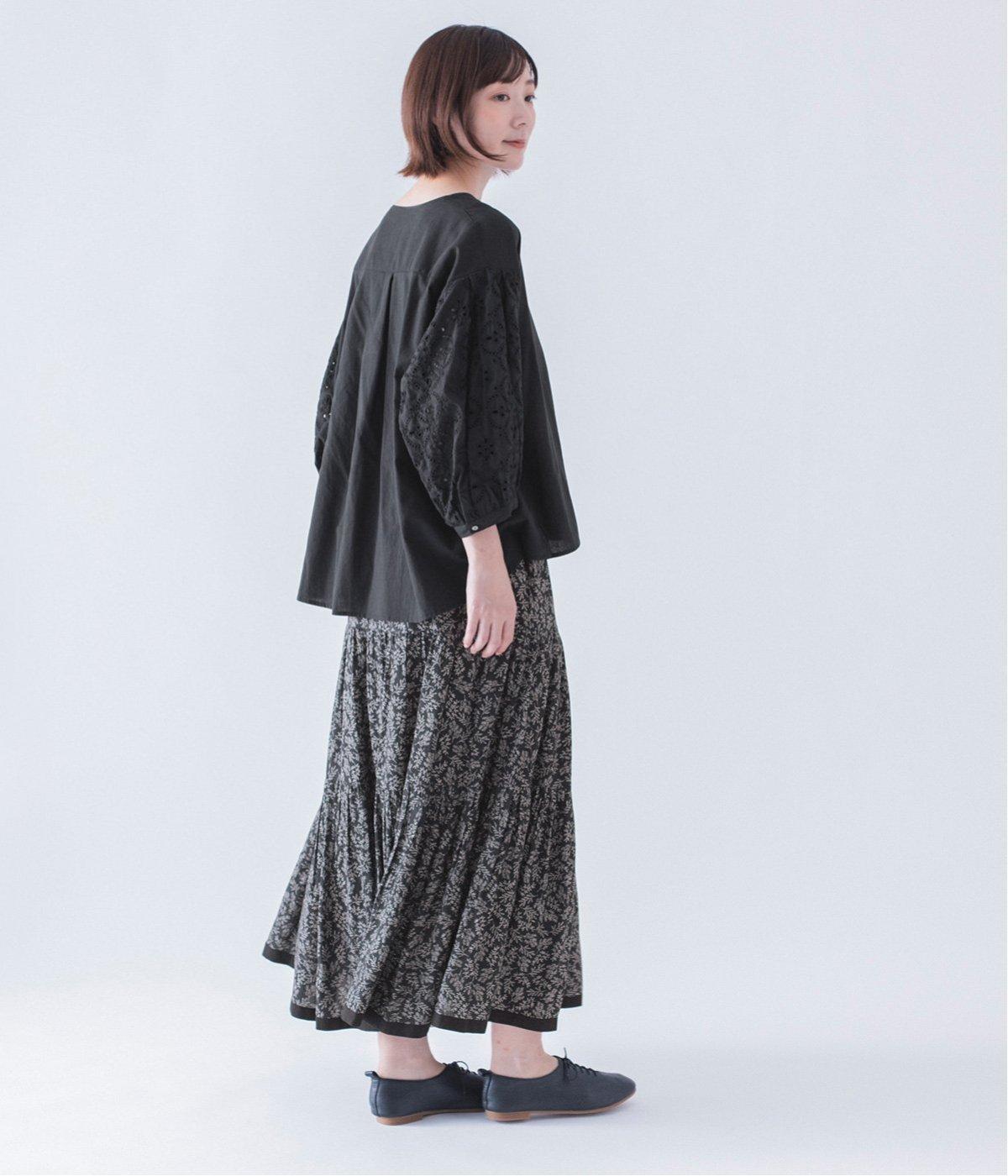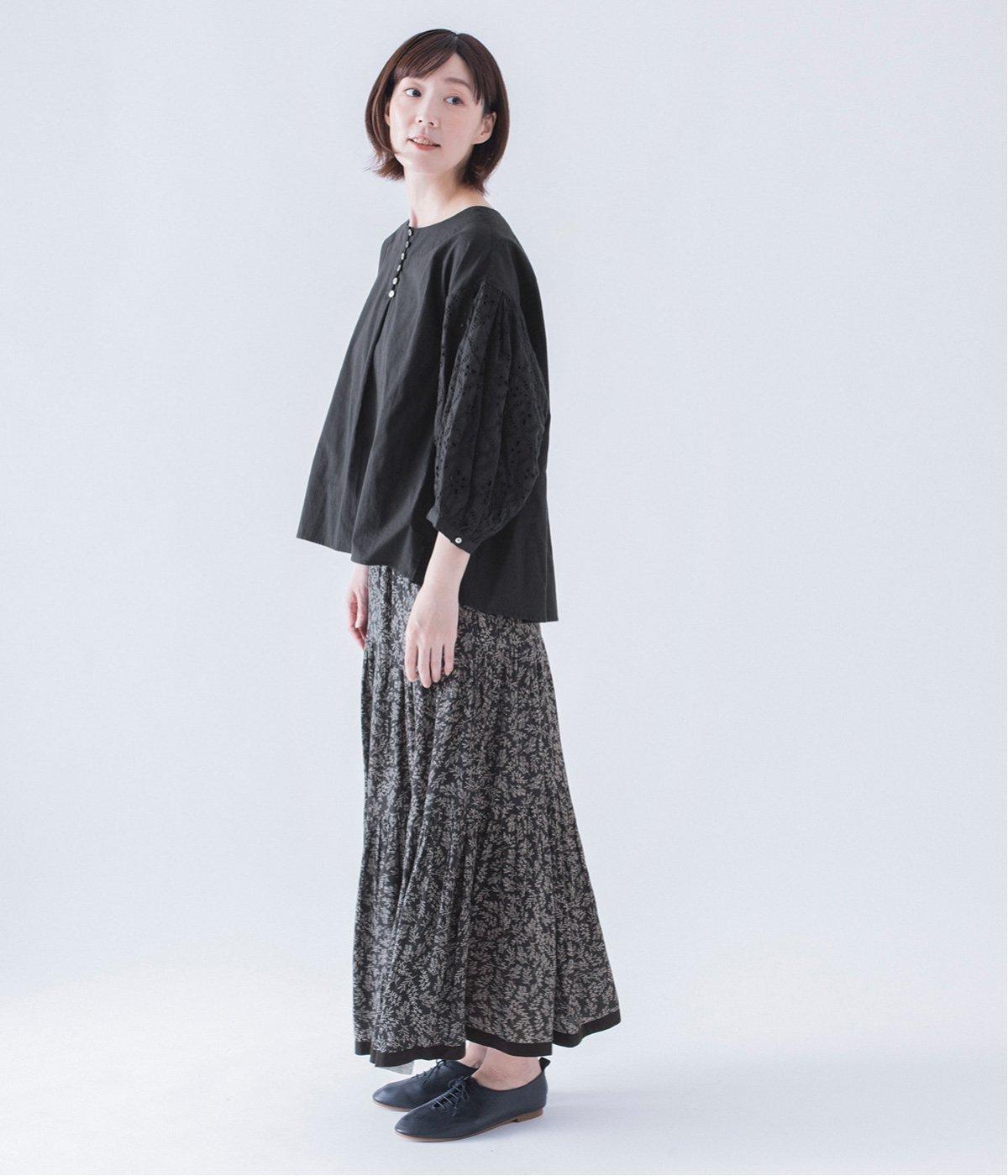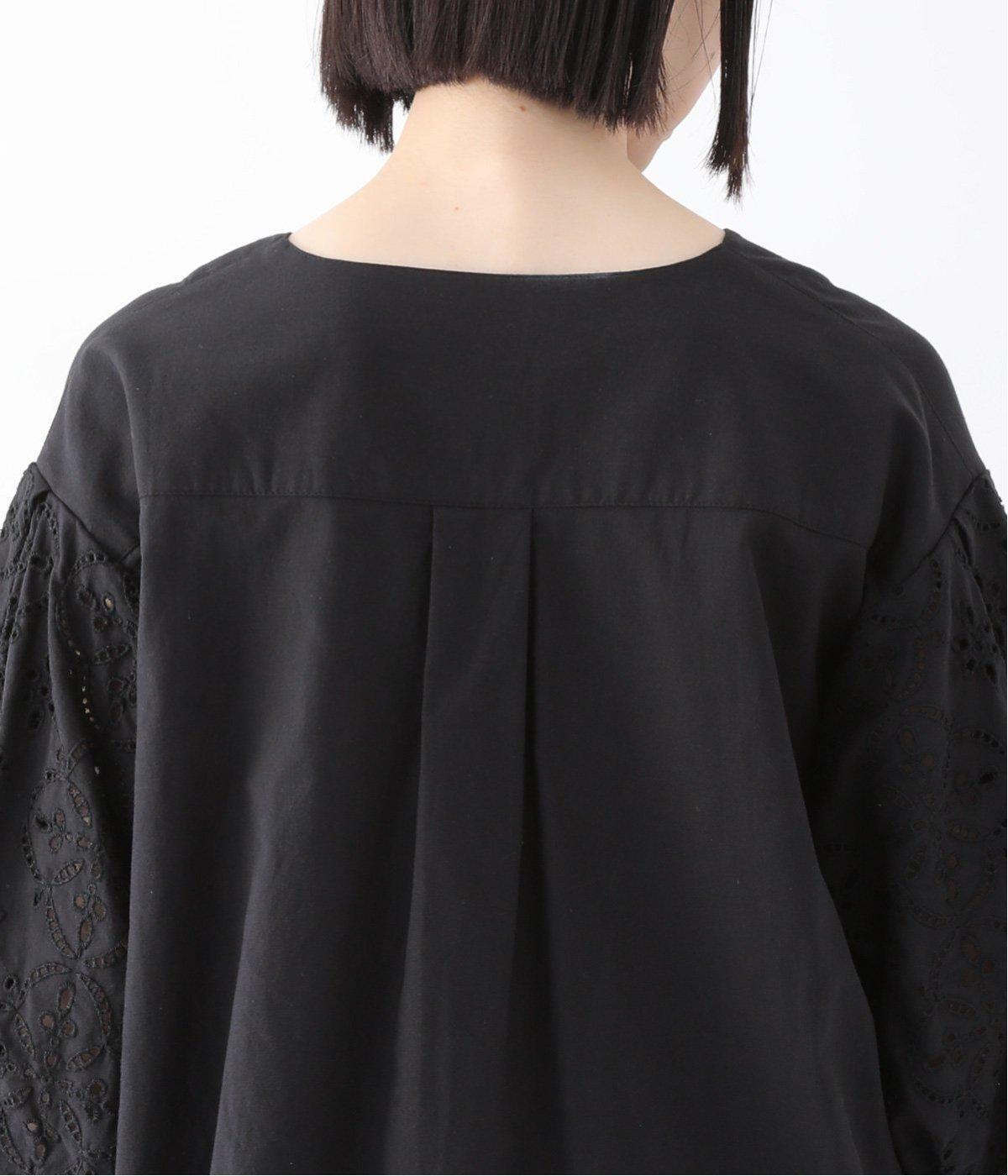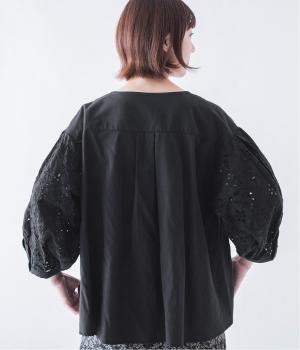 袖口と袖山にタックを入れたパフスリーブに、大人の女性に似合う大きめの花モチーフの刺繍をあしらいました。