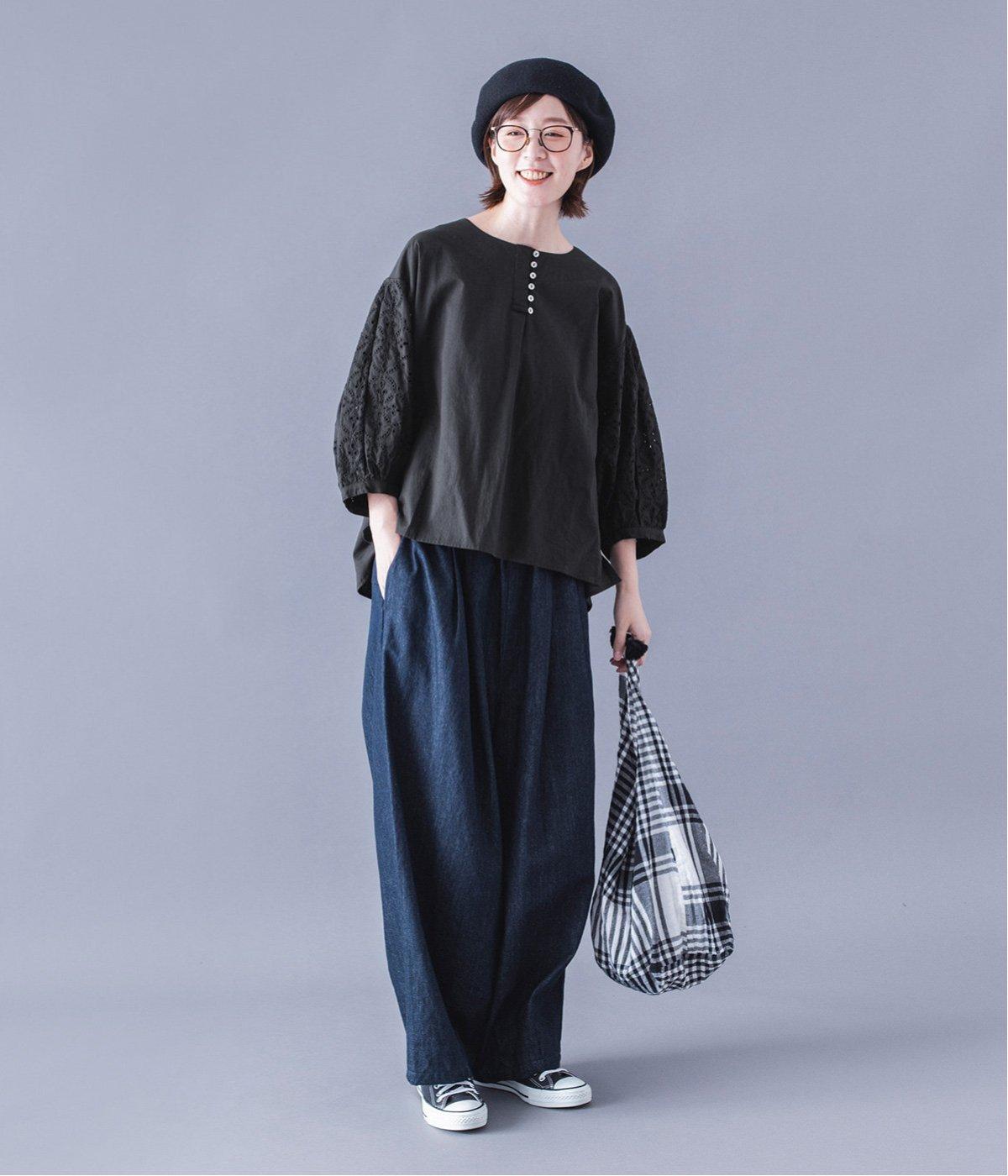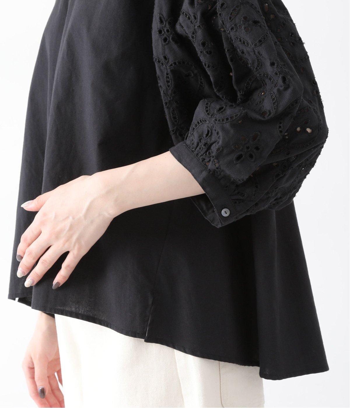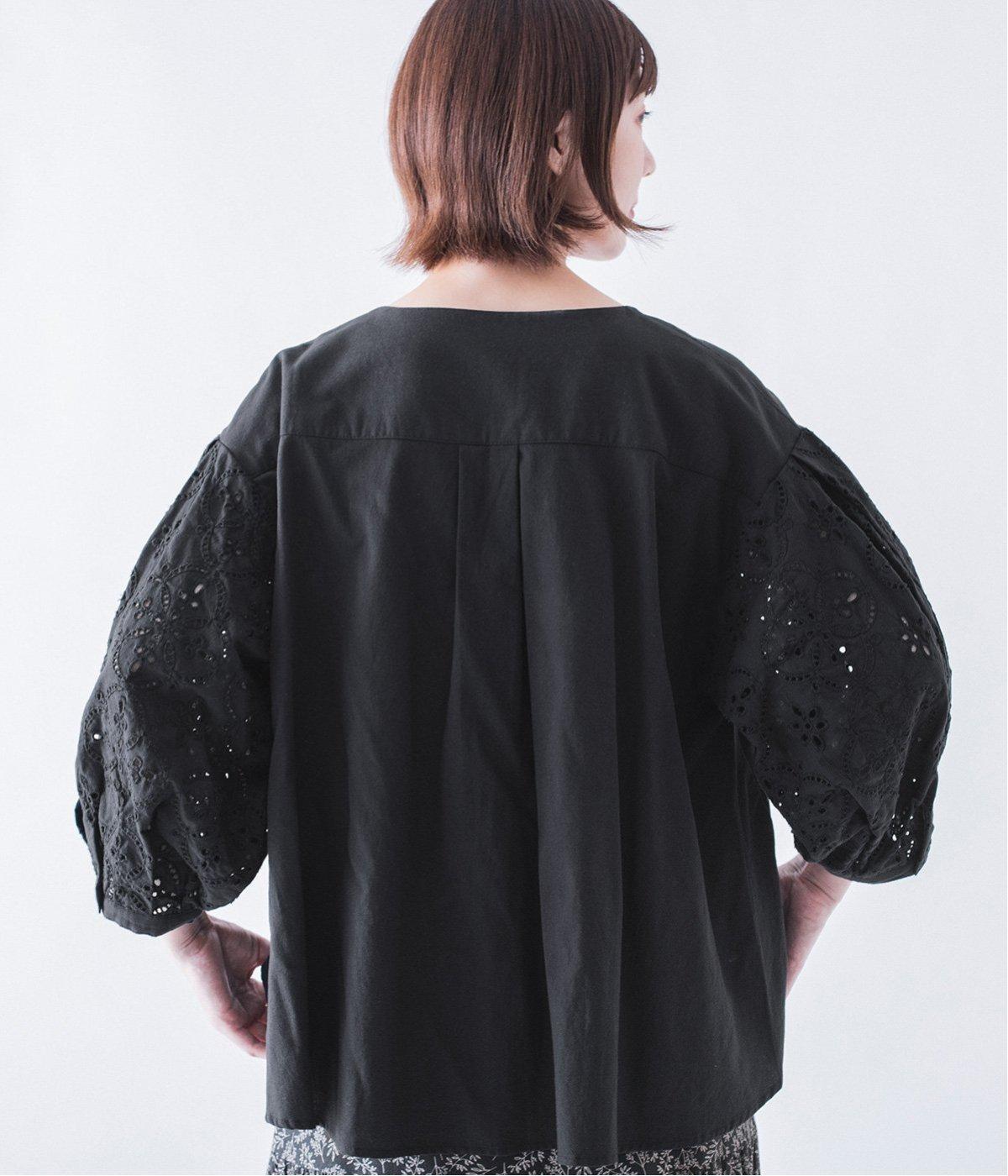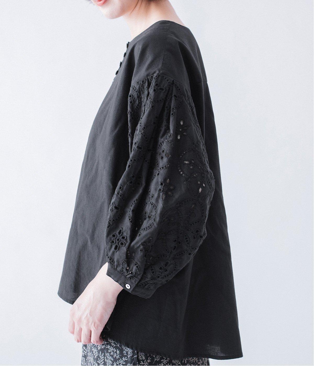 身頃と同じコットンを使い、袖のみ刺繍工房でつくってもらったこだわりの刺繍。糸がぎゅっと蜜で、細かくきれいなのが特徴です。