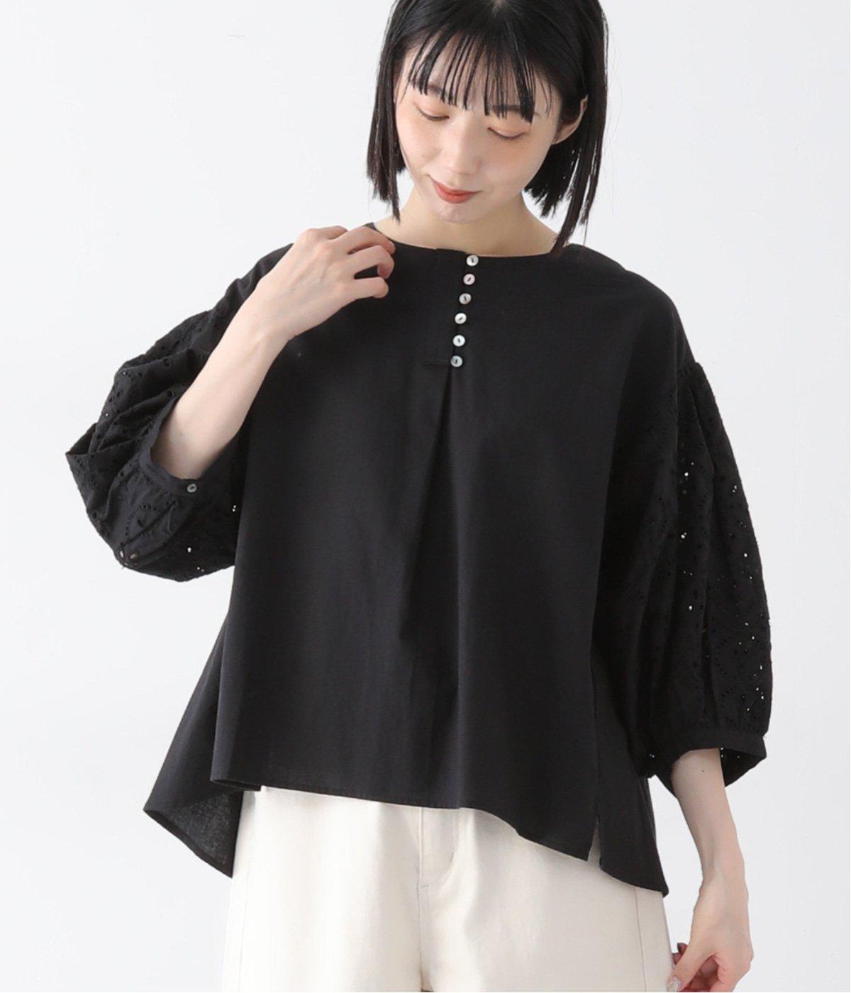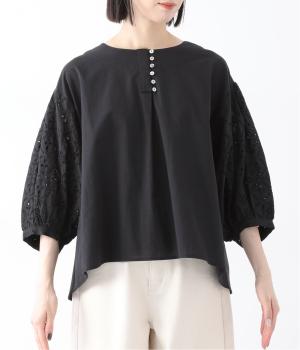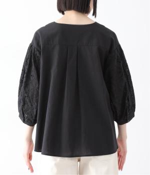顔まわりが華やぐ。袖レースのブラウス