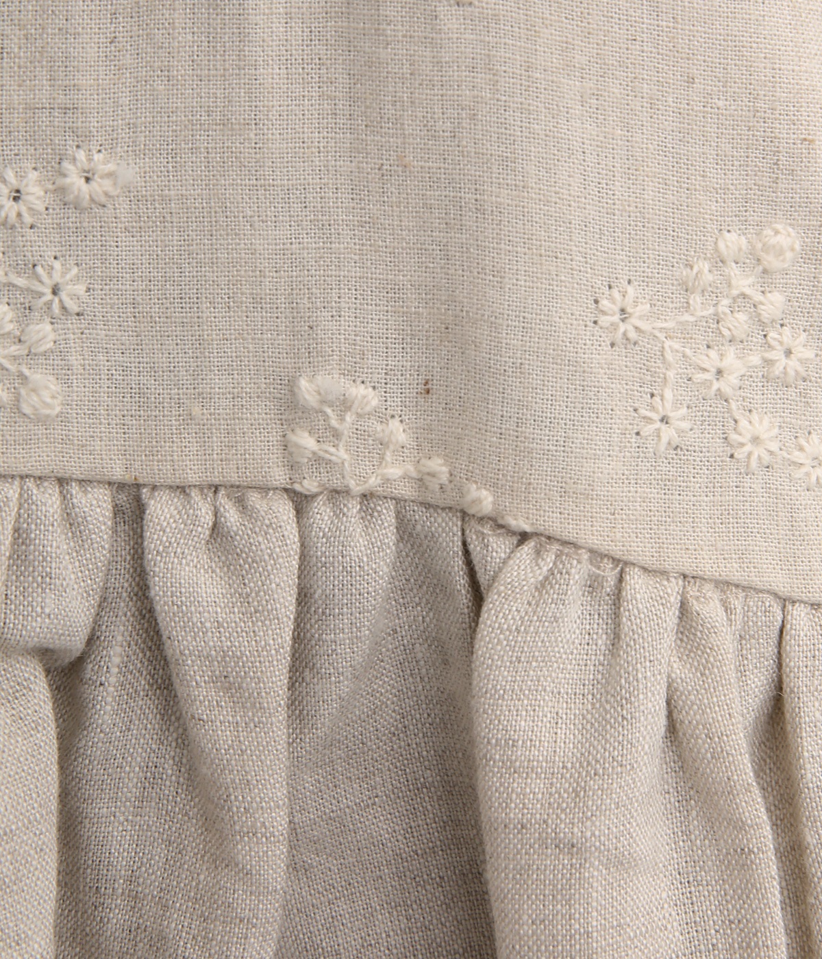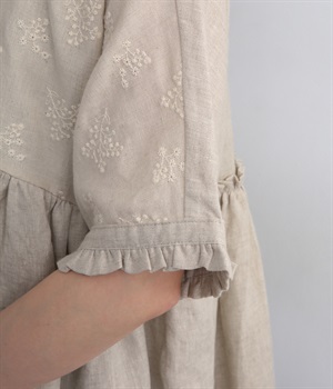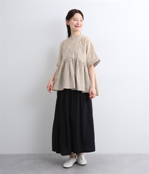 やや粗めに織り上げた素朴な風合いの刺繍生地と、ハリと光沢が特徴の生地、異なる表情を持つ2種類のリネンを組み合わせました。