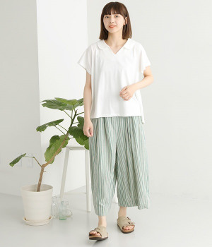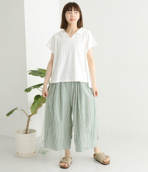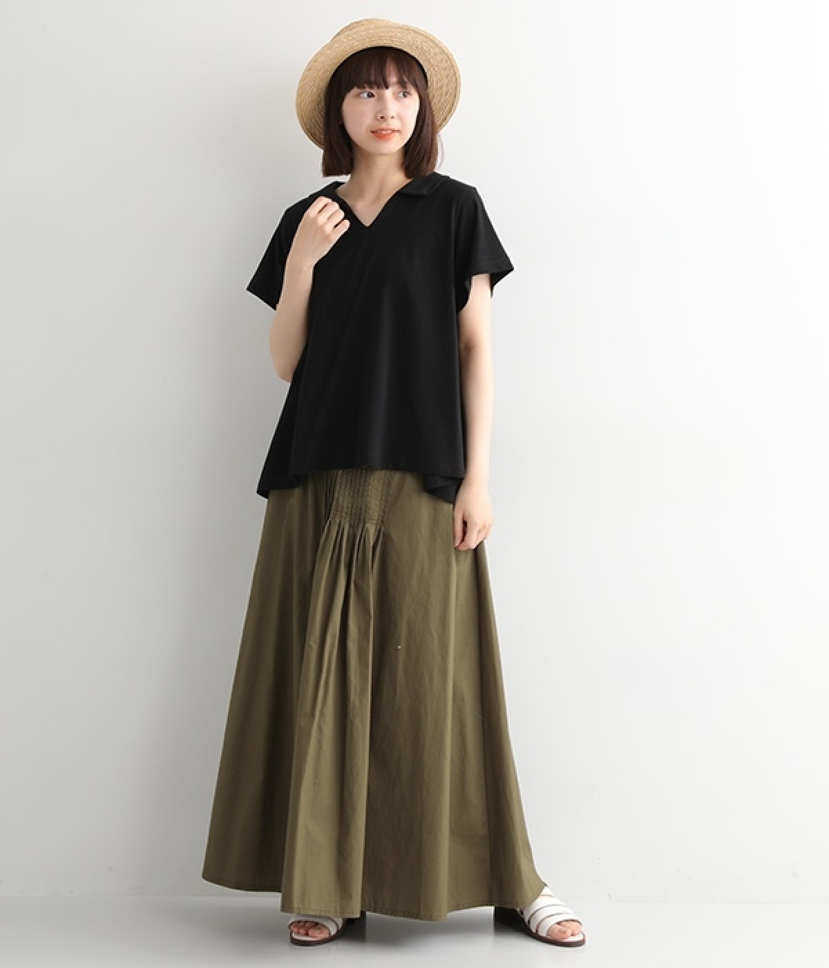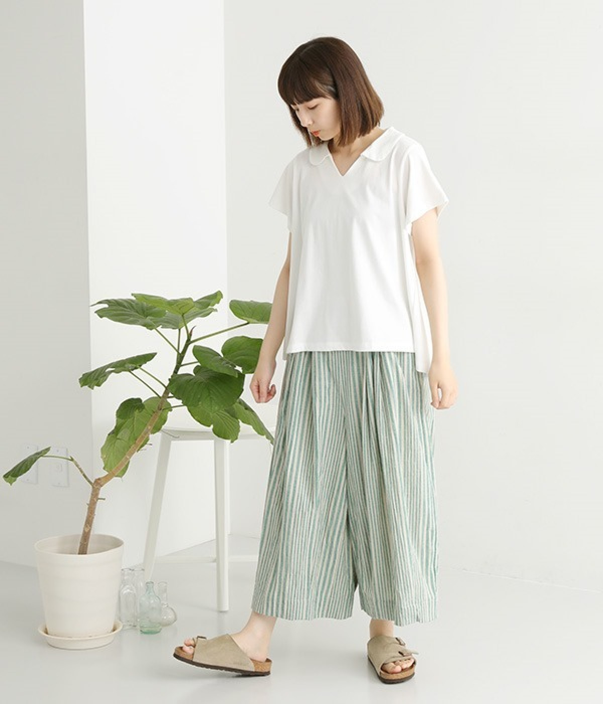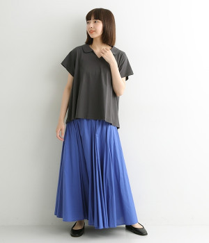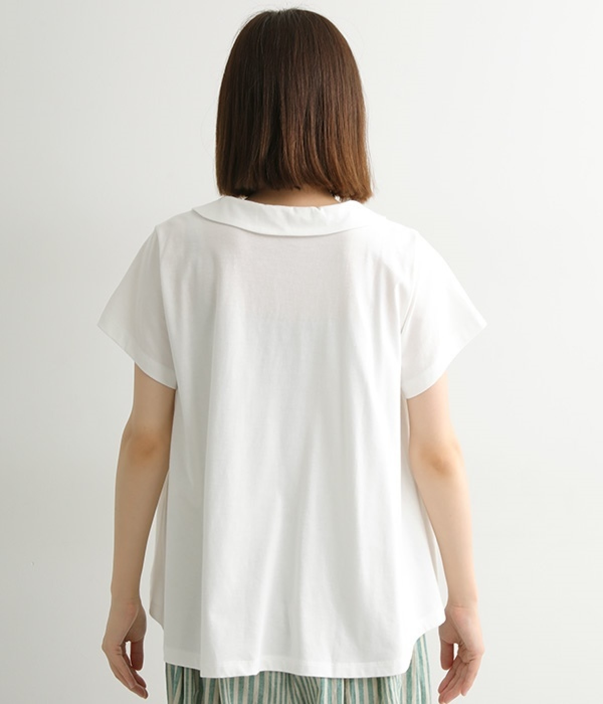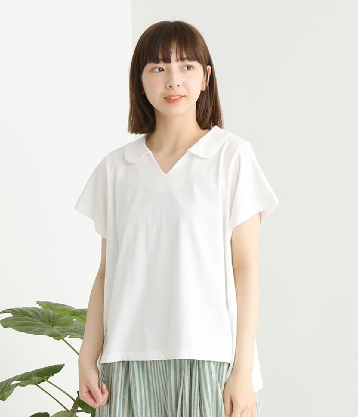 やわらかくなめらかなタッチの天竺コットンを使用したプルオーバーです。丸襟のやさしい雰囲気とふわりと広がるAラインが、大人のさりげないかわいらしさを演出します。ほどよい開きのネックラインはインナーを少しのぞかせても◎。なだらかな裾ラインは前後差が付いており、ギャザーの入ったスカートやパンツとゆるっと合わせても素敵です。シンプルで品のいいコンパクトなシルエットで、カジュアルにもきれいめにも対応できます。