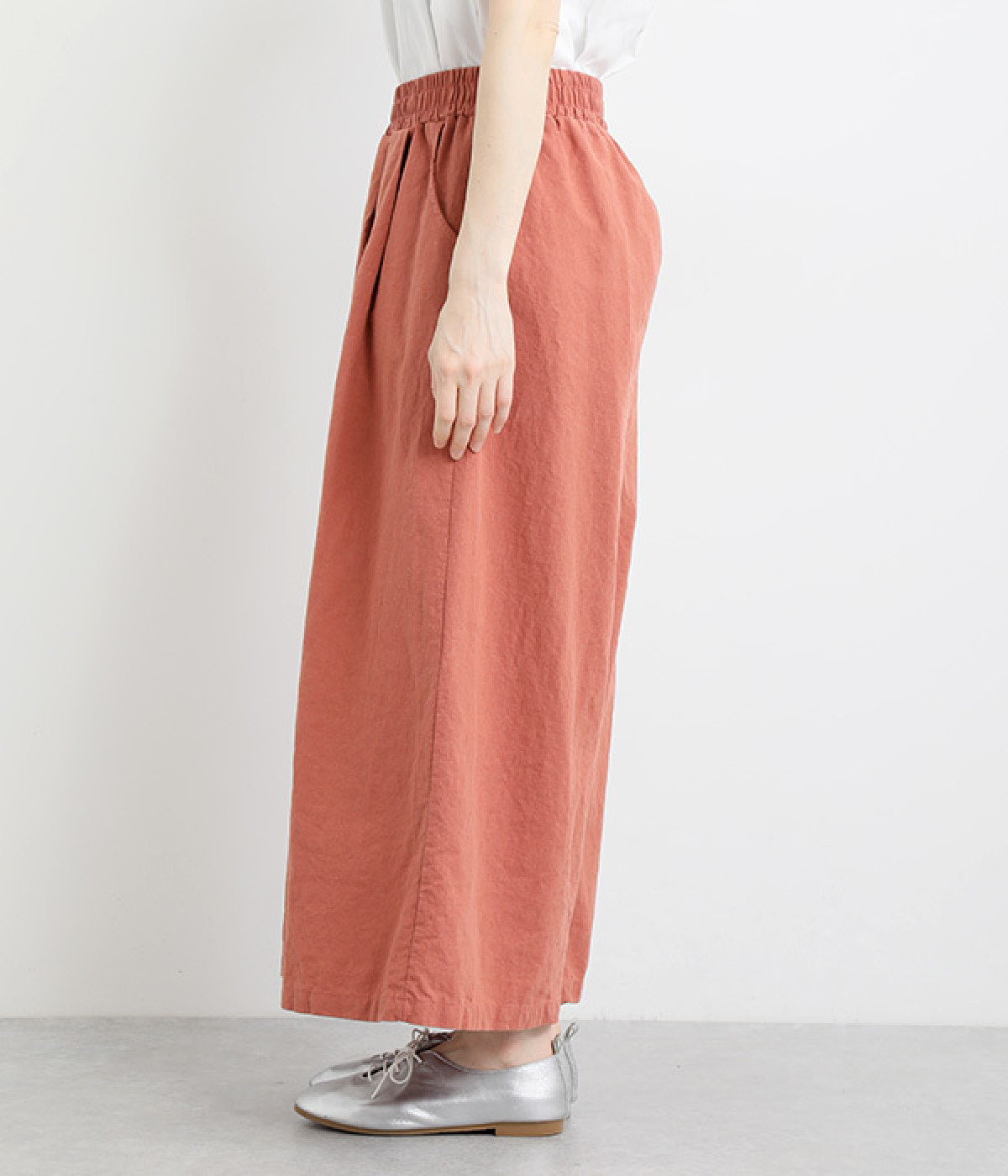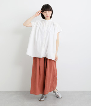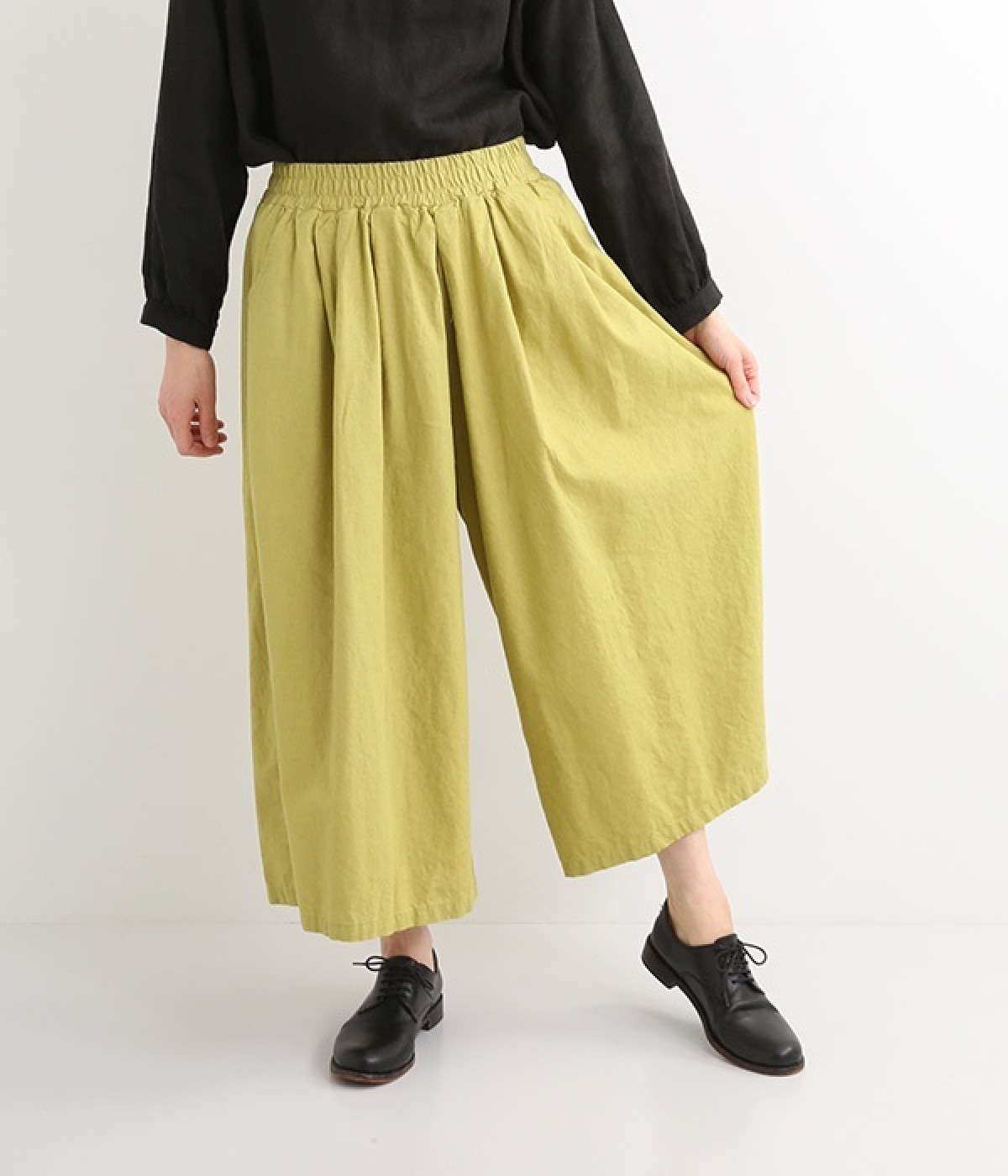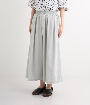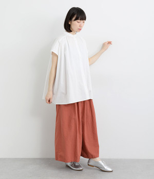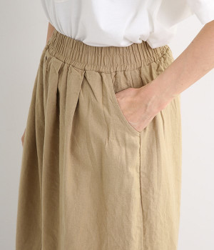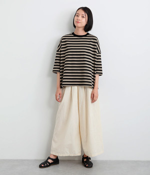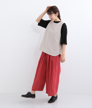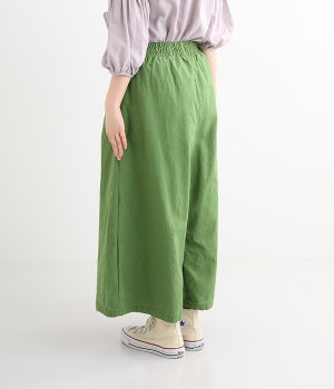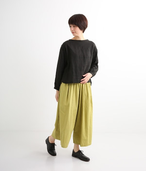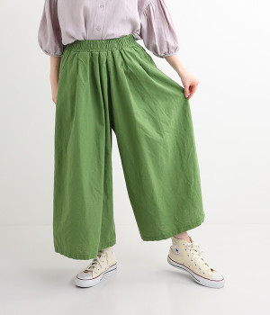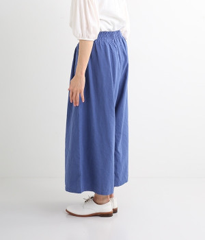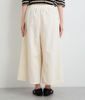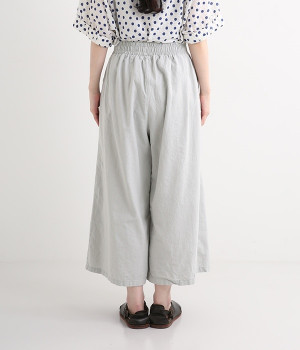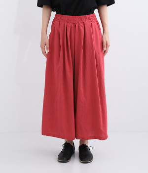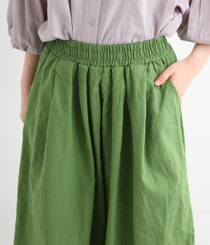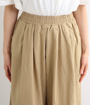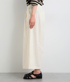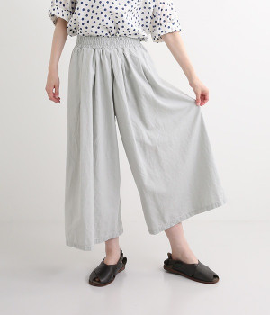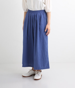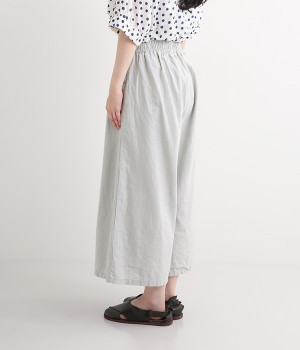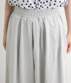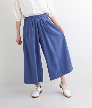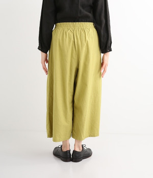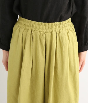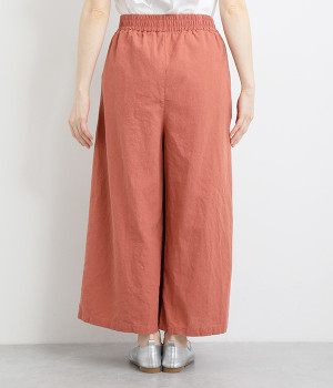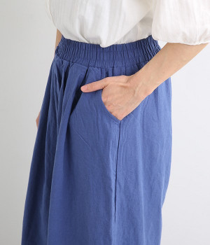 洗うほどにやわらかく肌になじんでいく、リネンコットンを使用したワイドパンツです。着こなしが軽快に仕上がるきれいな発色もポイント。ボリュームがあり、カジュアルにもナチュラルにも、さまざまなコーディネートが楽しめます。幅広の総ゴム仕様でしっかりとフィットしつつ、お腹まわりがすっきりとした印象になるこだわりのウエスト設計。ワンピースの裾からのぞかせたレイヤードスタイルもおすすめです。