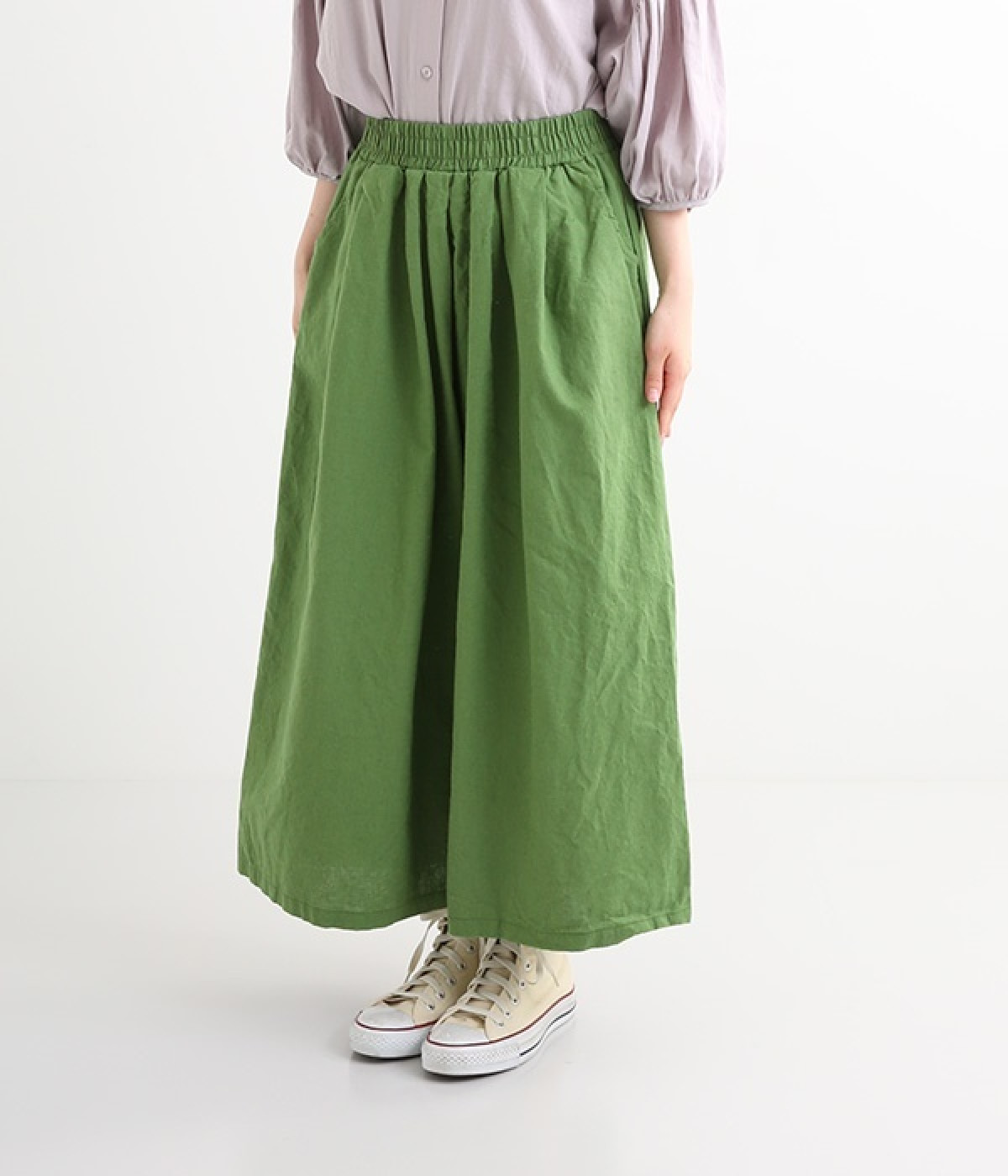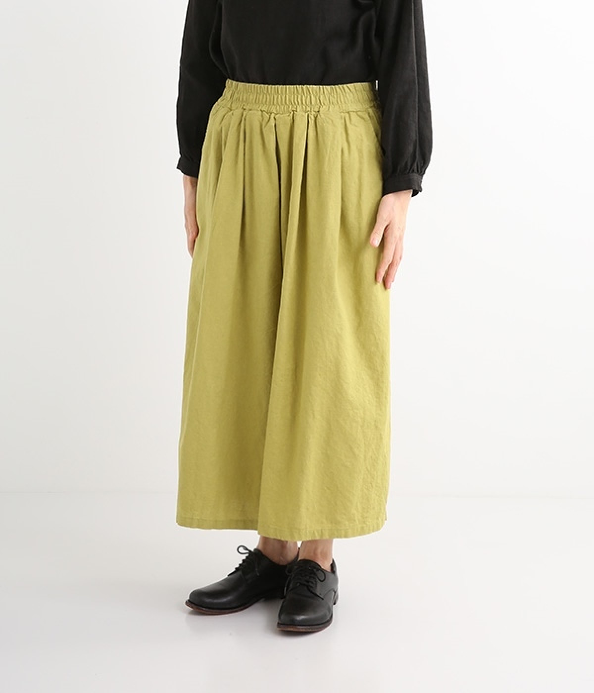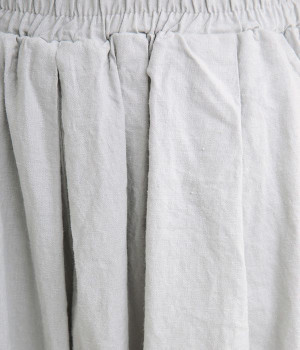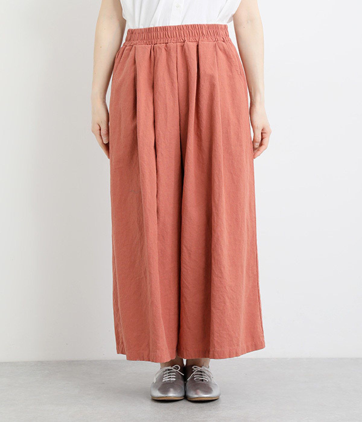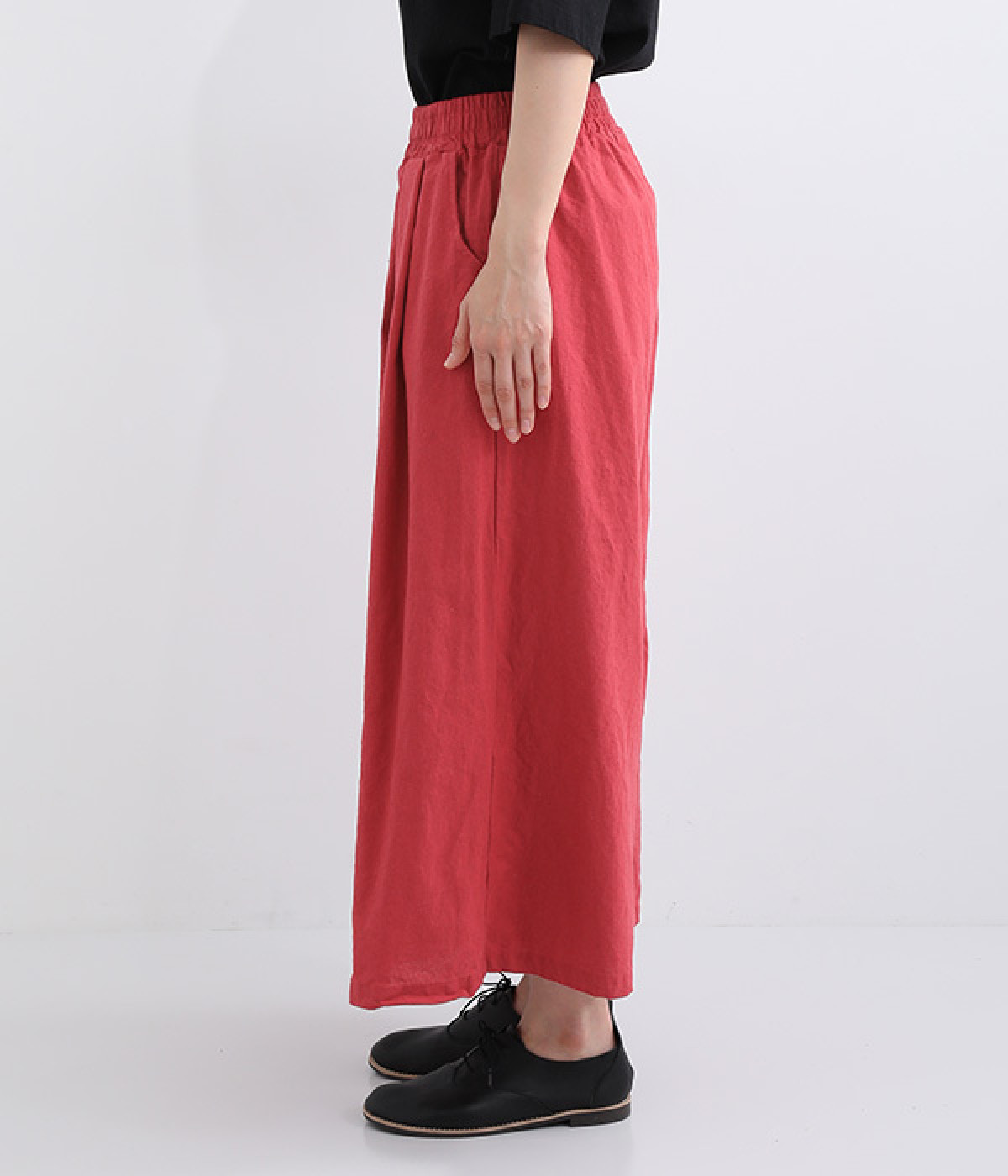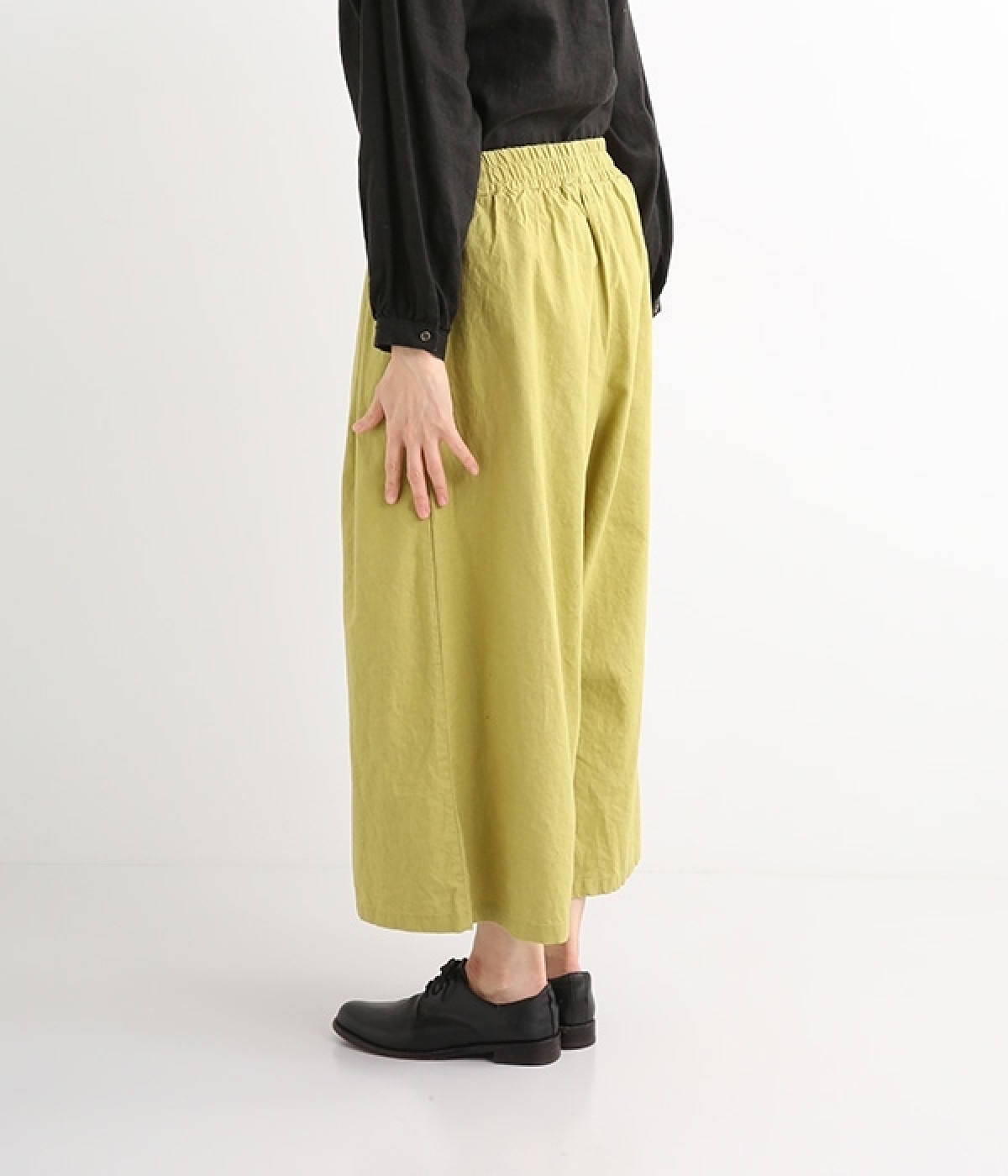 洗うほどにやわらかく肌になじんでいく、リネンコットンを使用したワイドパンツです。着こなしが軽快に仕上がるきれいな発色もポイント。ボリュームがあり、カジュアルにもナチュラルにも、さまざまなコーディネートが楽しめます。幅広の総ゴム仕様でしっかりとフィットしつつ、お腹まわりがすっきりとした印象になるこだわりのウエスト設計。ワンピースの裾からのぞかせたレイヤードスタイルもおすすめです。