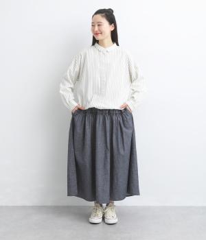 肌触りがよく独特の色ムラが表情豊かに魅せてくれるダンガリーを使用。ナチュラルな風合いをもったコットンリネンの軽やかな中厚手生地です。