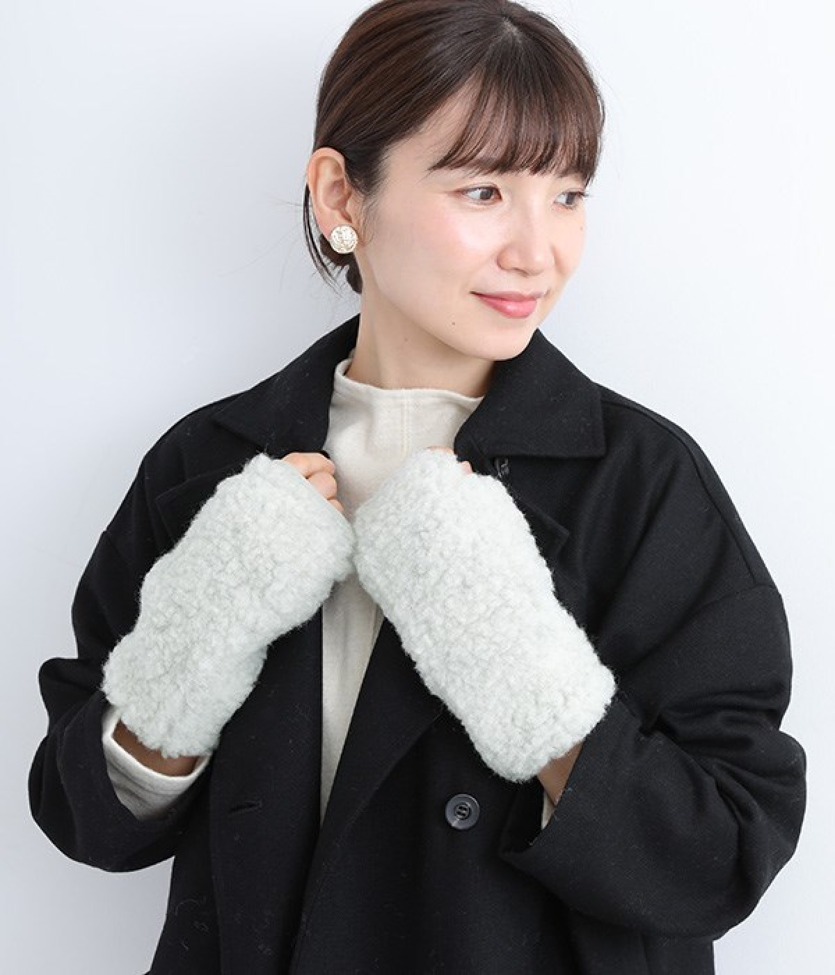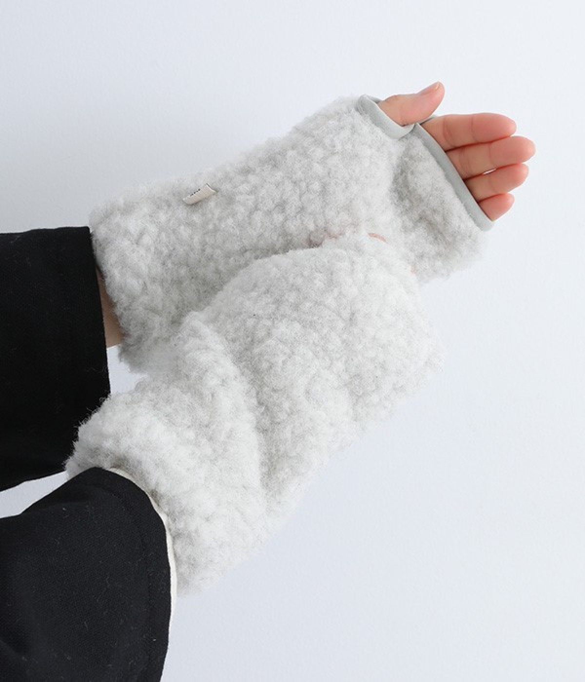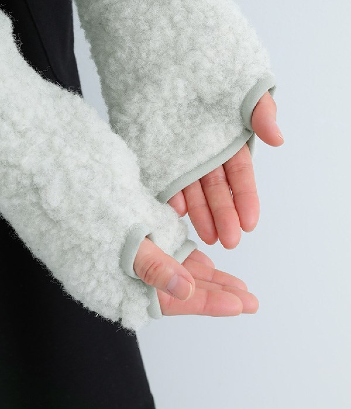 モコモコの素材であたたかなアームカバーです。オーストラリアやニュージーランドに生息するメリノ種といわれる羊の毛を使った、保温性に優れたメリノウールを使用しています。かわいらしい防寒対策にもコーディネートのワンポイントにも活躍。指先が出せるデザインなので、スマートフォンの操作やお買い物シーンでも取り外し不要なのが魅力です。
