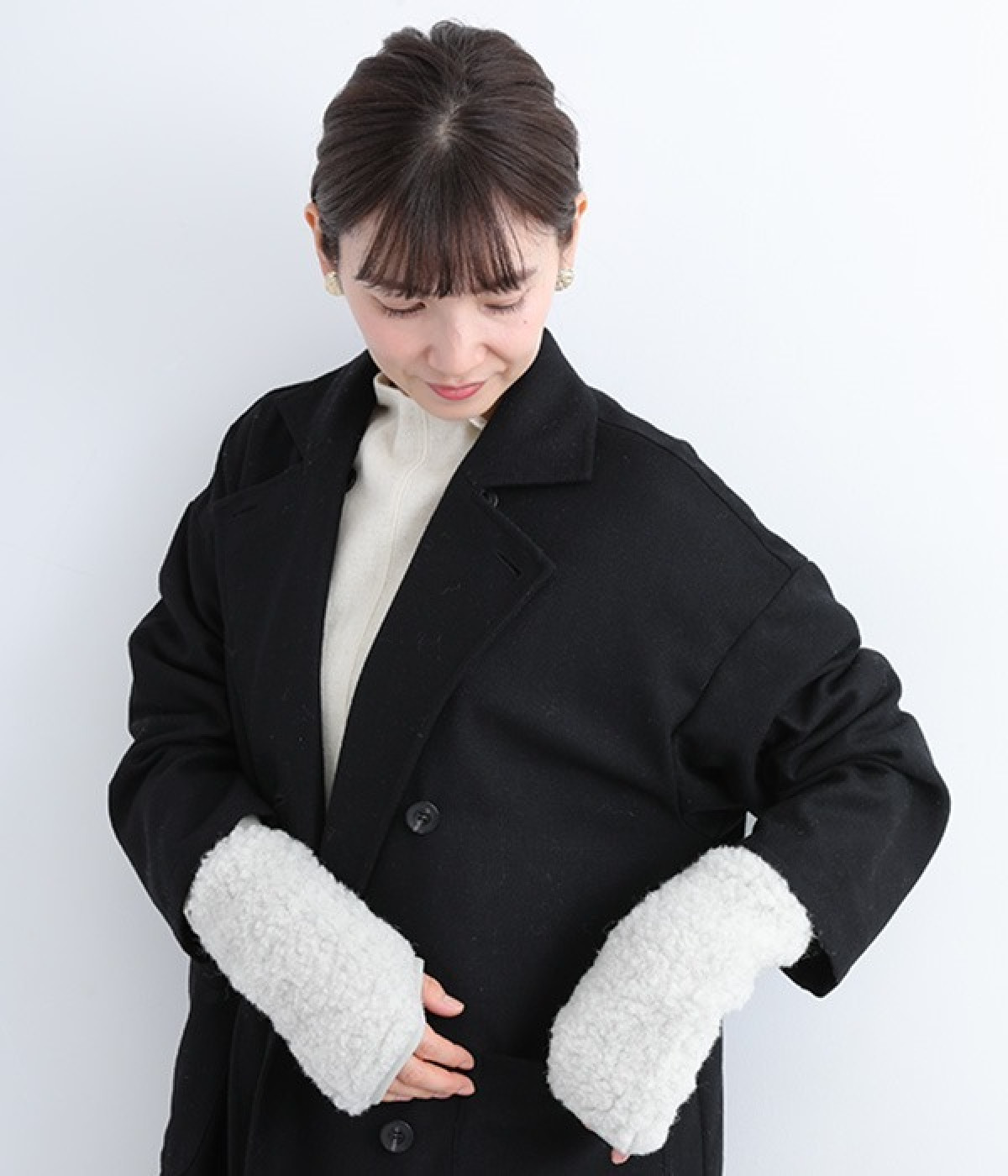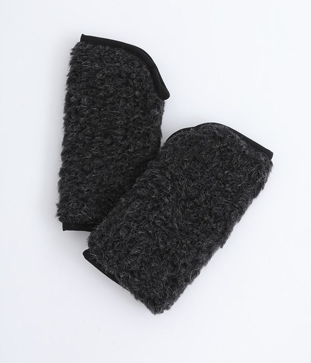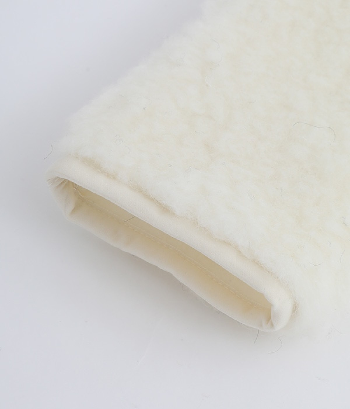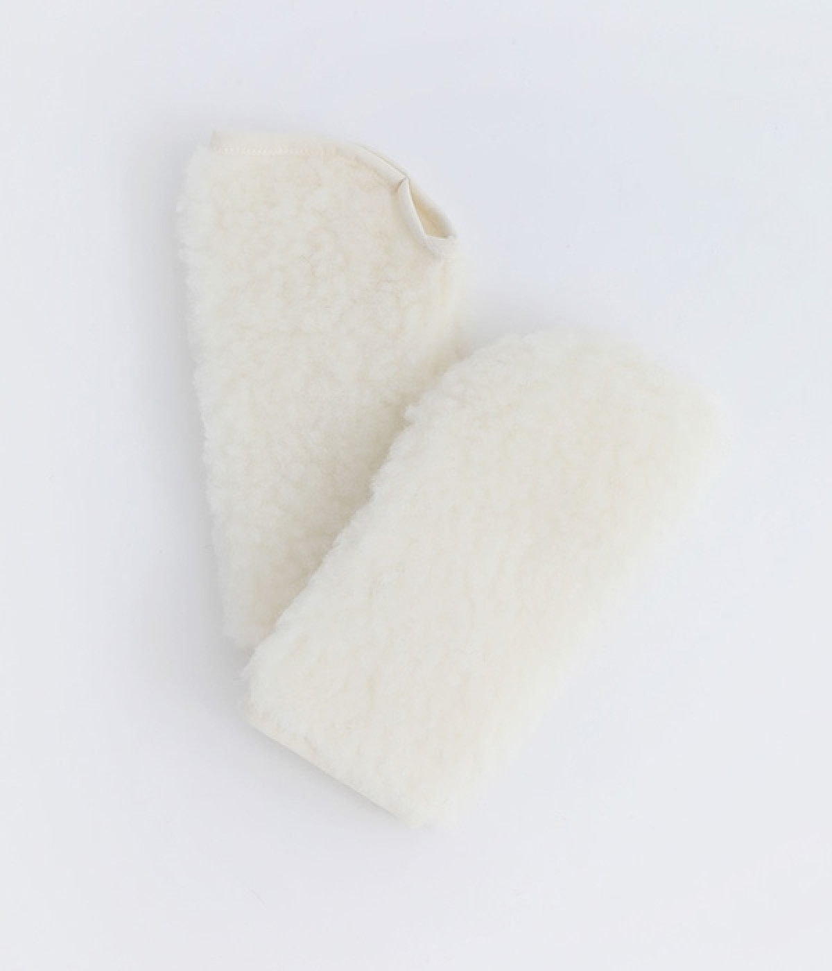 モコモコの素材であたたかなアームカバーです。オーストラリアやニュージーランドに生息するメリノ種といわれる羊の毛を使った、保温性に優れたメリノウールを使用しています。かわいらしい防寒対策にもコーディネートのワンポイントにも活躍。指先が出せるデザインなので、スマートフォンの操作やお買い物シーンでも取り外し不要なのが魅力です。