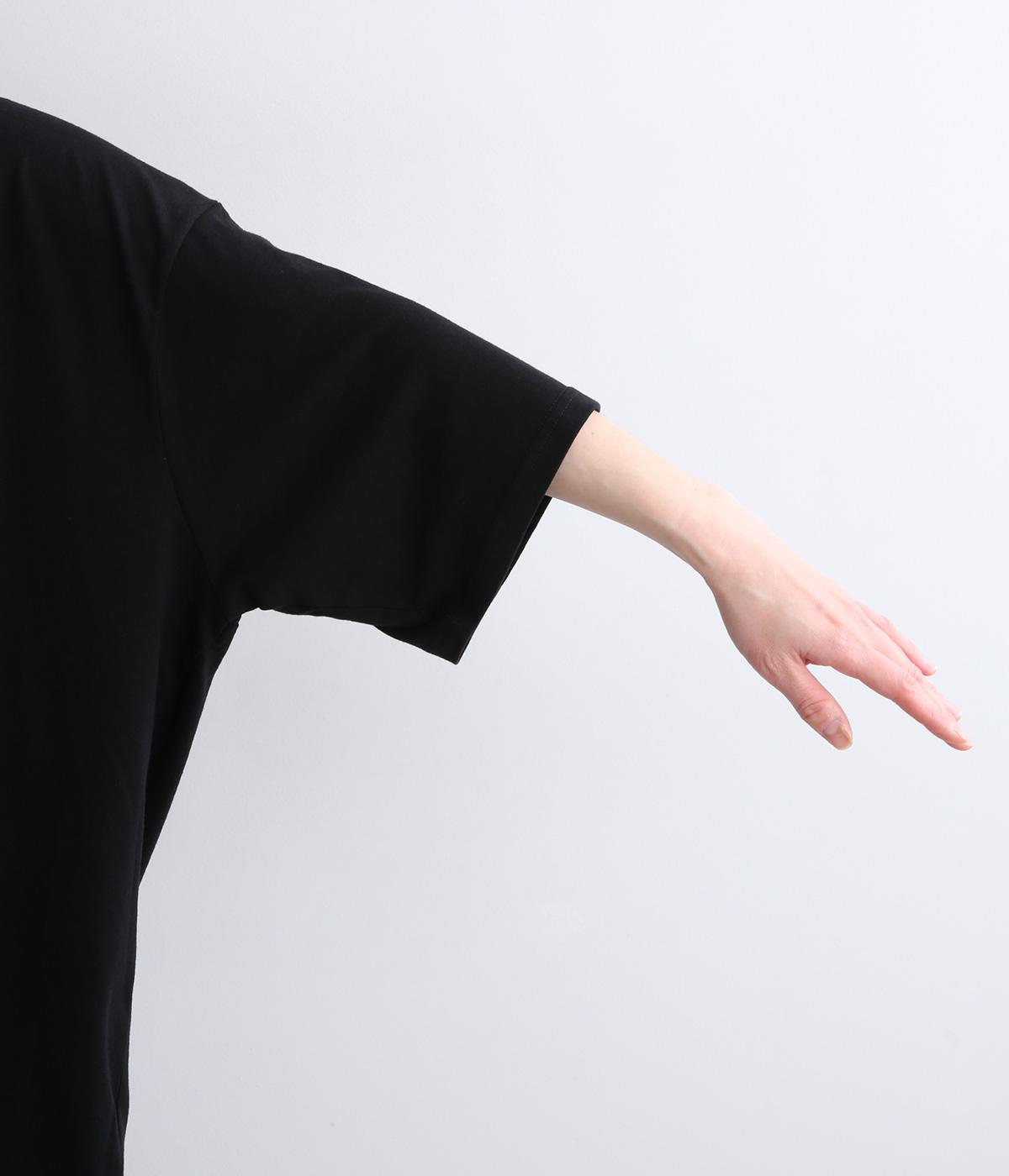 伸びのよい、さらりとした肌ざわりを持つコットン天竺を使用しています。首元のリブは混紡素材で切り替えて、着脱のしやすさをアップ。