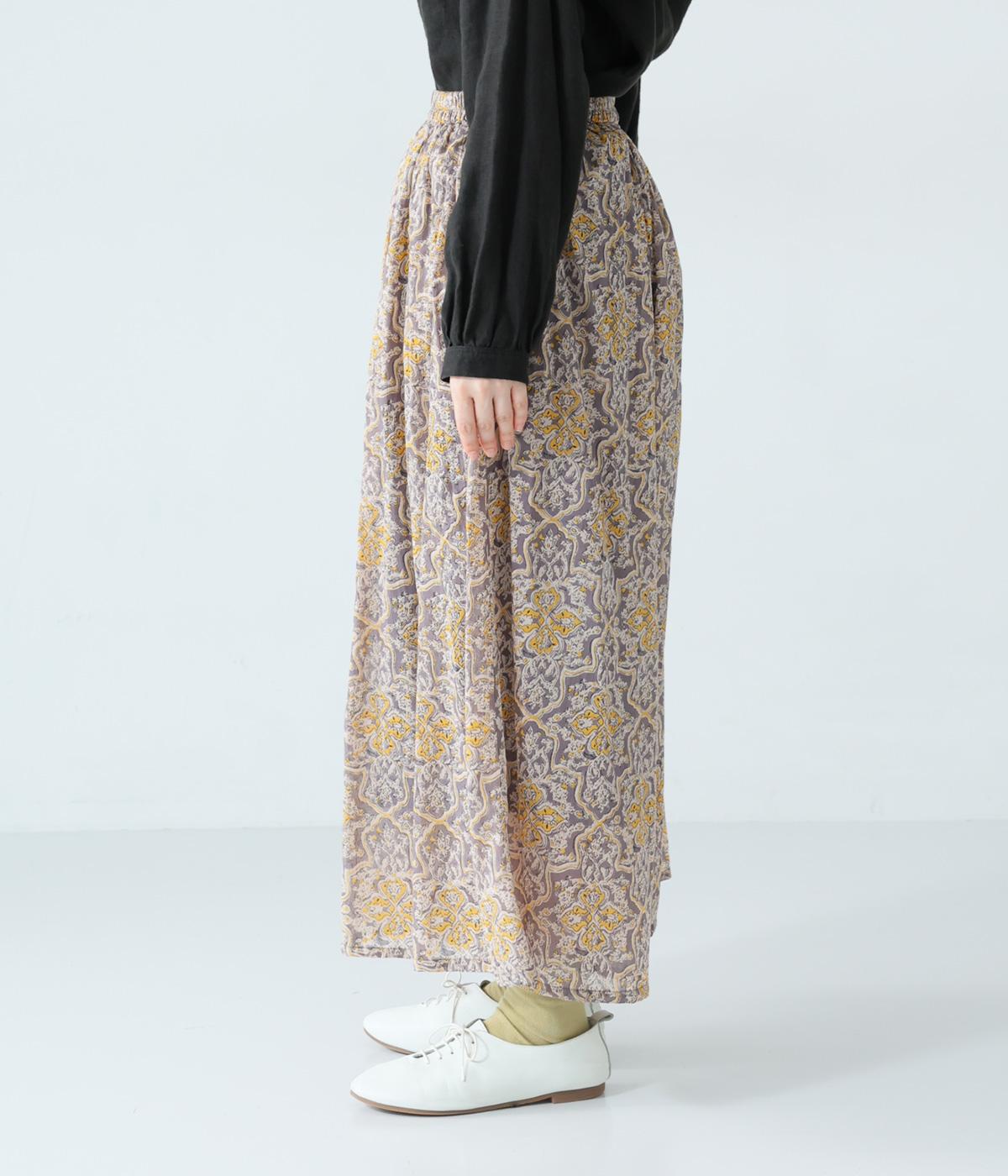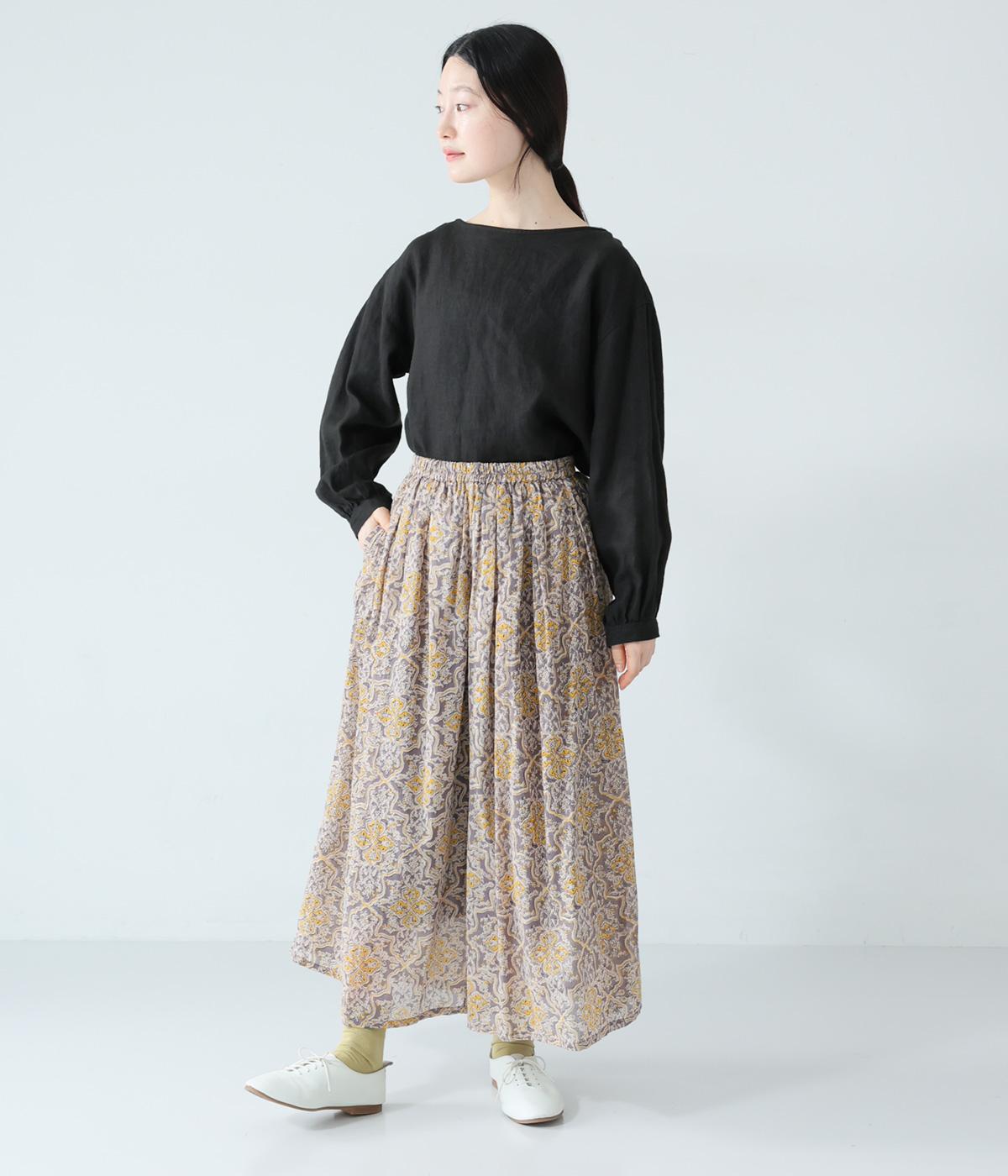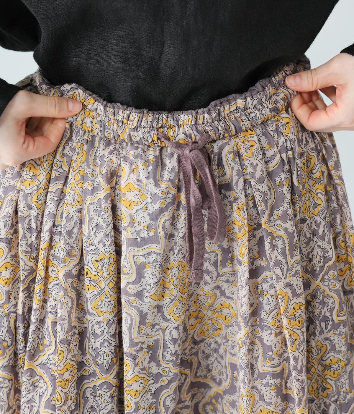 華やかさのあるオリエンタルな柄をあしらった裏地付きパンツです。ウエストはゴム仕様で内紐で調節でき、両サイドポケット付きで実用的。軽やかなシルエットで一枚でも着映えし、日々の装いをパッとトーンアップしてくれます。