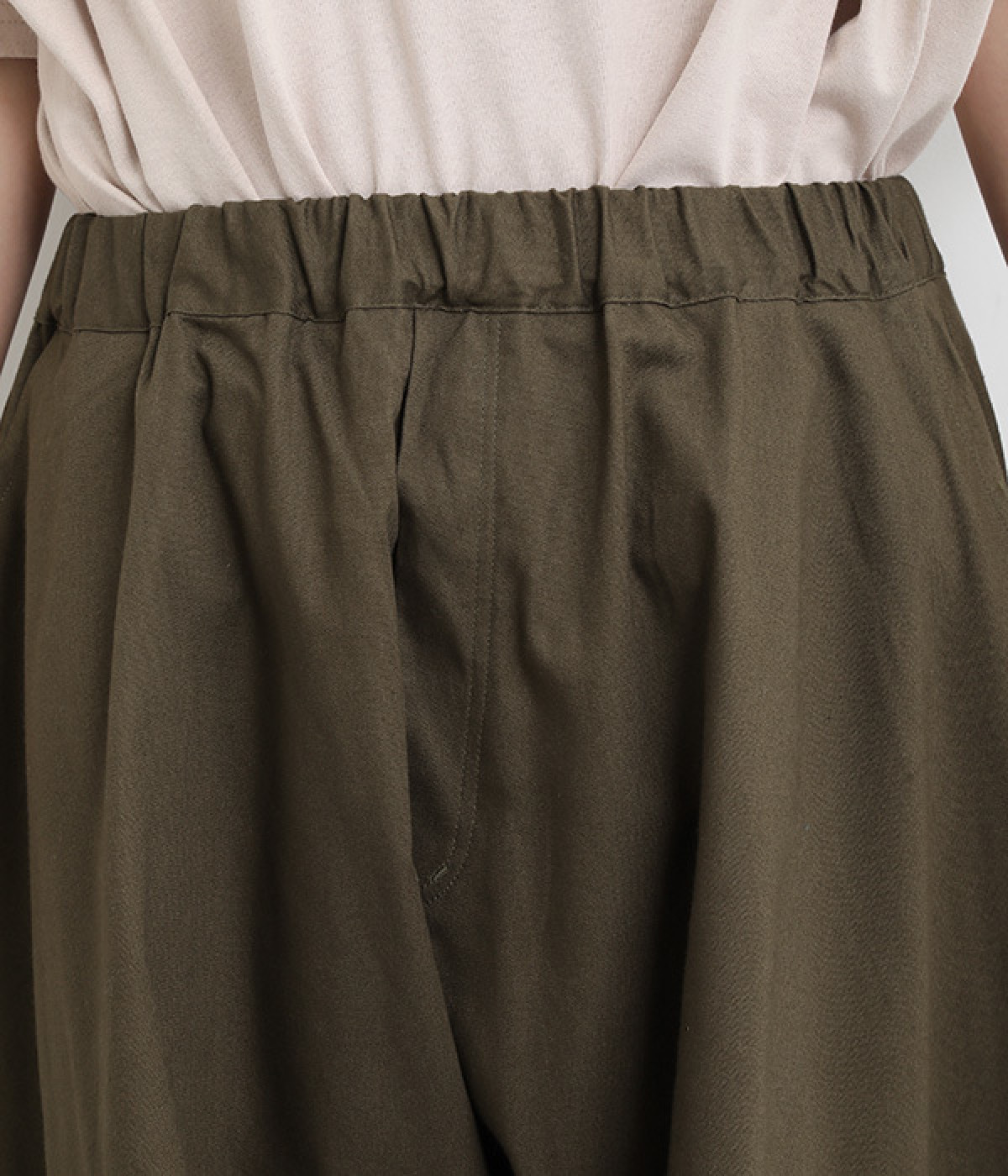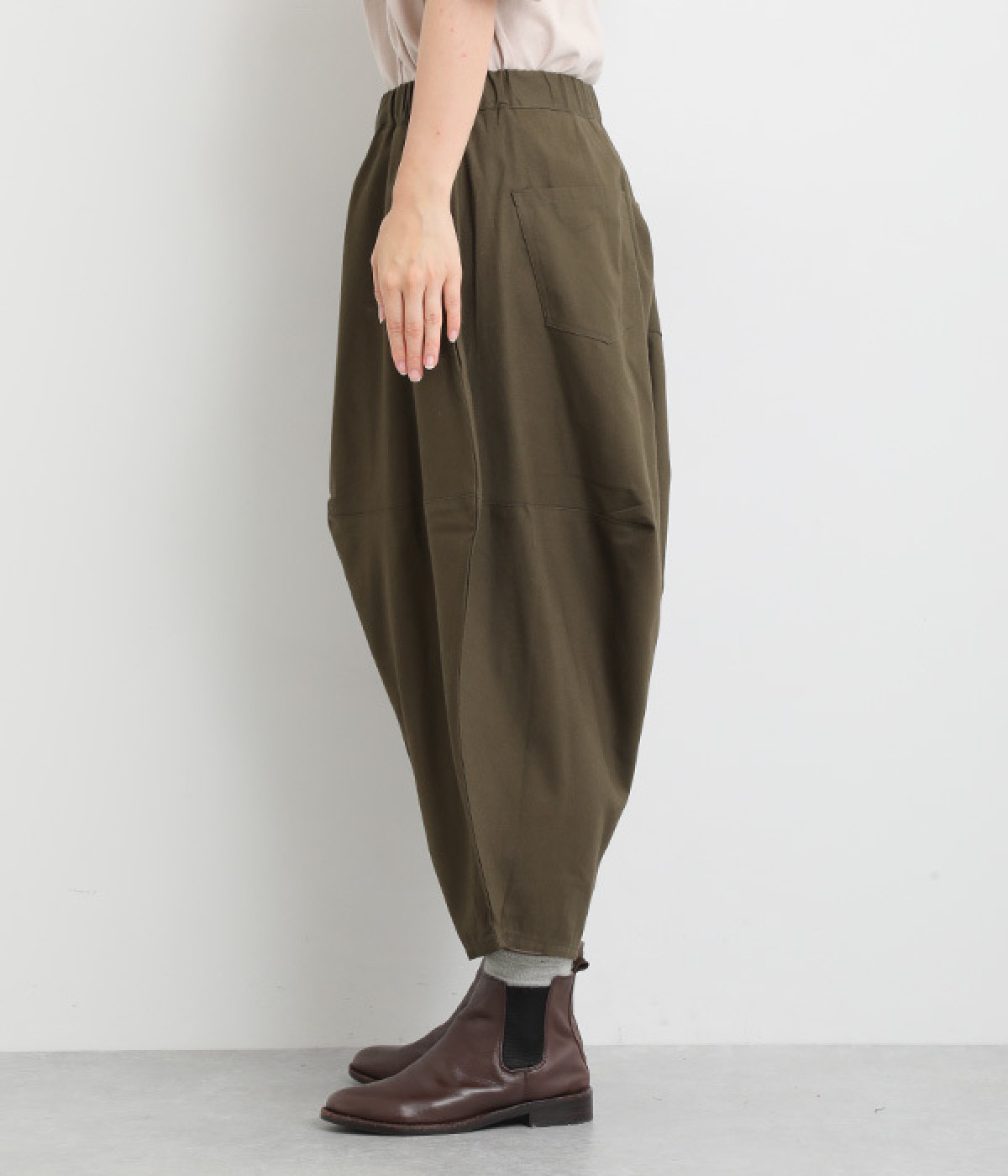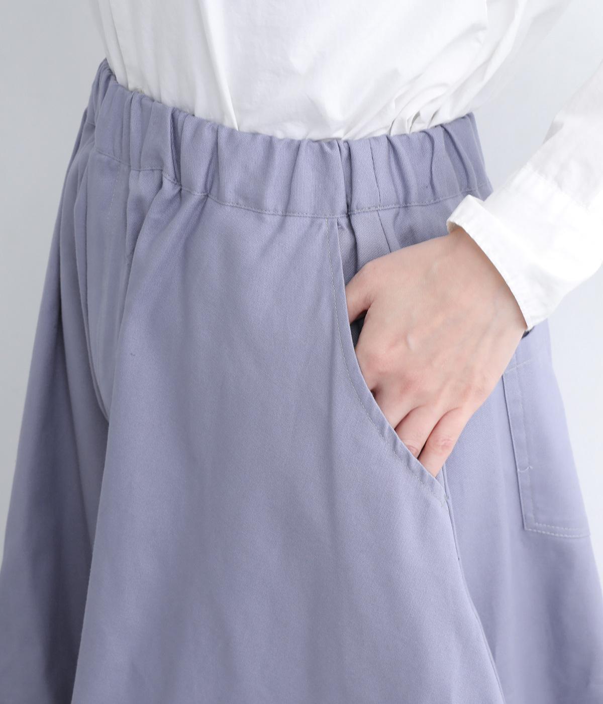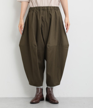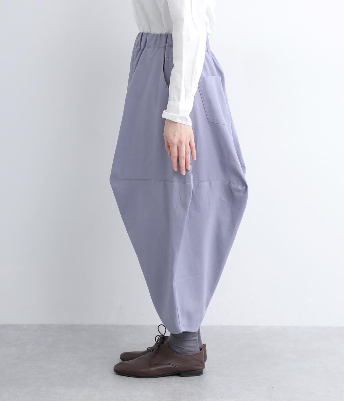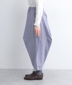 ダーツを入れて立体感をつけたシルエットが目を惹きます。シンプルな合わせでも個性的なスタイリングになり、一本持っているとなにかと便利。足元がすっきり見える丈感でバランスも◎。ウエストはぐるりとゴムを入れたイージー仕様です。