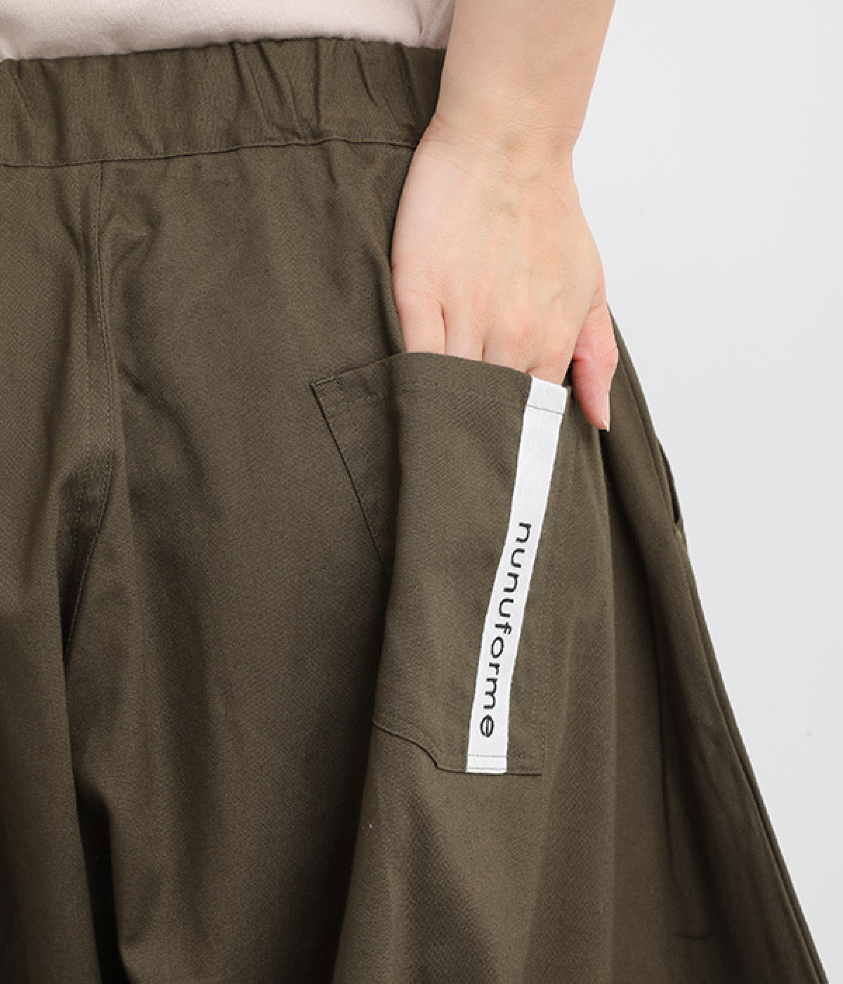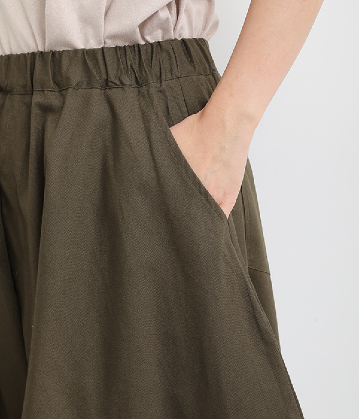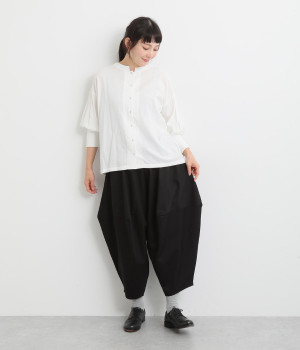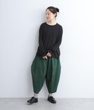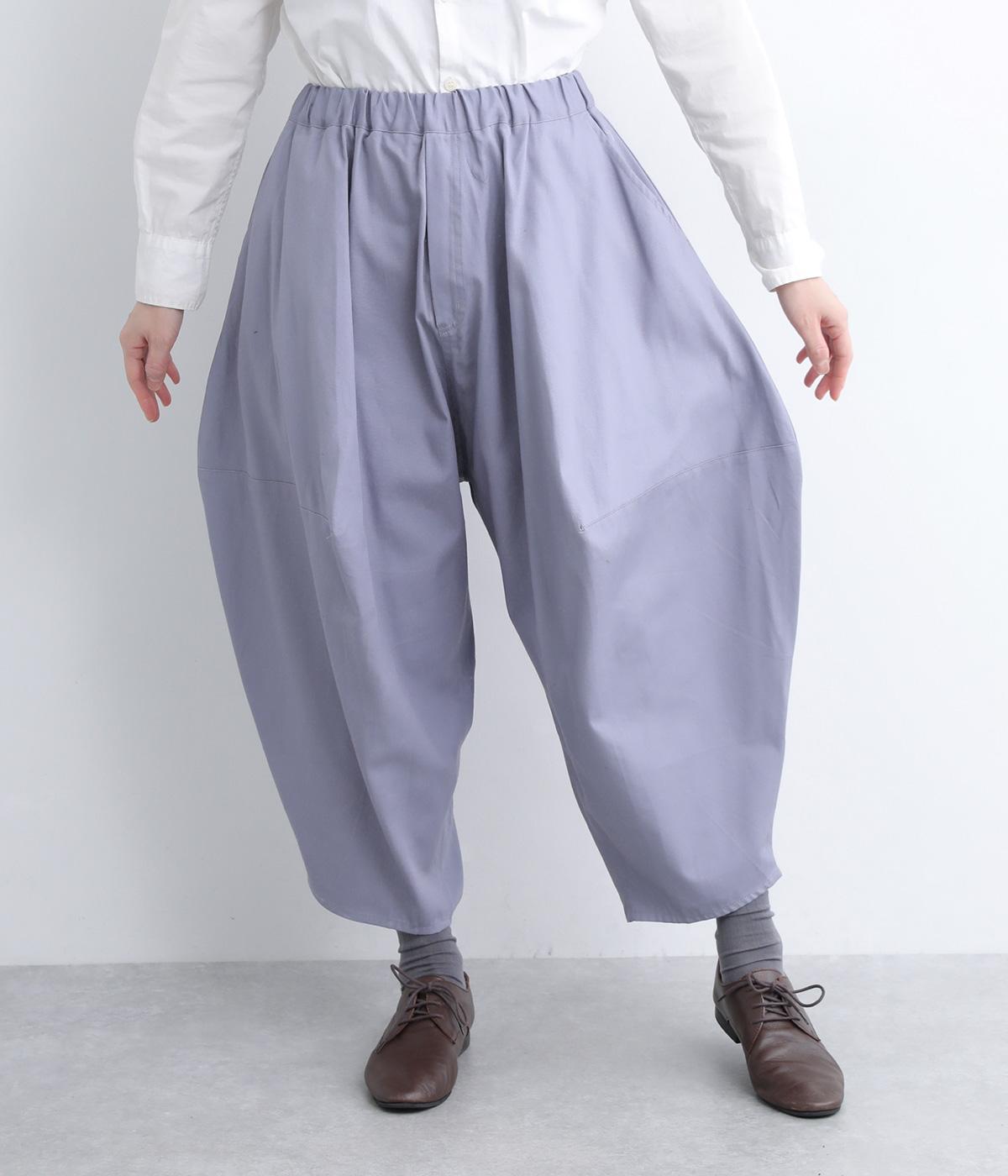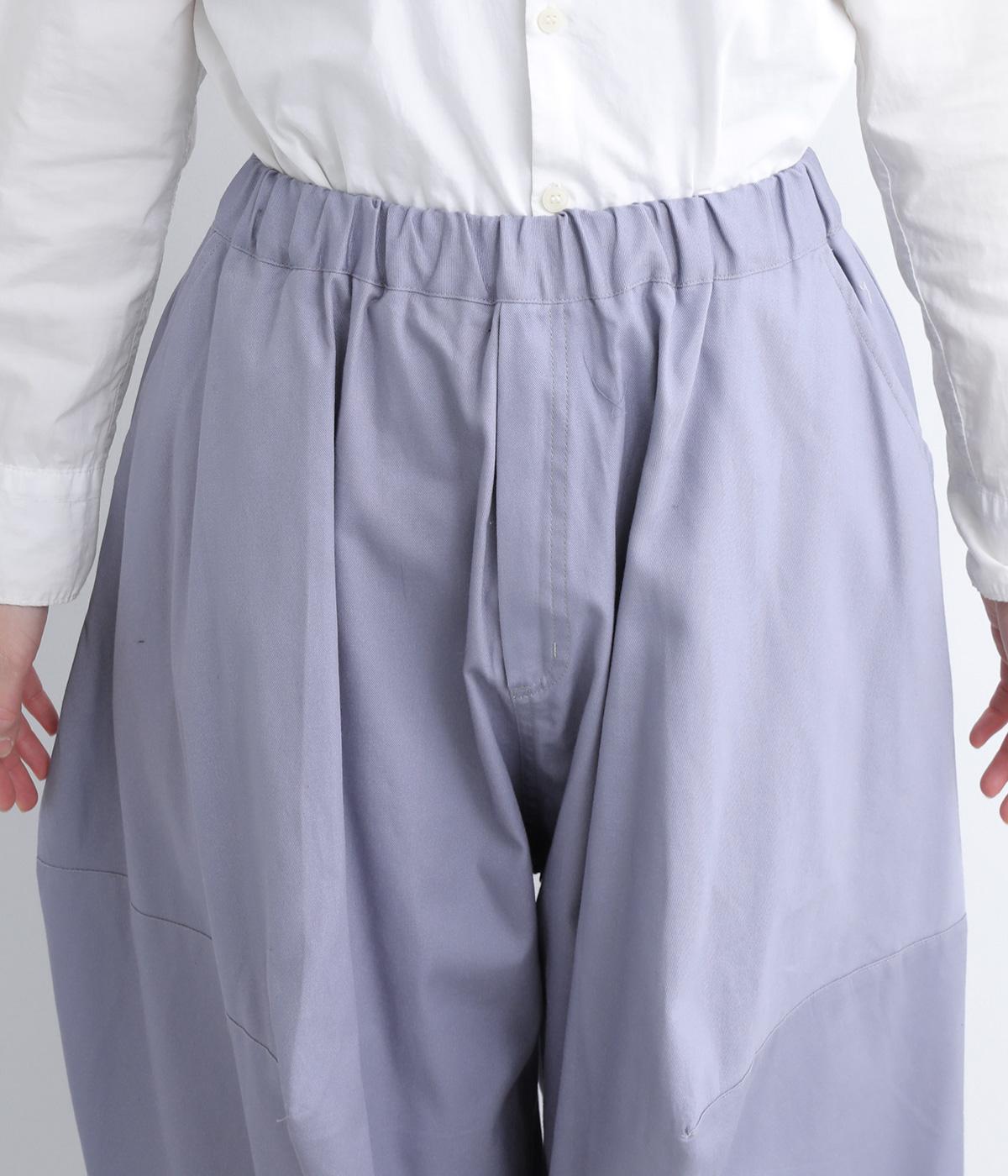 ダーツを入れて立体感をつけたシルエットが目を惹きます。シンプルな合わせでも個性的なスタイリングになり、一本持っているとなにかと便利。足元がすっきり見える丈感でバランスも◎。ウエストはぐるりとゴムを入れたイージー仕様です。