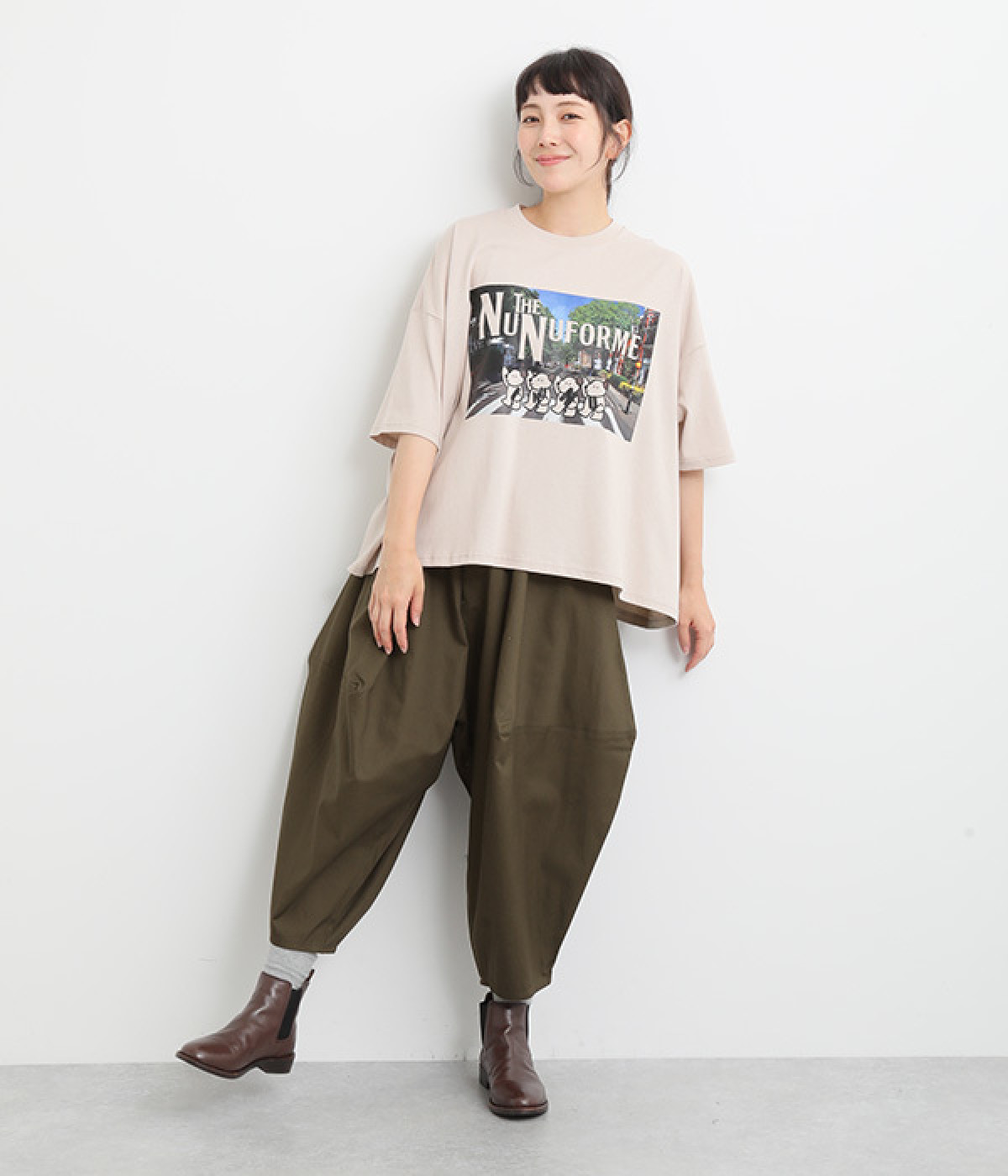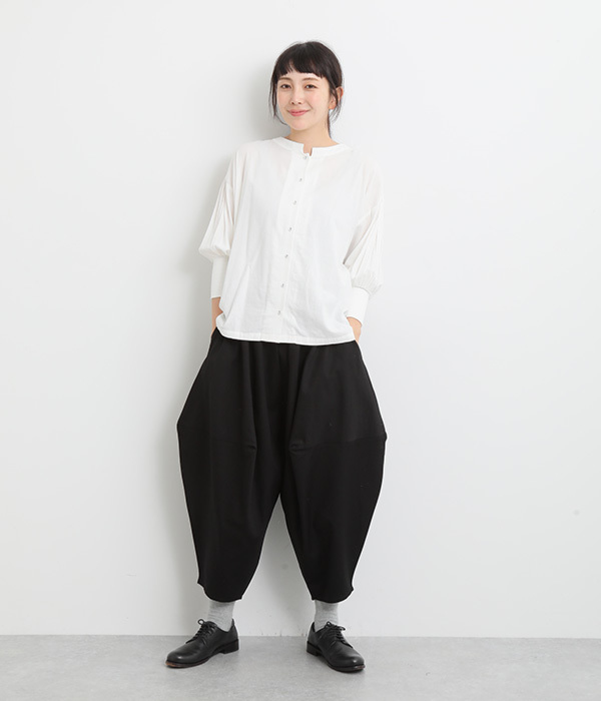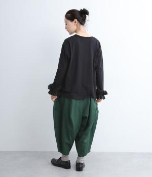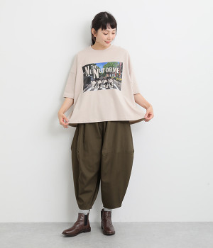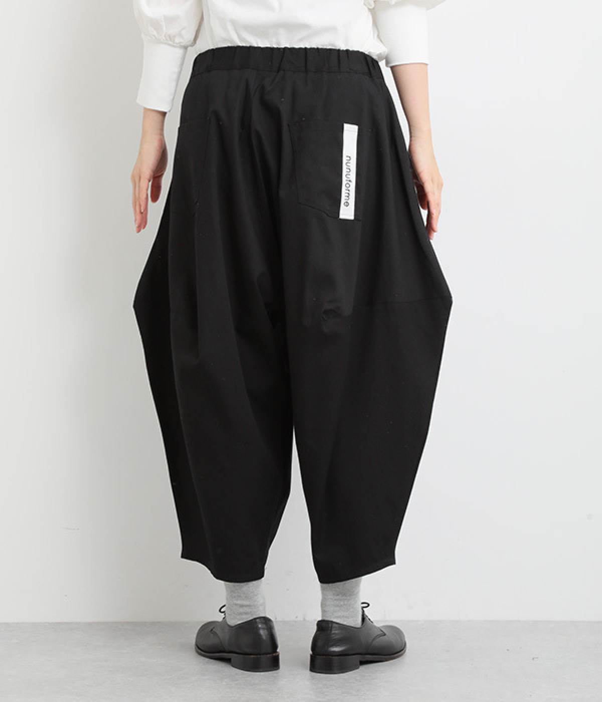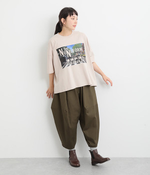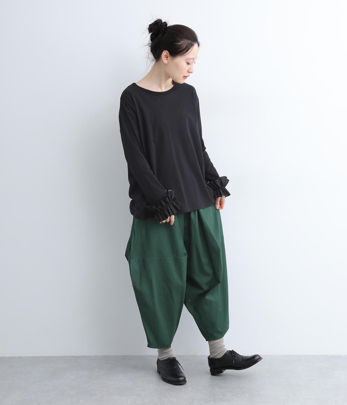 ダーツを入れて立体感をつけたシルエットが目を惹きます。シンプルな合わせでも個性的なスタイリングになり、一本持っているとなにかと便利。足元がすっきり見える丈感でバランスも◎。ウエストはぐるりとゴムを入れたイージー仕様です。