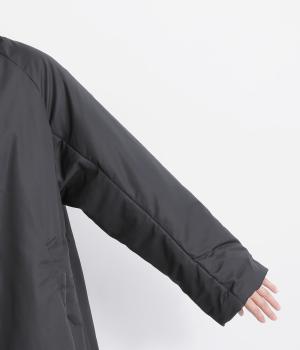 ふっくらとした肌触りのいい中綿入りの生地で仕立てました。ポリエステル製なので見た目以上に軽量で長時間着用の負担も軽減。総裏地つきで袖の通りもスムーズ。