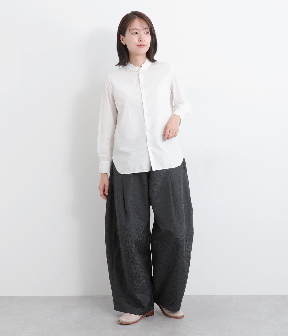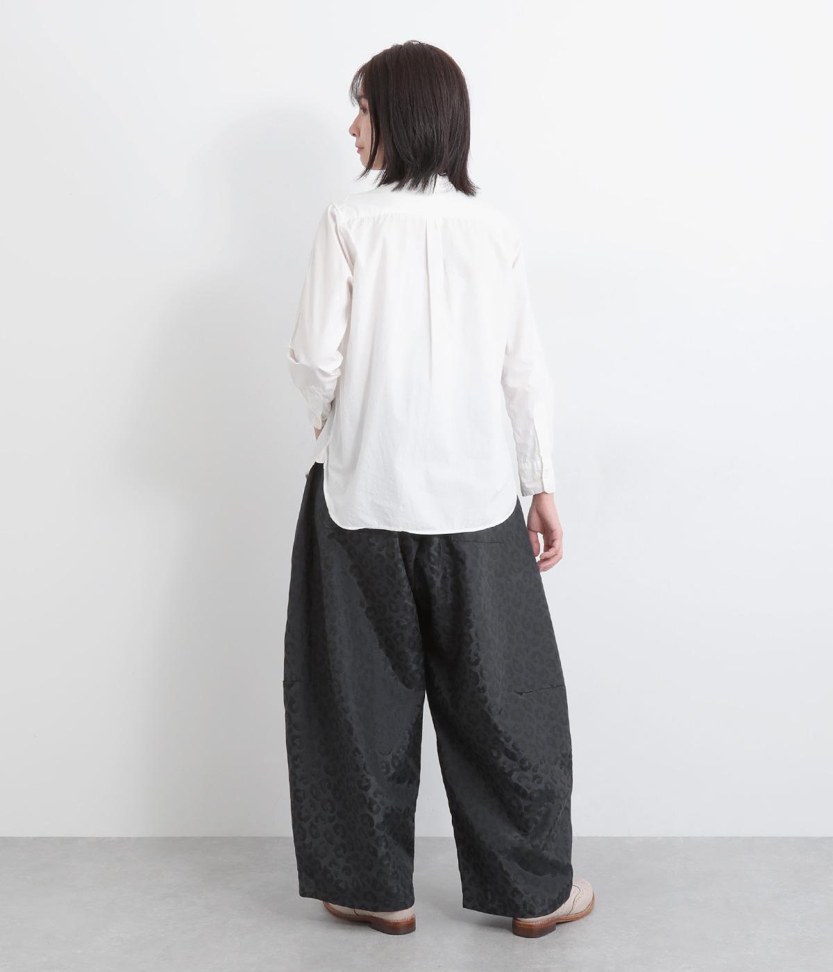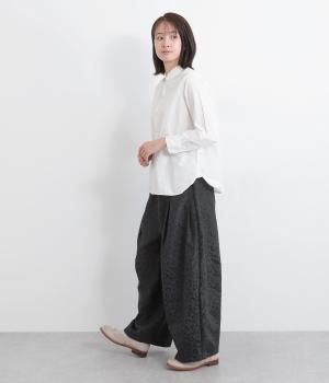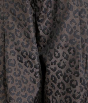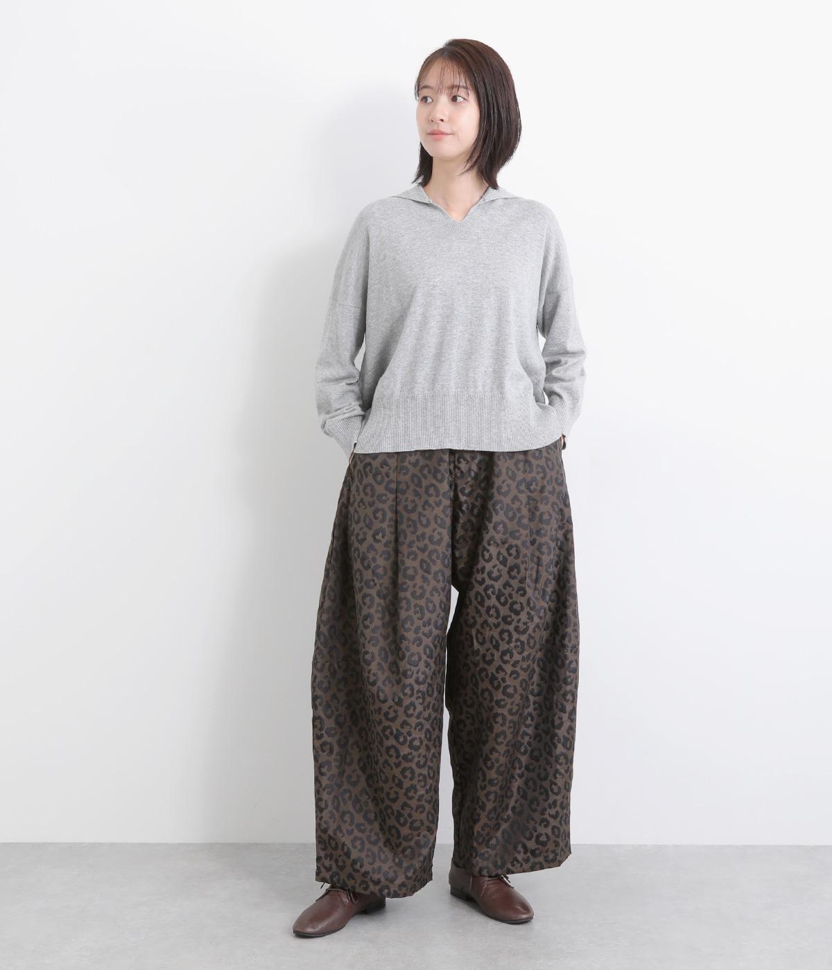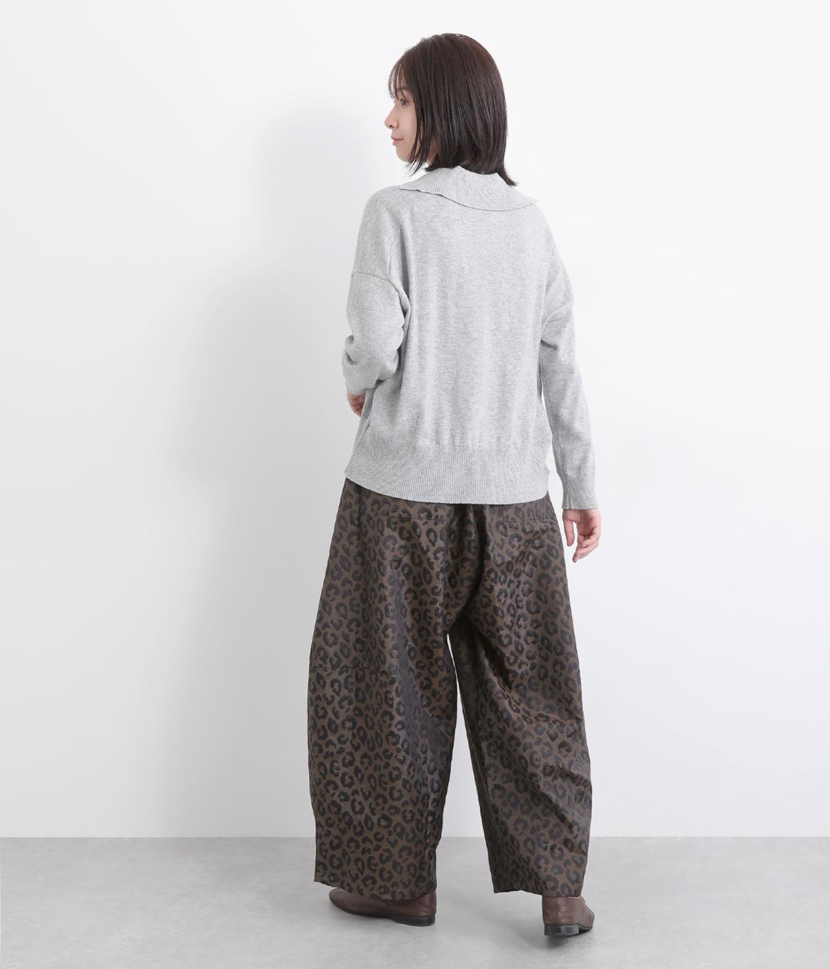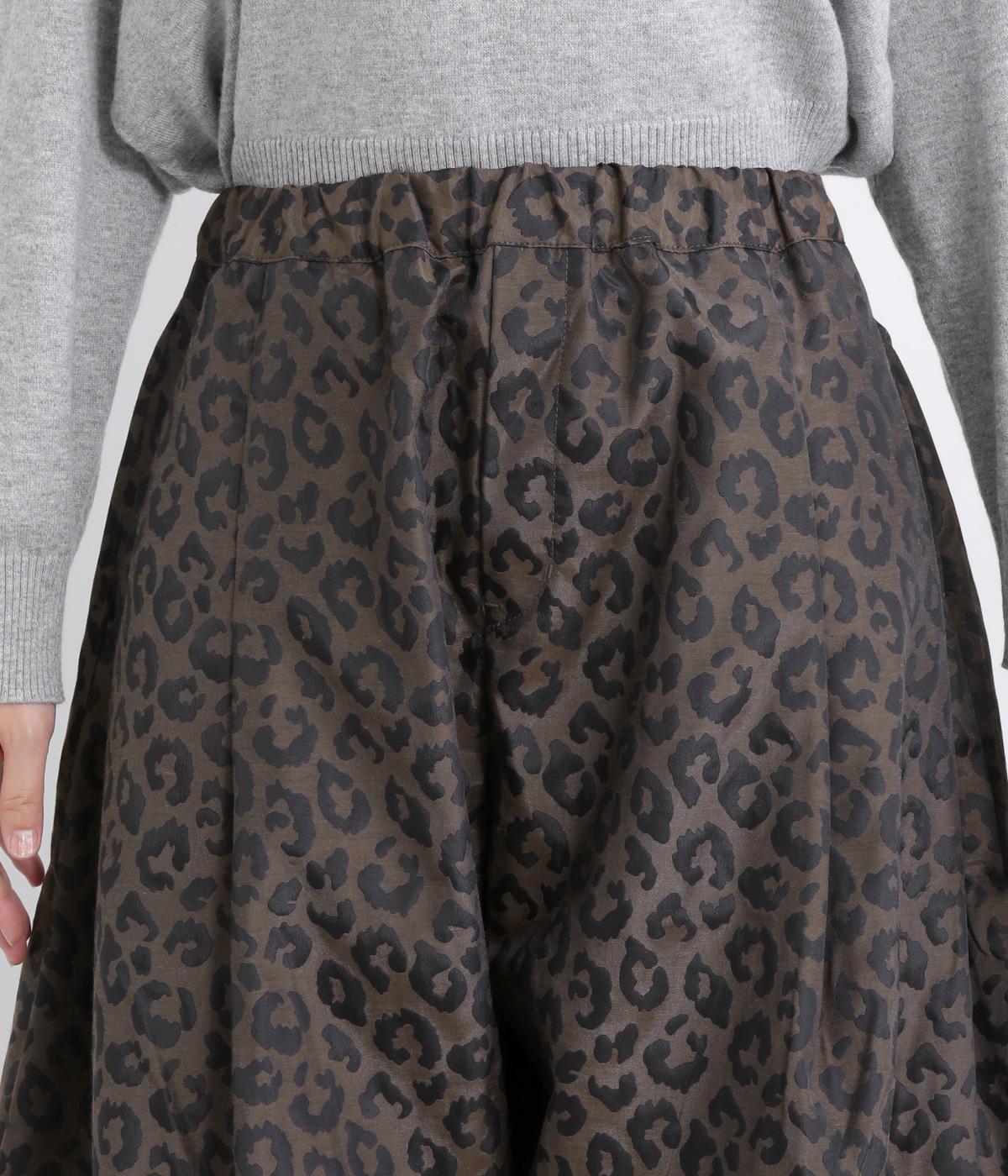 腰まわりは広がりをおさえながらもたっぷりとボリュームを持たせたタックデザインのパンツ。光沢のあるレオパード柄がインパクト抜群で、シンプルな合わせでも個性的なお洒落がたのしめます。ウエストは総ゴムのイージー仕様。