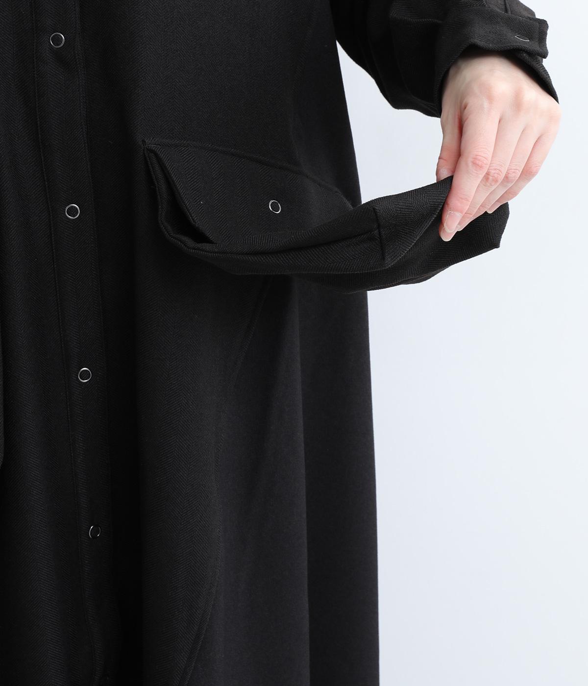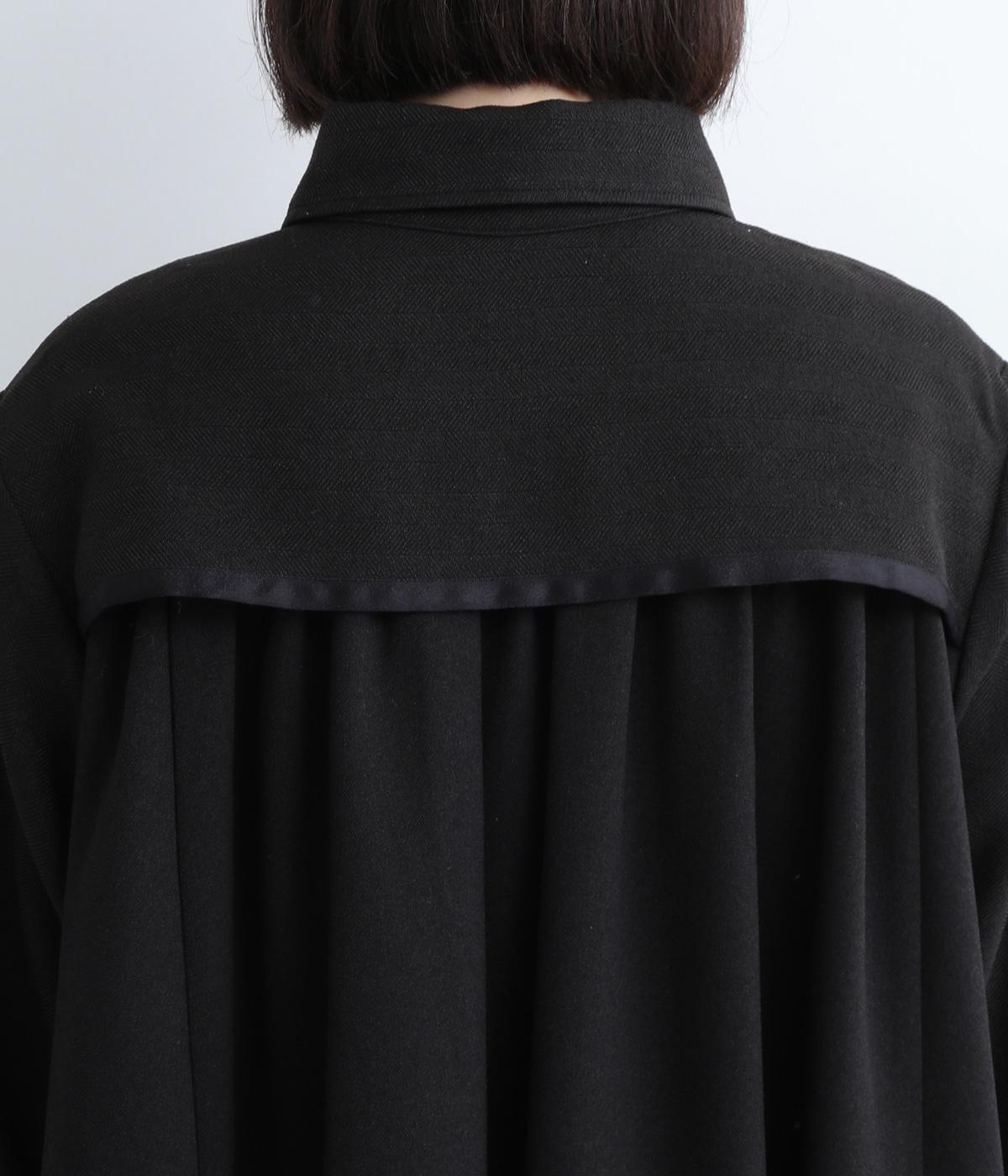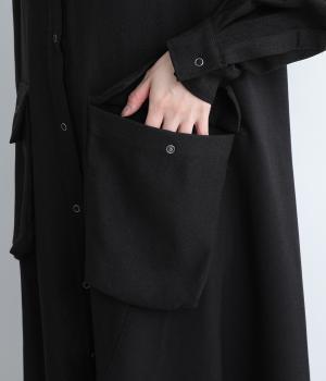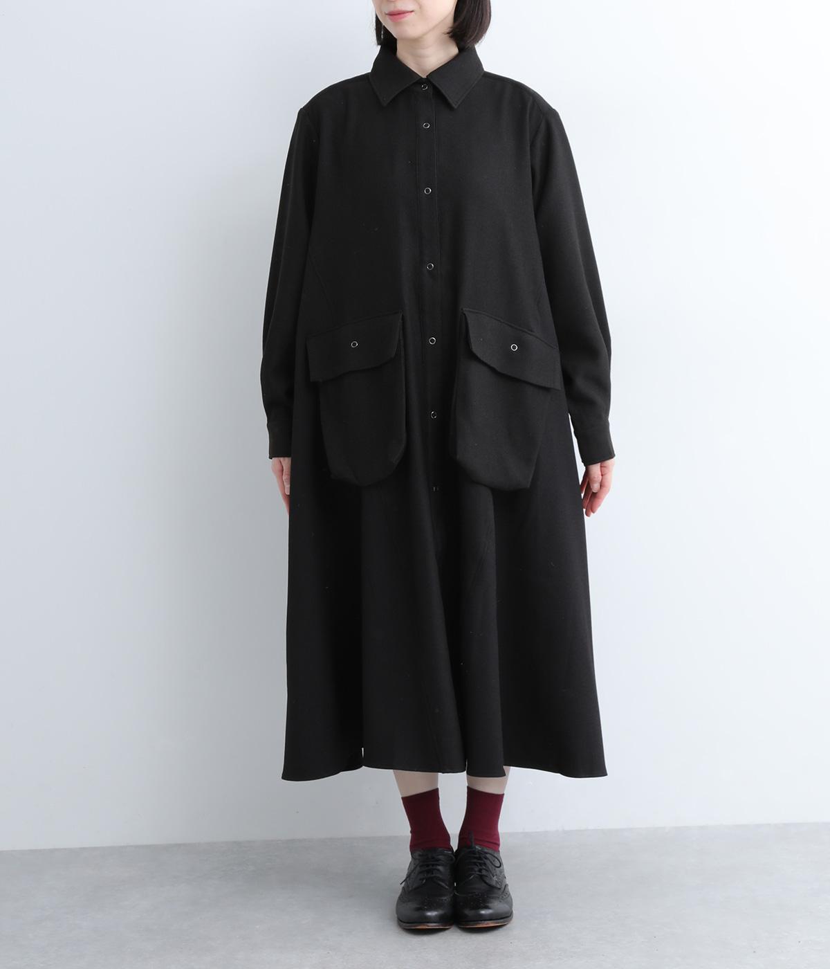 独立したフラップポケットをぶら下げたようなデザインが新鮮でインパクトのある一枚。フレアに広がるAラインシルエットで優雅な印象を与えながらも、ディテールでカジュアル&モードに仕上げています。着こなし次第でクラシカルにもたのしめます。