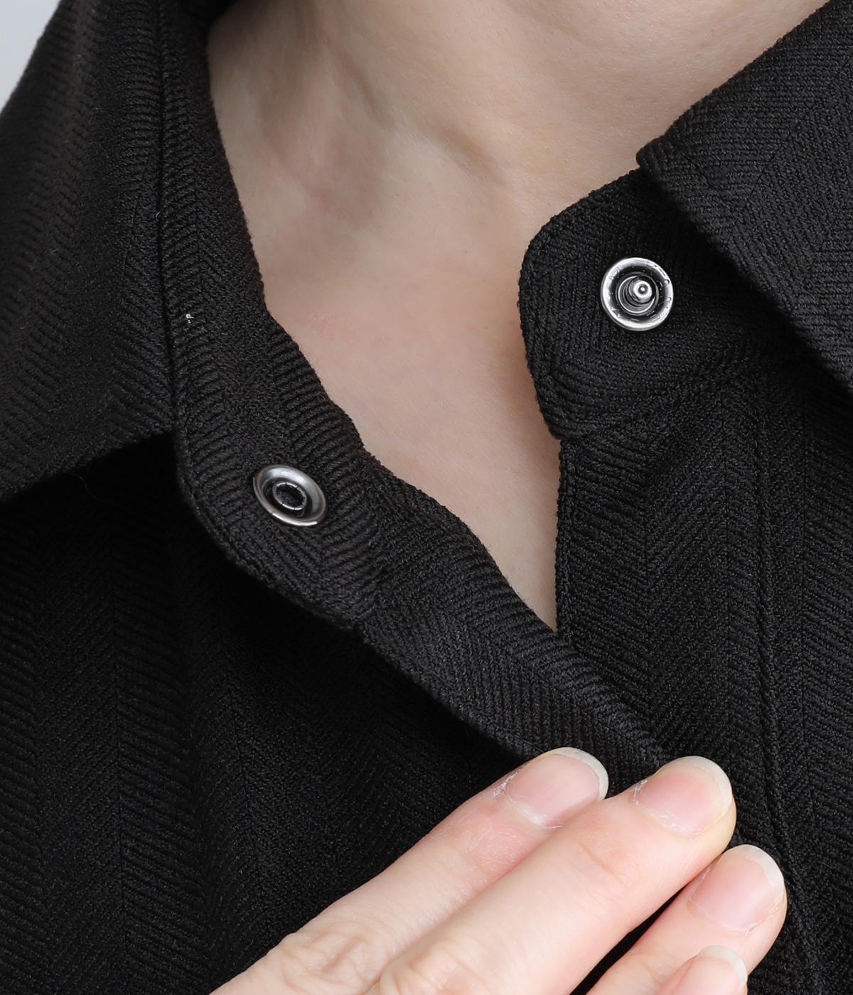 耐久性や速乾性に優れ、シワにもなりにくいのでデイリー使いに適しているポリエステル生地をセレクト。表情のある織りの地柄が特徴的で、クラシカルな印象に仕上がっています。