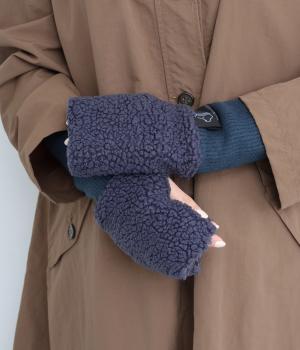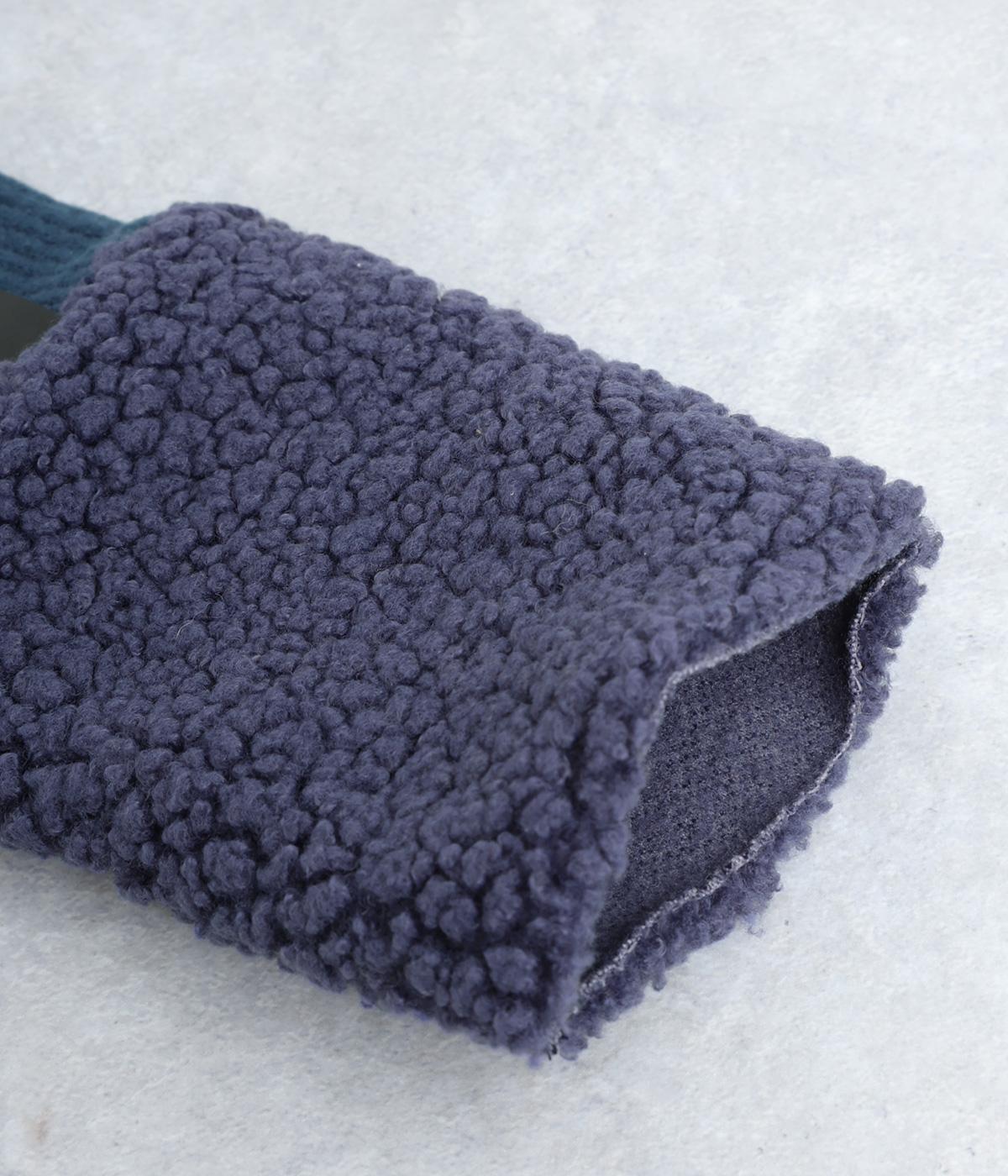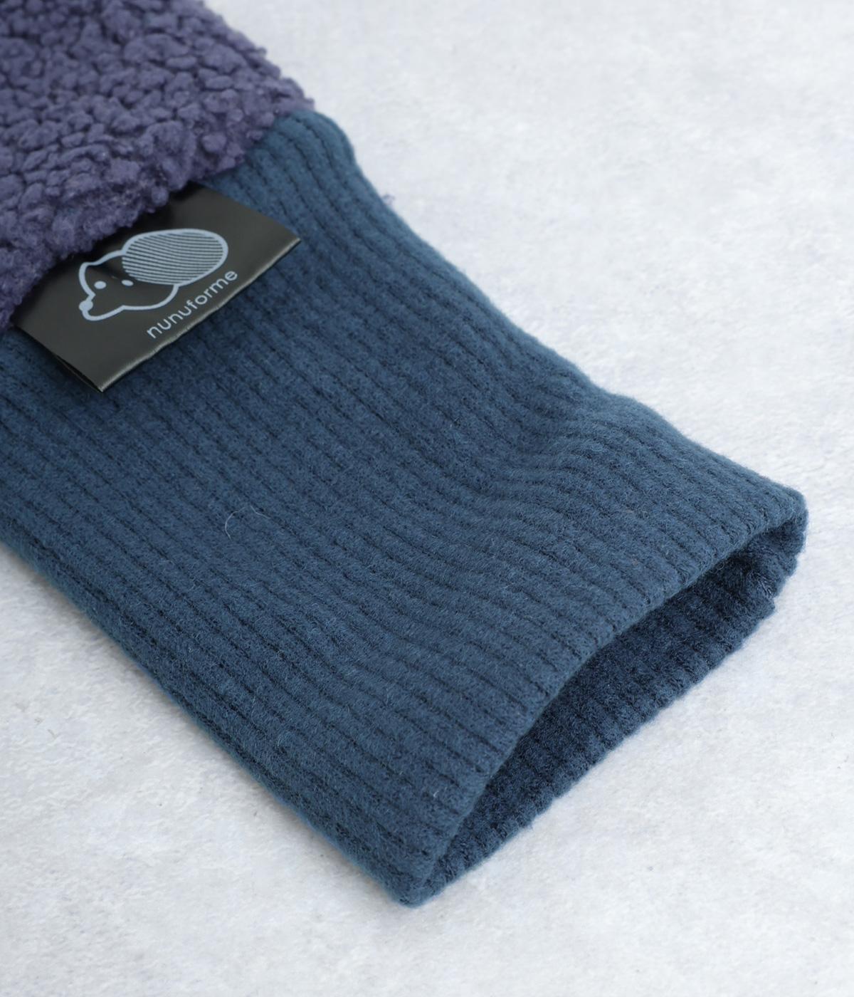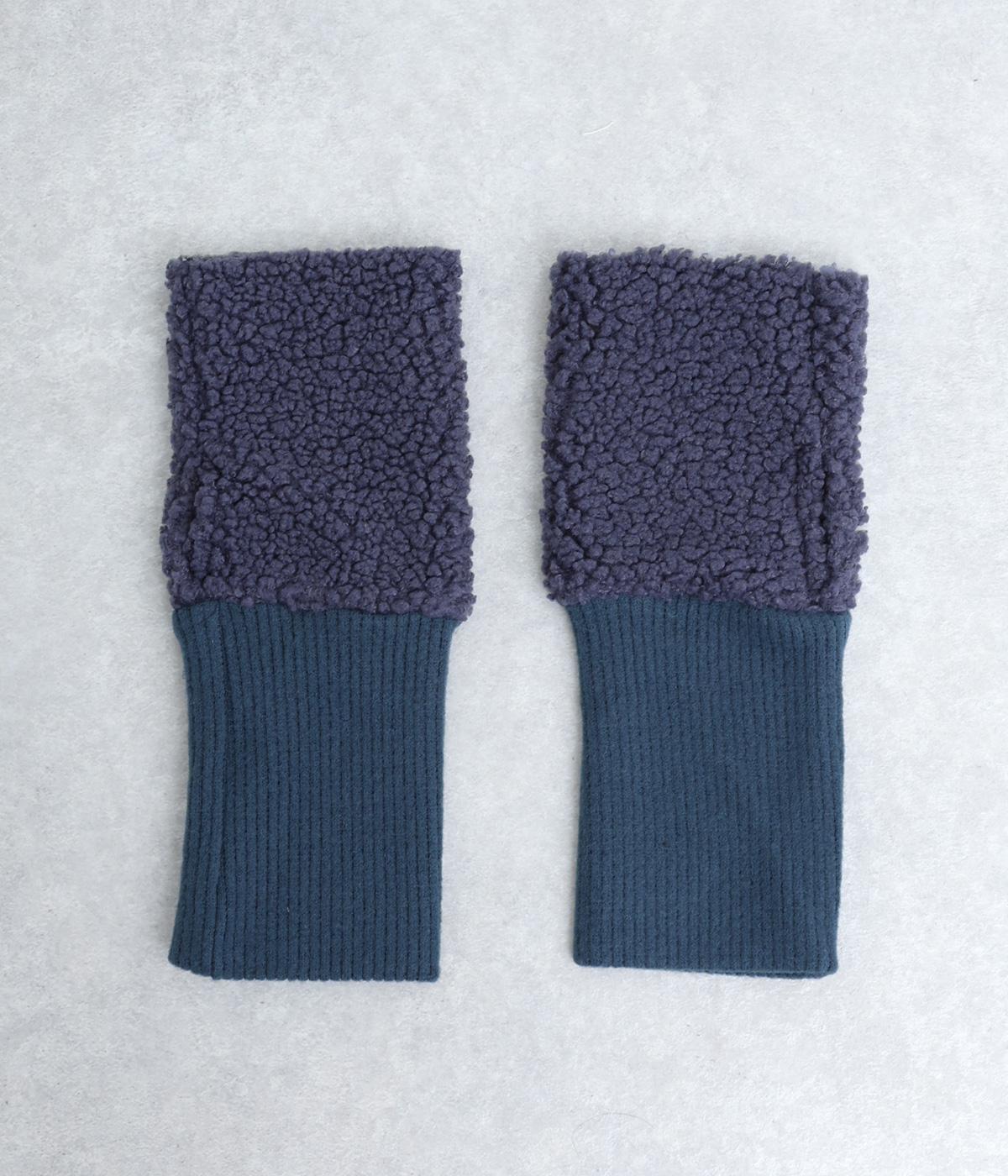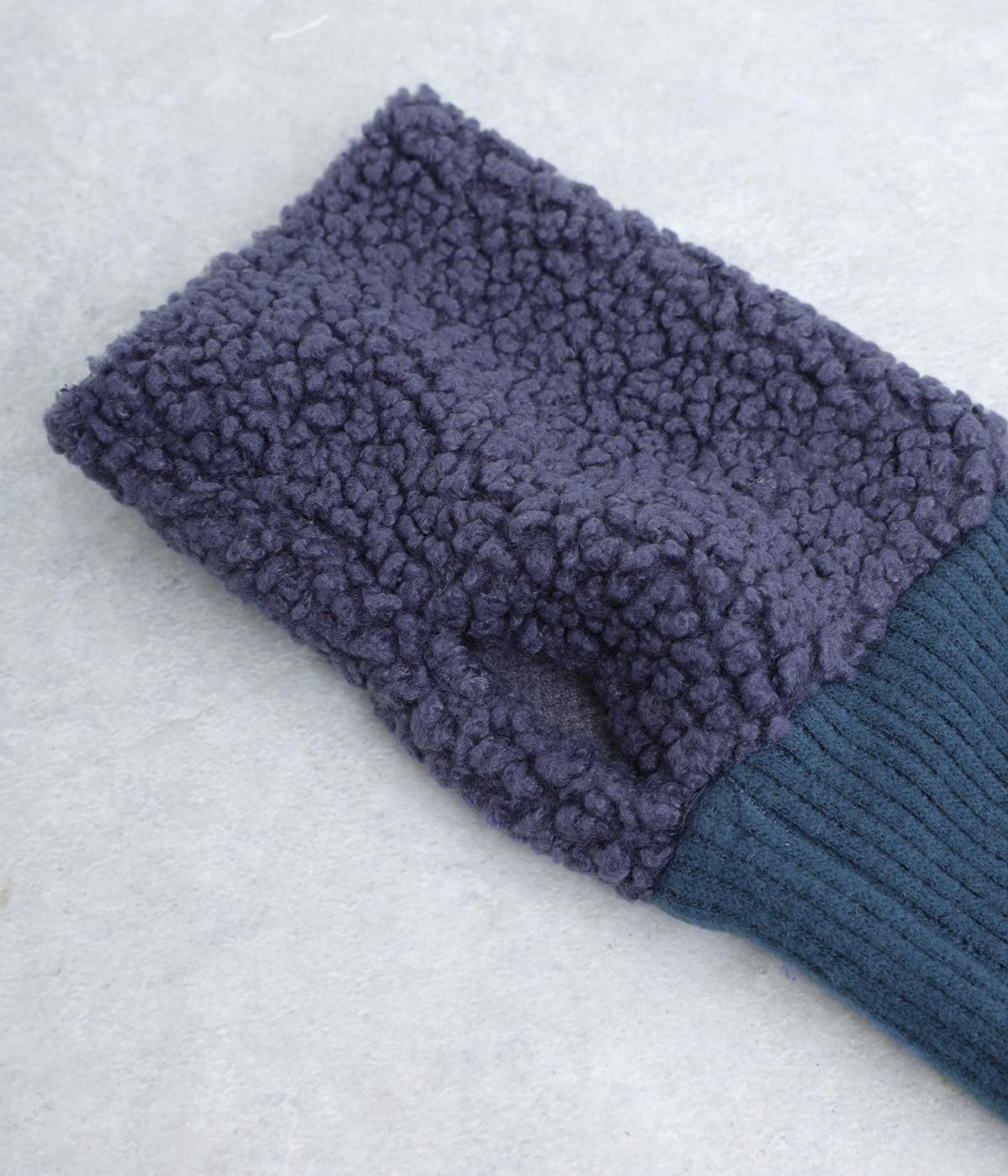 もこもことしたパイル地がかわいらしい印象を与えます。ポリエステル製なので速乾性も良く、軽やかに仕上げました。手首にはほわほわとしたあたたかなリブに切り替え。