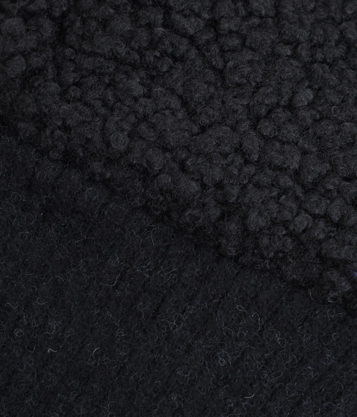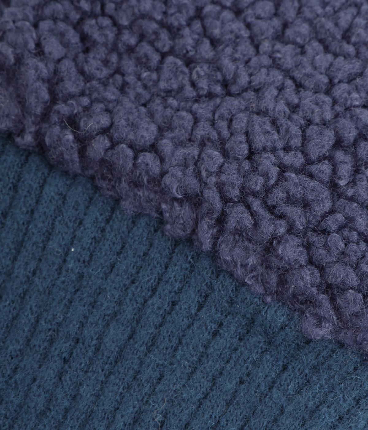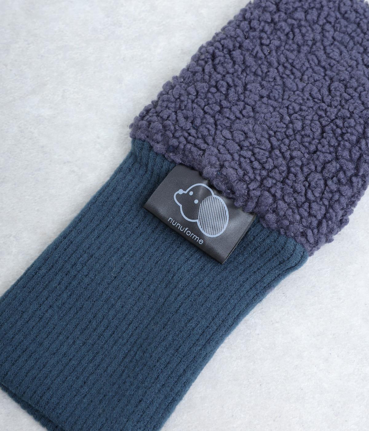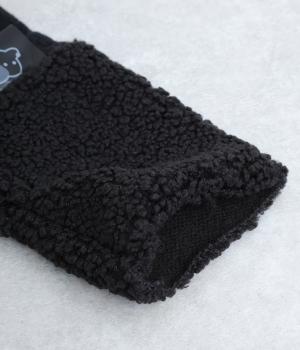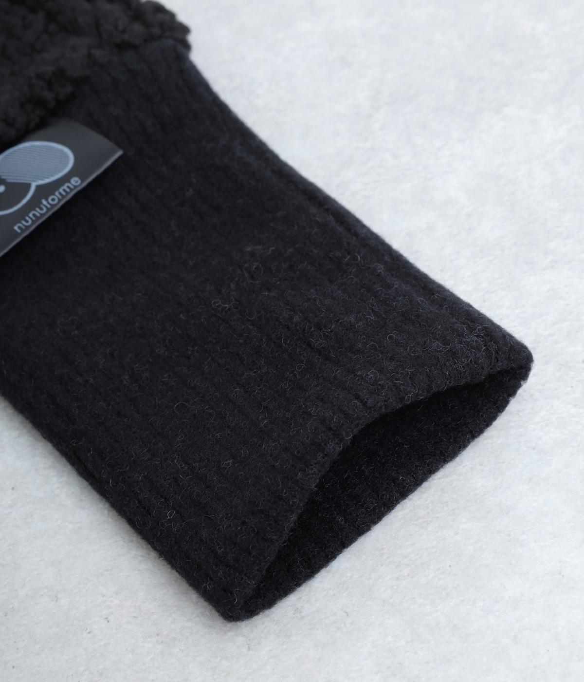 もこもことしたパイル地がかわいらしい印象を与えます。ポリエステル製なので速乾性も良く、軽やかに仕上げました。手首にはほわほわとしたあたたかなリブに切り替え。