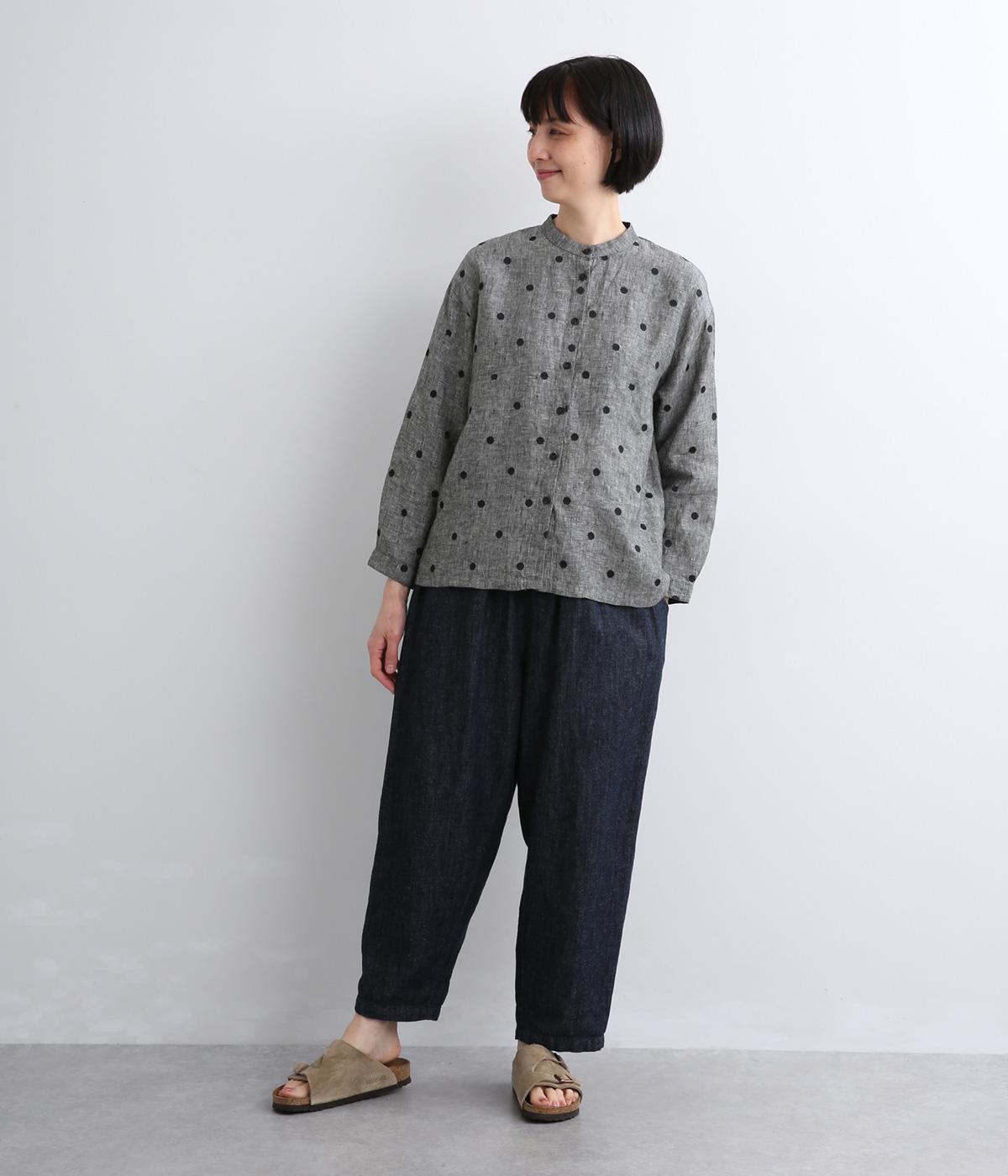 さらりとした優しい肌ざわりのリネンシャンブレー素材を使用しています。通気性がよいので暑い季節も快適な穿き心地です。