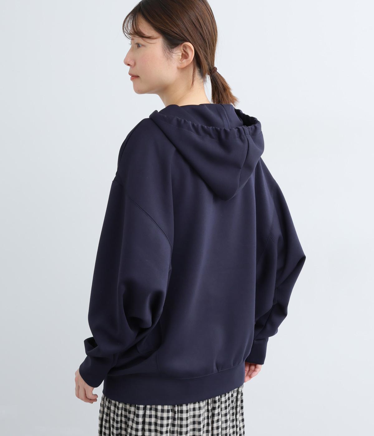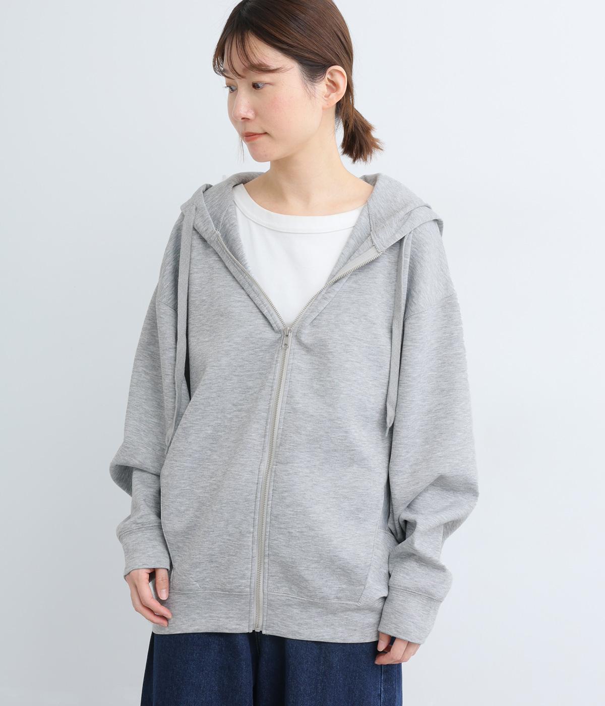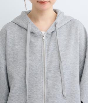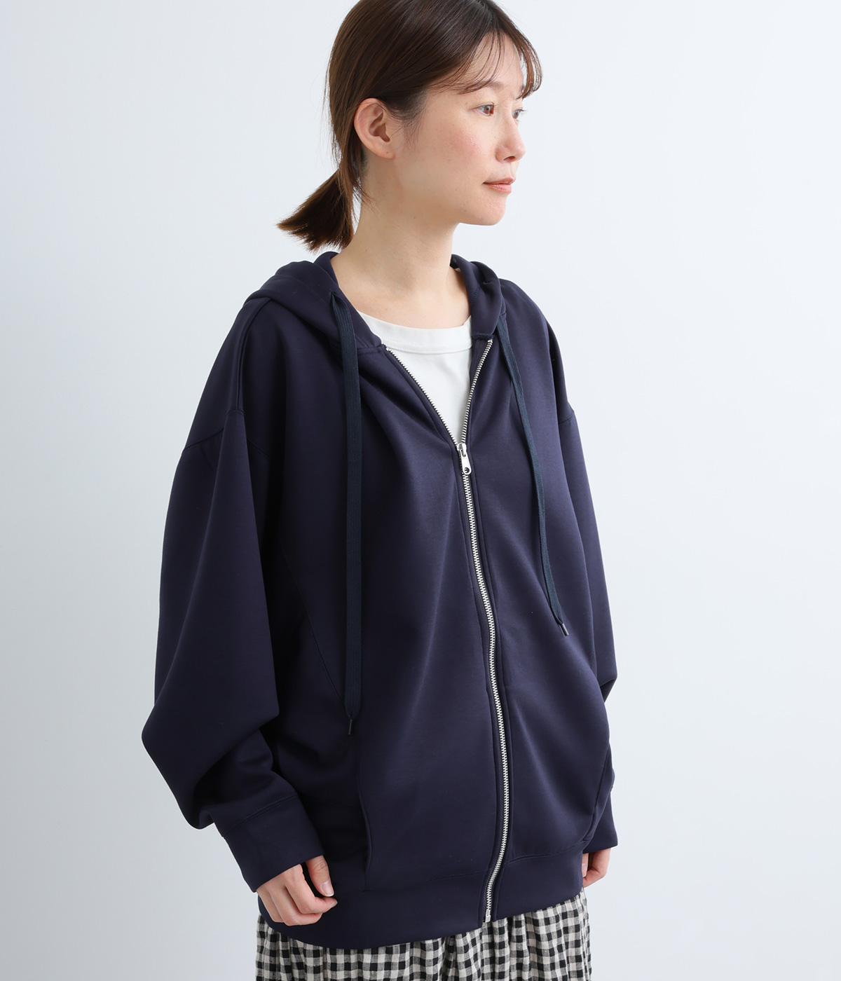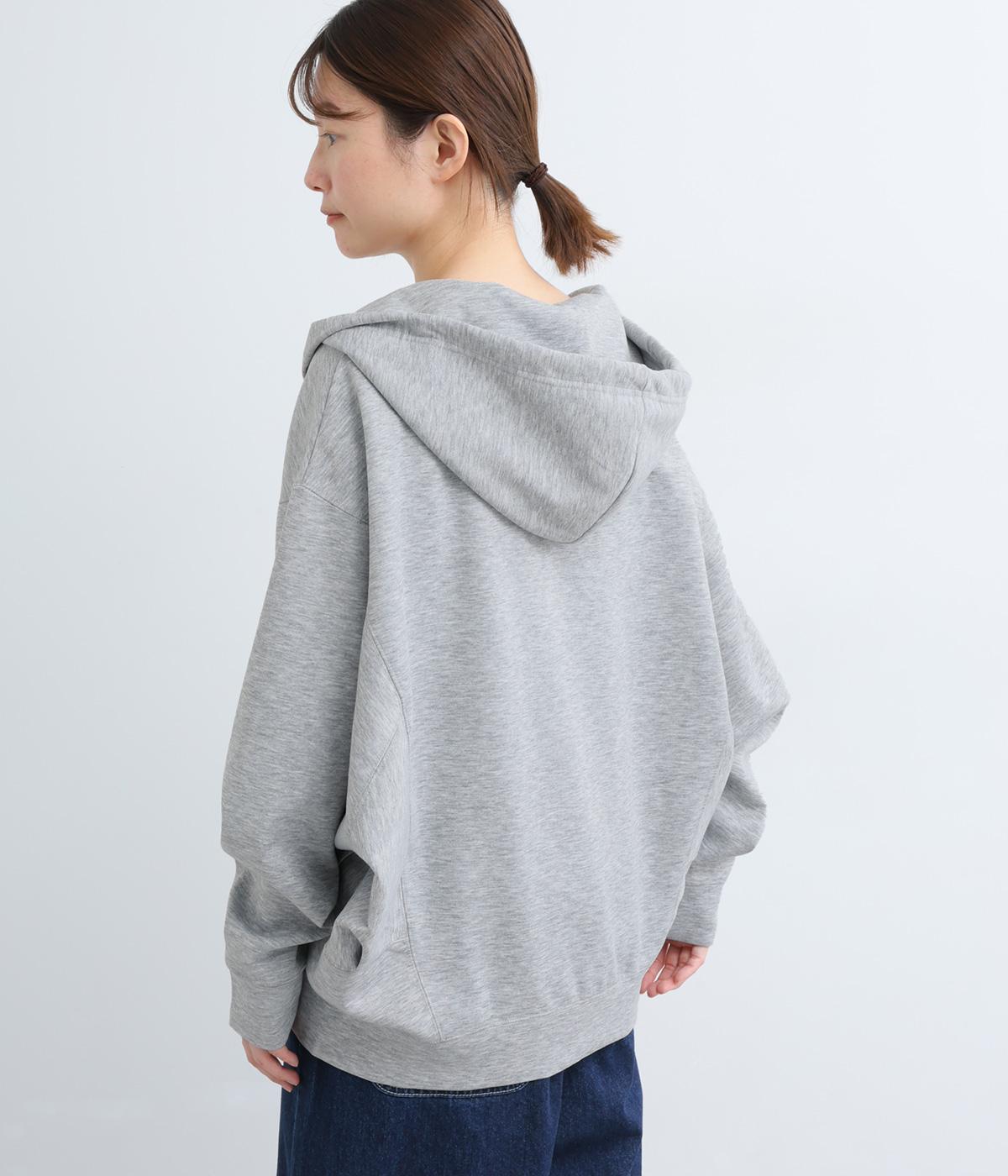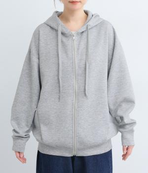 定番の前開きパーカーをドルマンスリーブで仕立てました。腕を動かすたびに華やかなシルエットを描き、女性らしい雰囲気を引き立てます。さりげないアクセントが効いた、大人カジュアルスタイルにぴったりな一枚です。