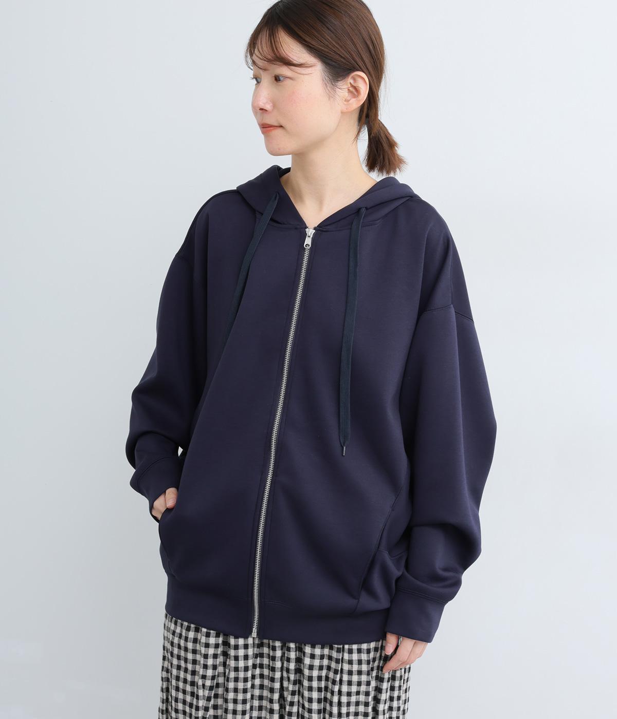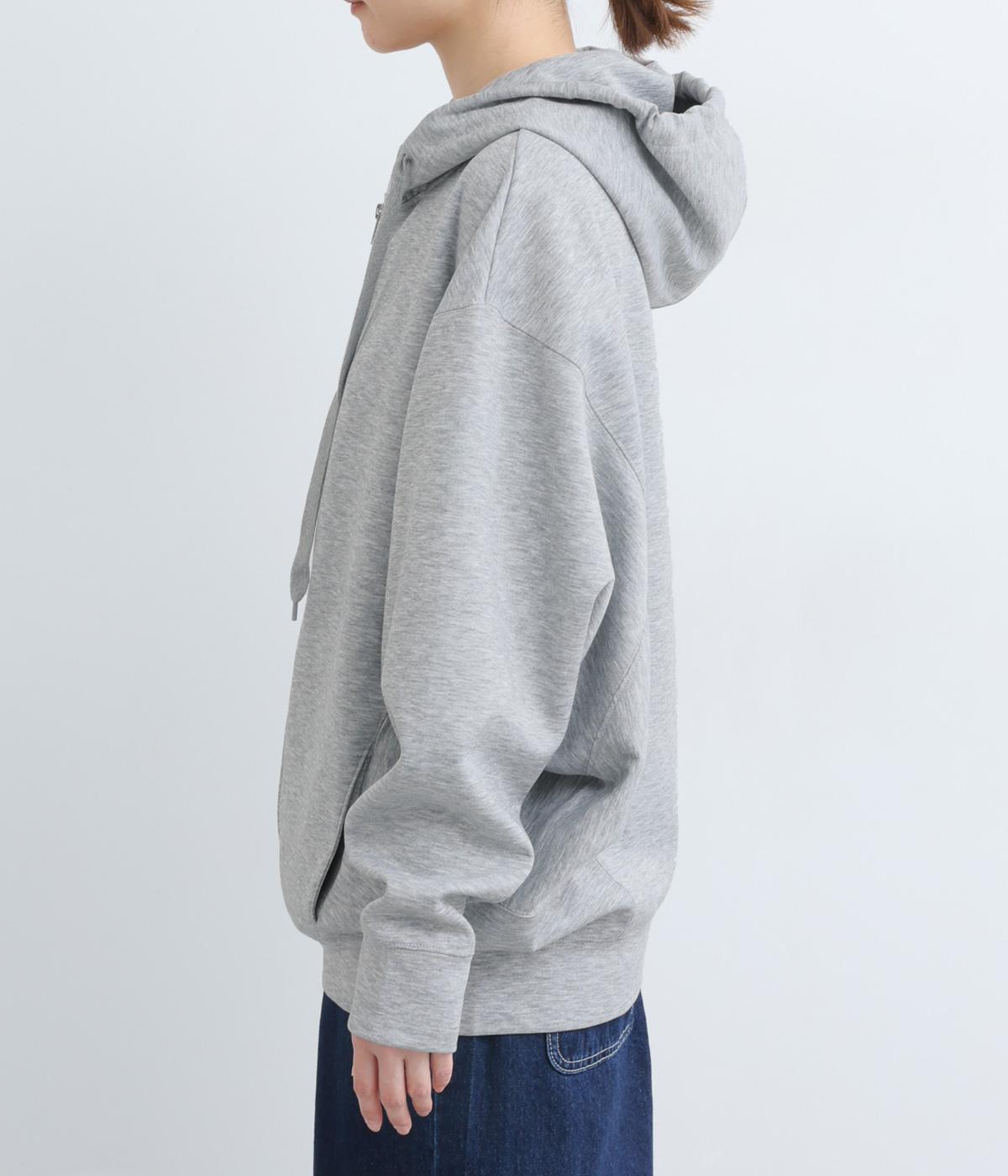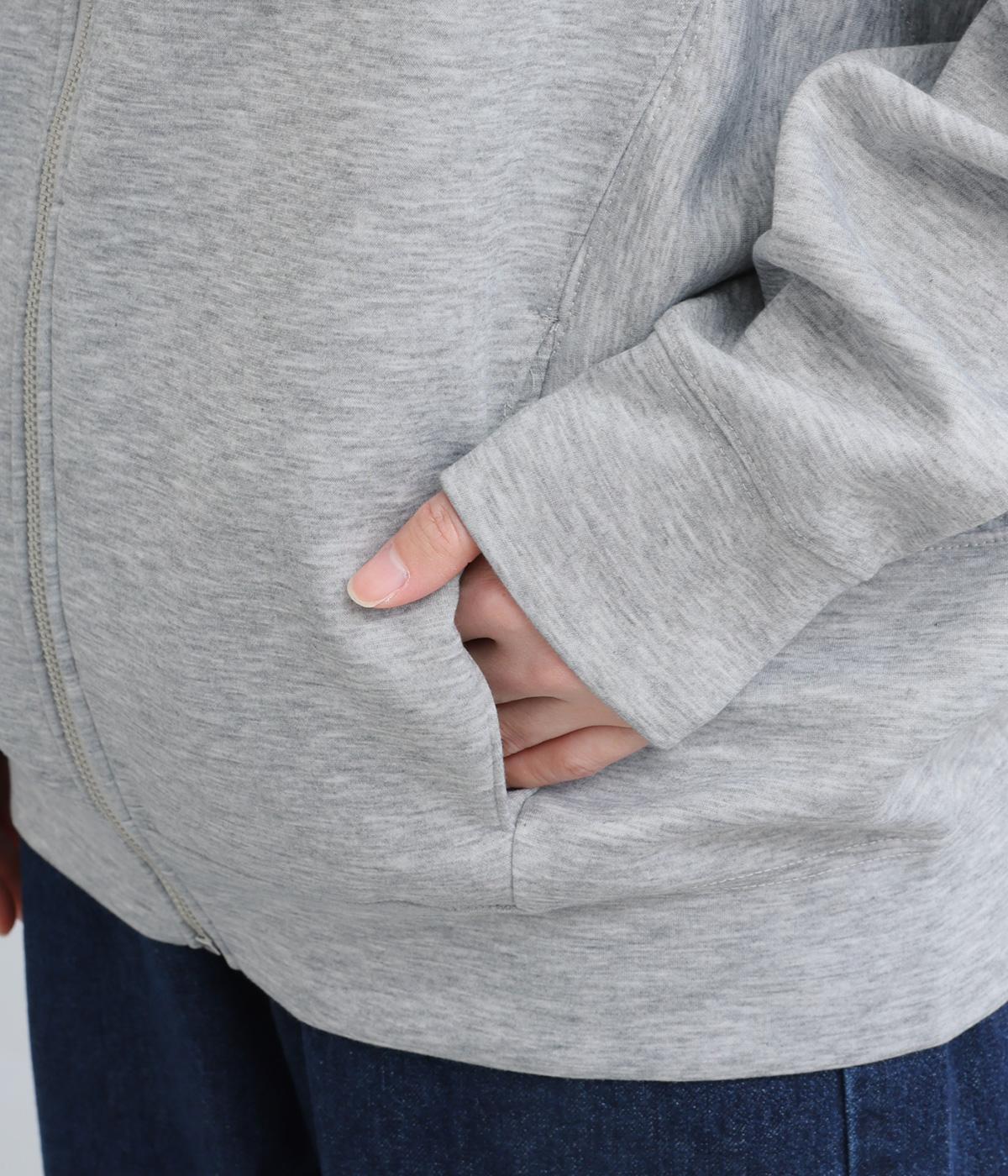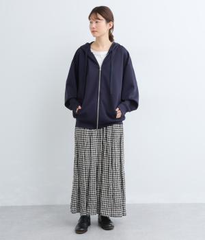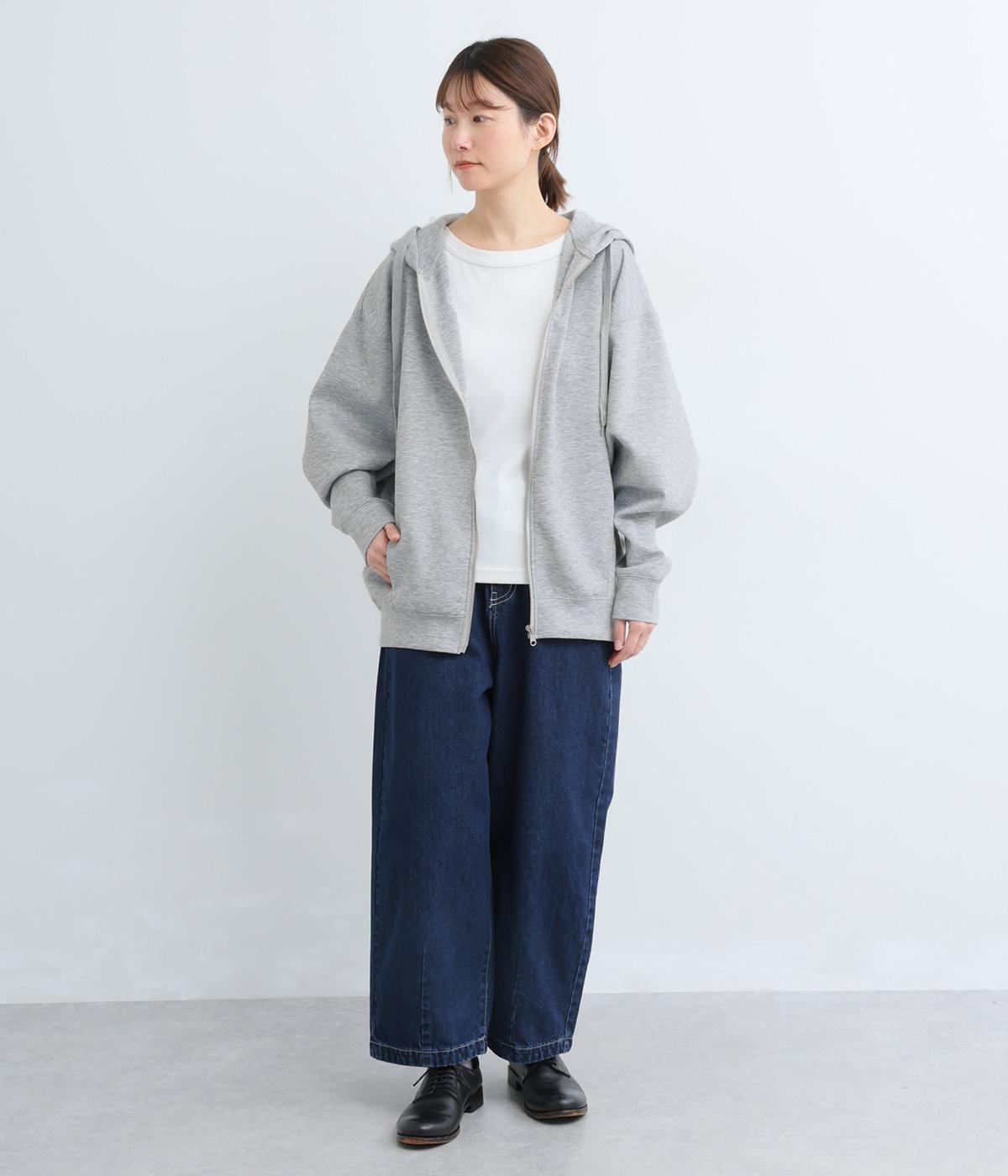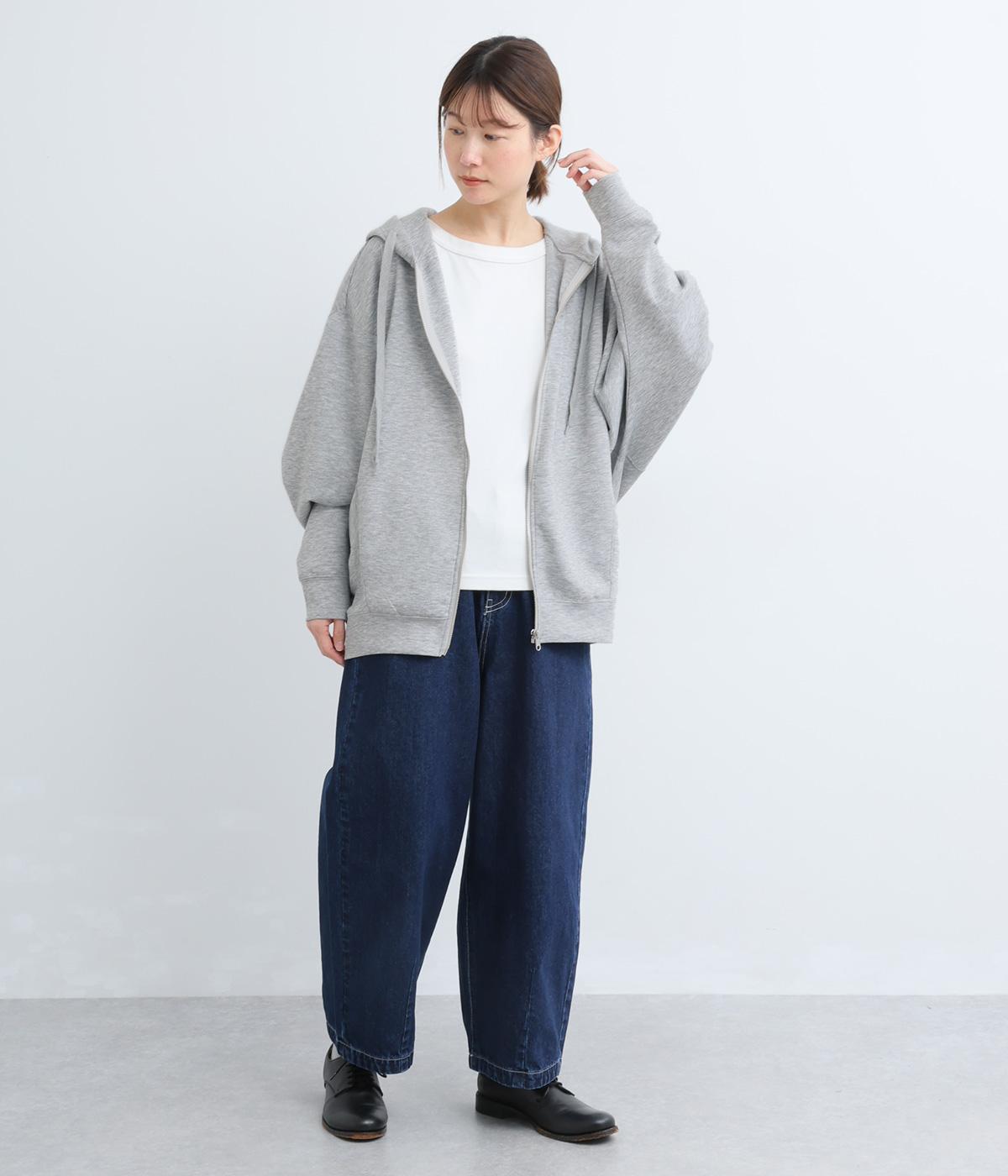 定番の前開きパーカーをドルマンスリーブで仕立てました。腕を動かすたびに華やかなシルエットを描き、女性らしい雰囲気を引き立てます。さりげないアクセントが効いた、大人カジュアルスタイルにぴったりな一枚です。