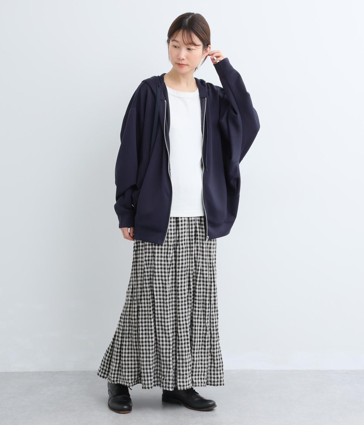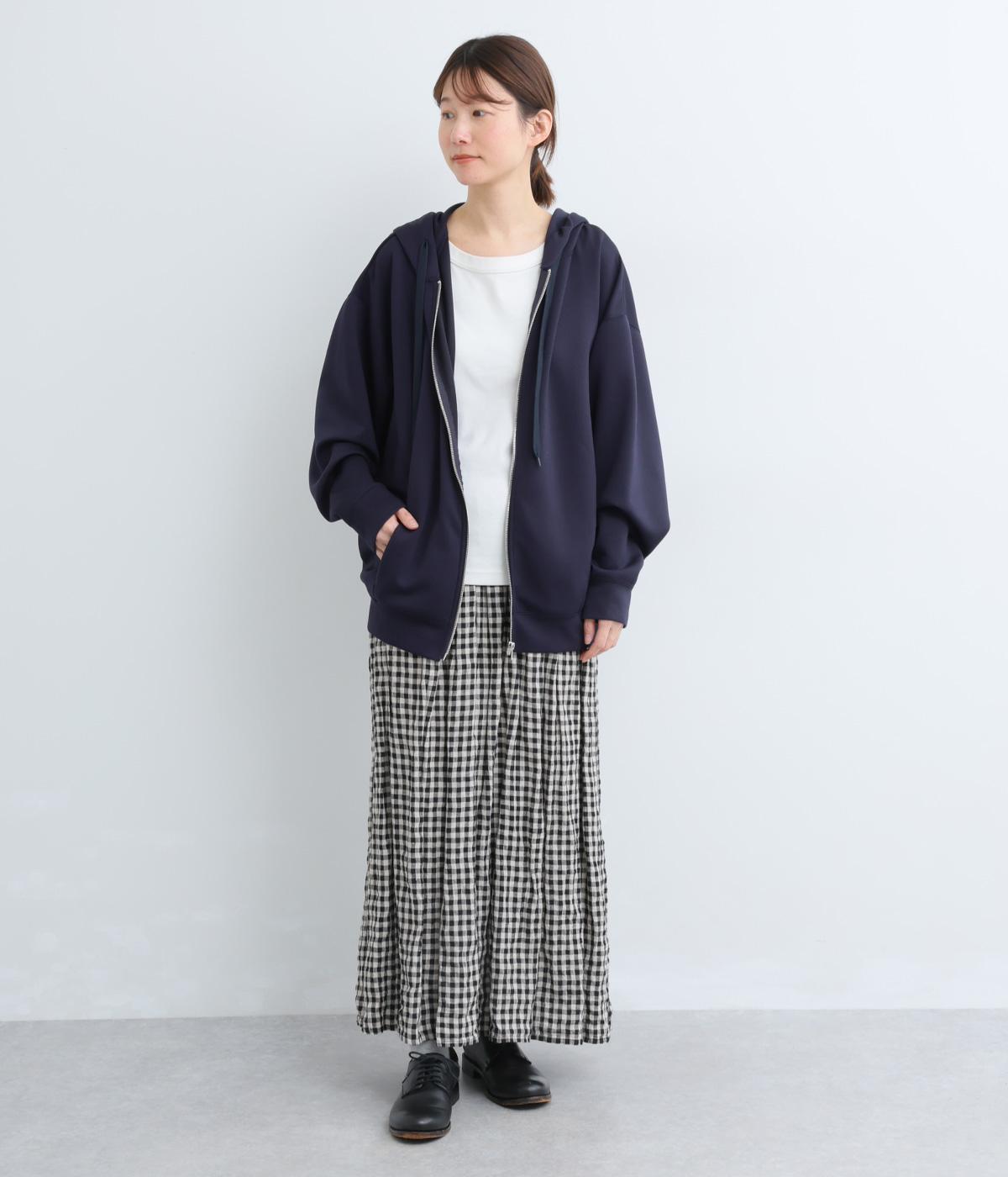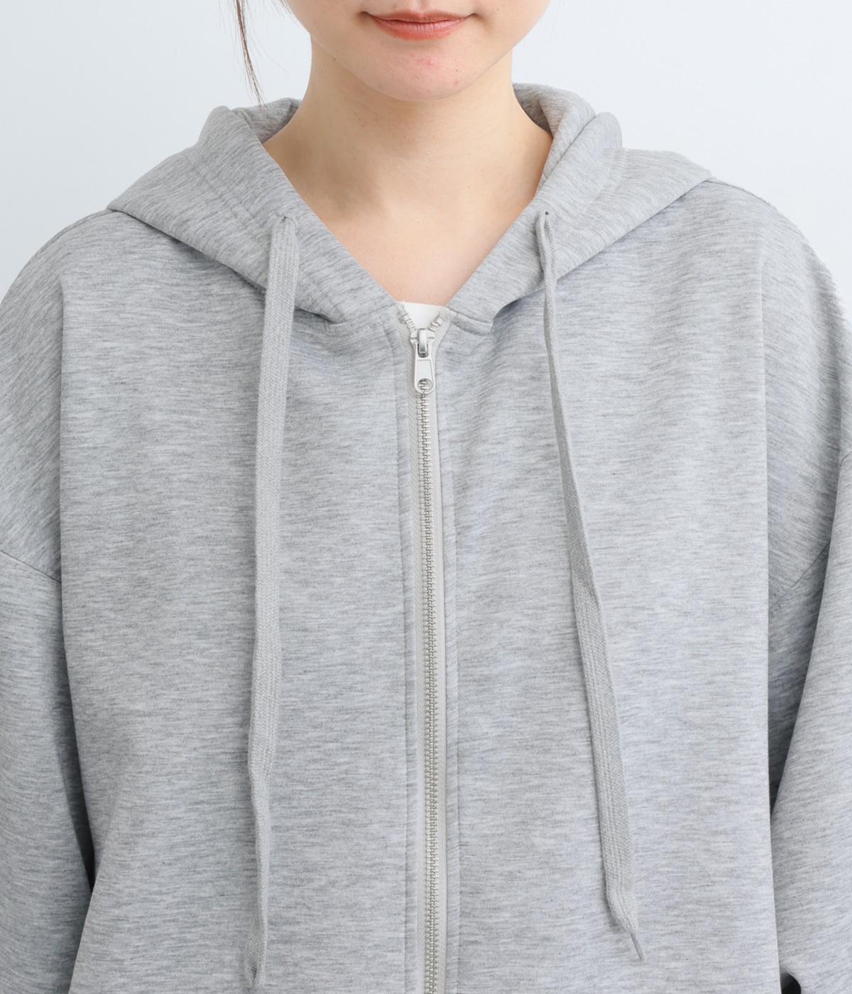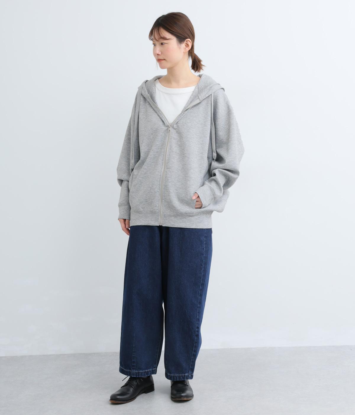 定番の前開きパーカーをドルマンスリーブで仕立てました。腕を動かすたびに華やかなシルエットを描き、女性らしい雰囲気を引き立てます。さりげないアクセントが効いた、大人カジュアルスタイルにぴったりな一枚です。