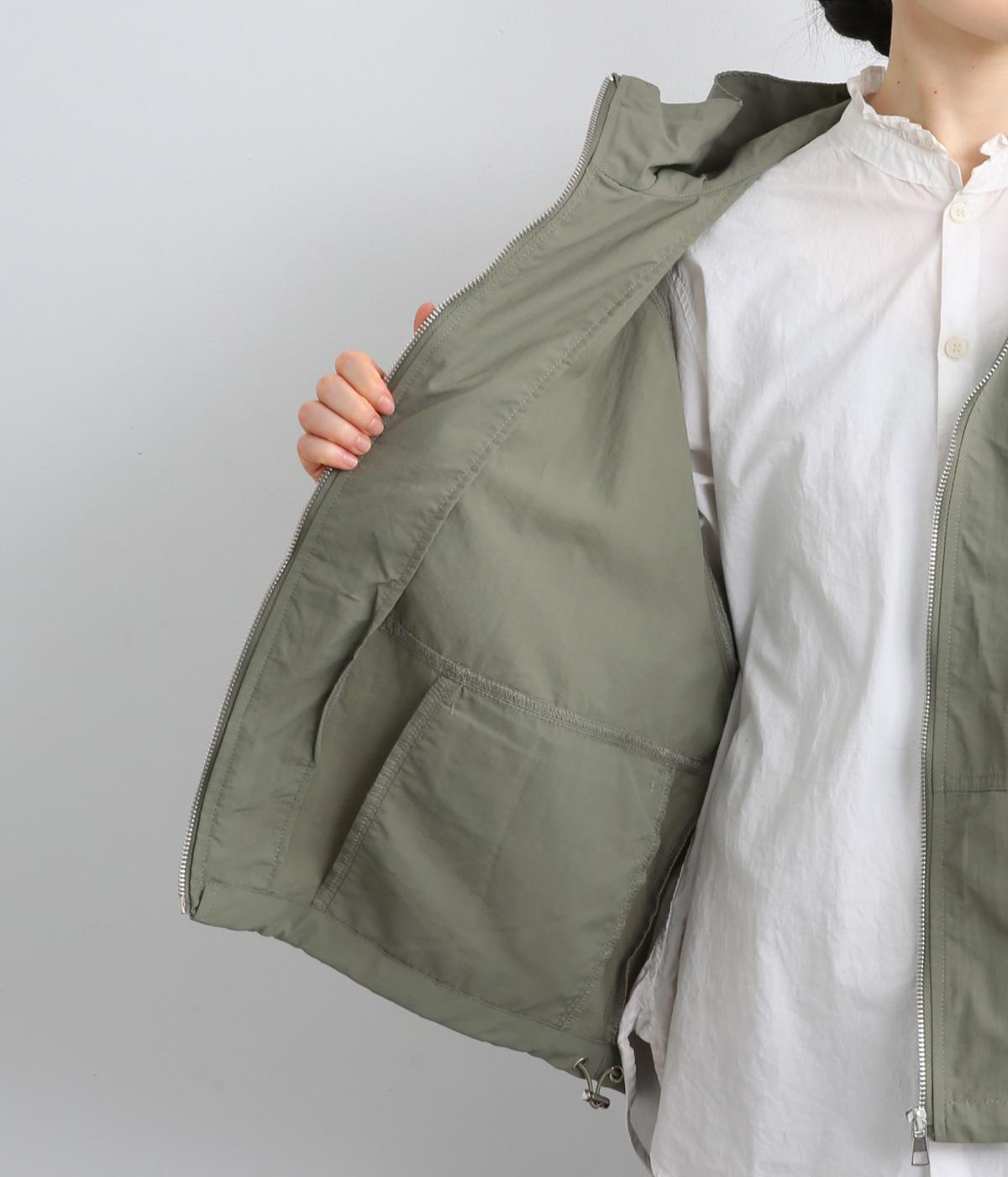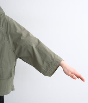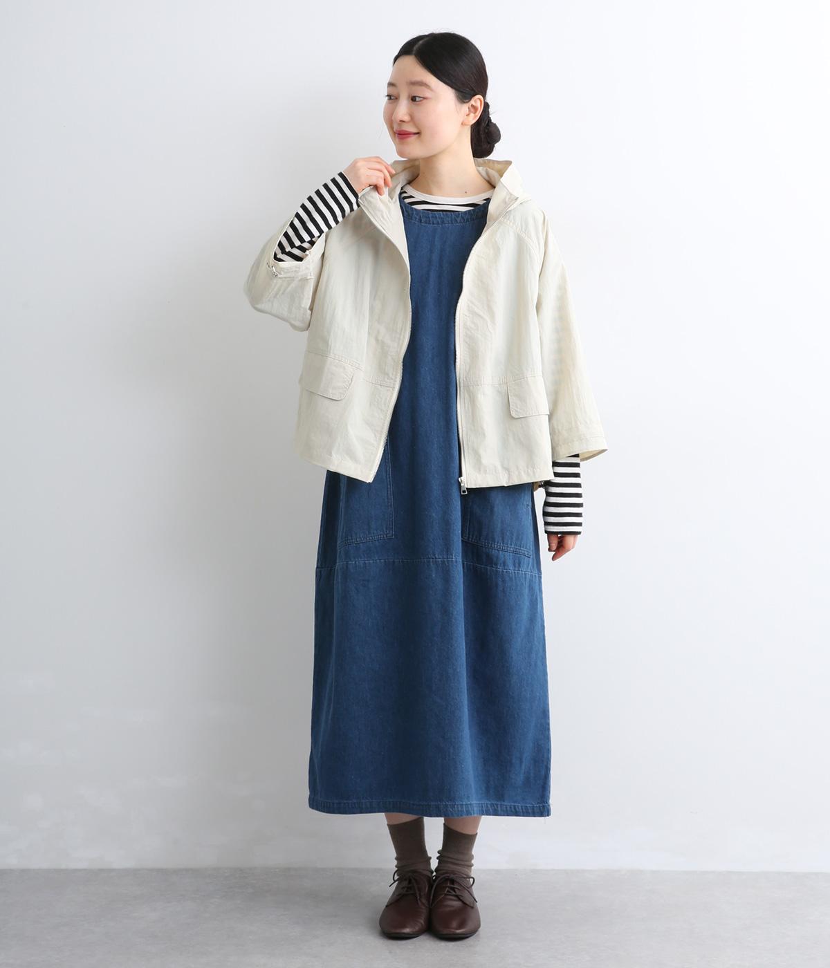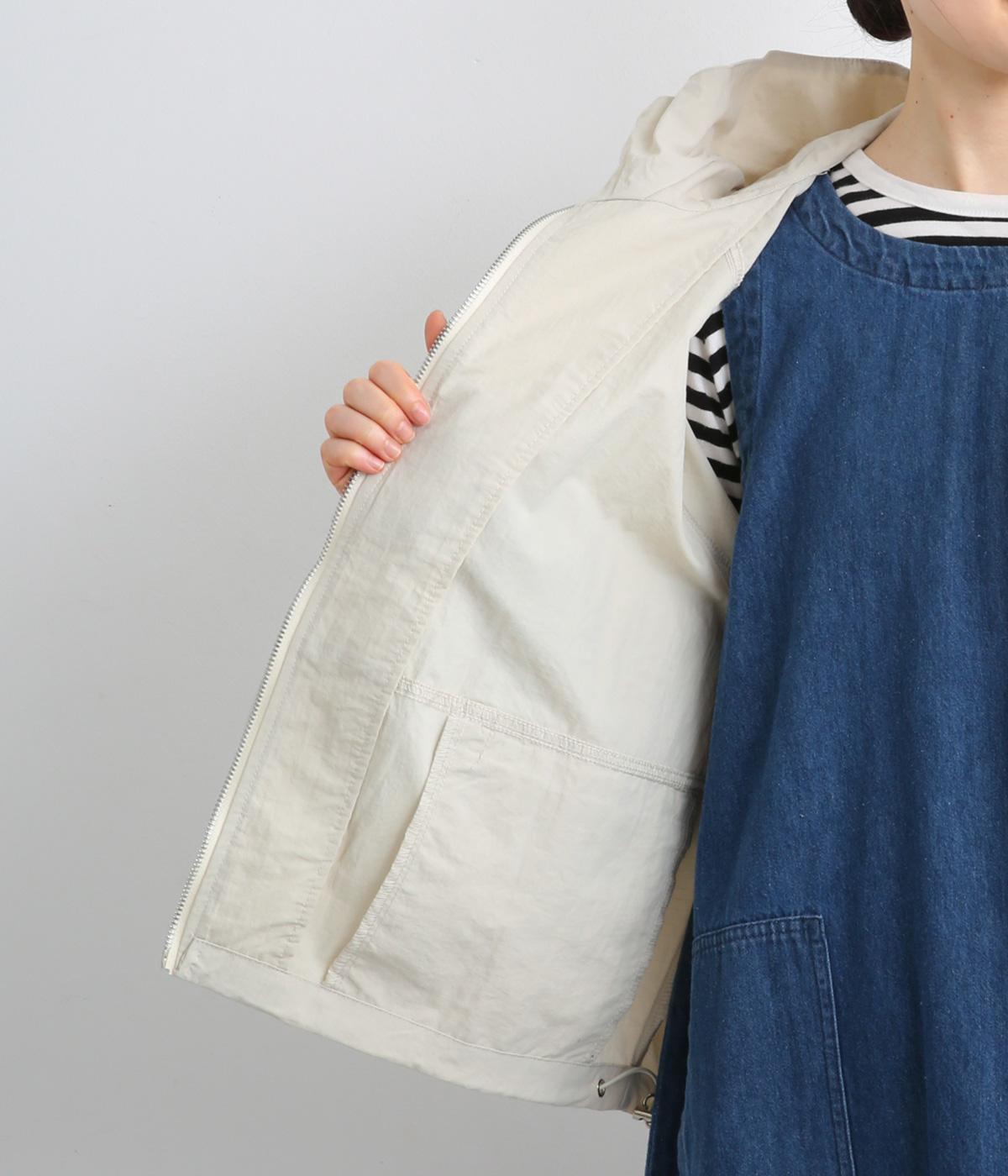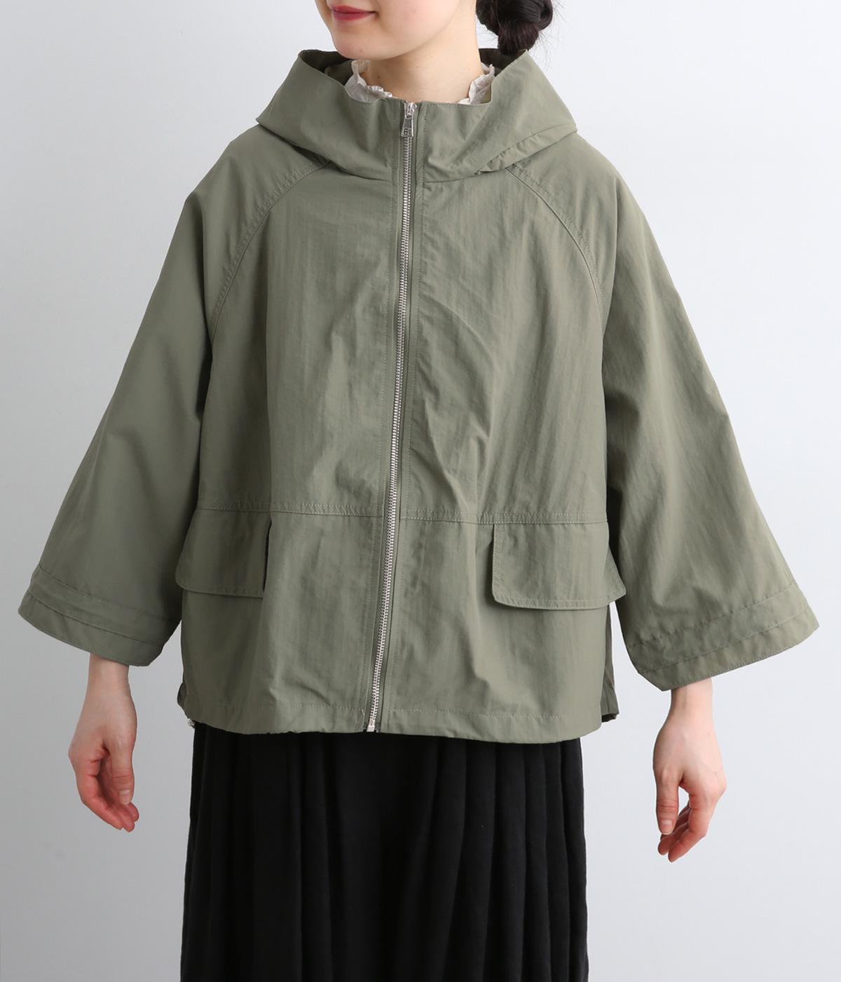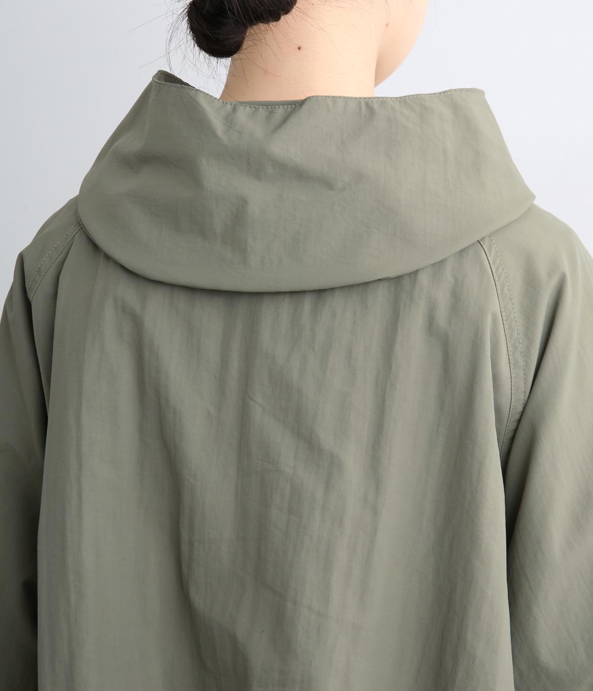タフな印象の素材を用いながらも、ラグラン袖や丸みをつけられるアジャスターコードで女性らしさを感じるパーカーに。ハイネックのフードは防寒やアイキャッチにも。ショート丈でバランスよくまとめました。