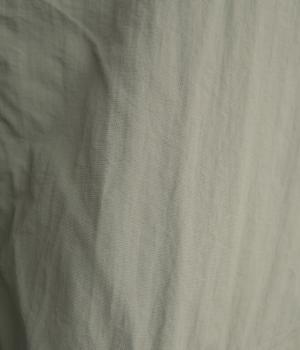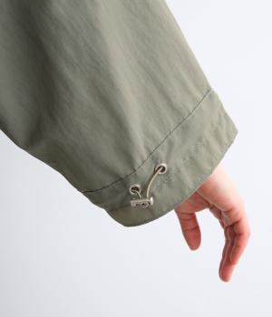 シャカシャカとした軽やかさと耐久性の高さが魅力のナイロン生地を使用。自然なシワ感やマットな質感が特徴で、軽量仕上げでアクティブシーンにも活躍。