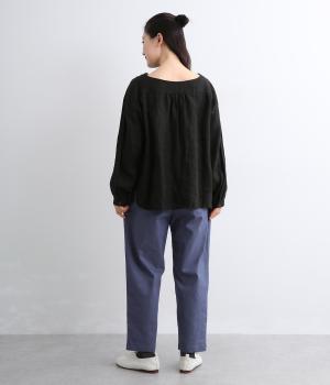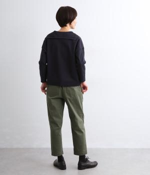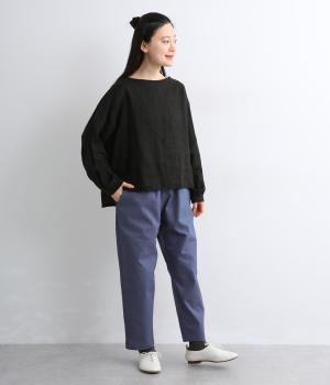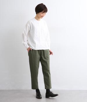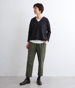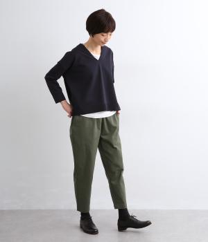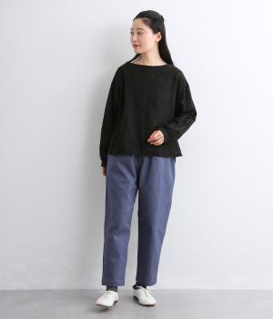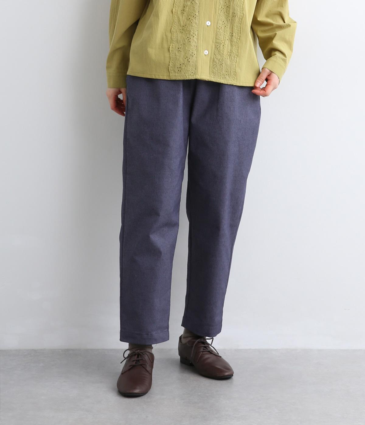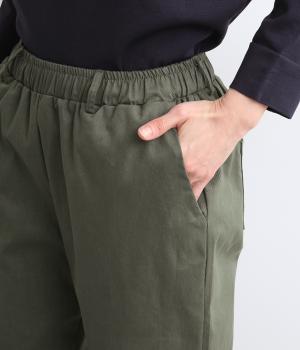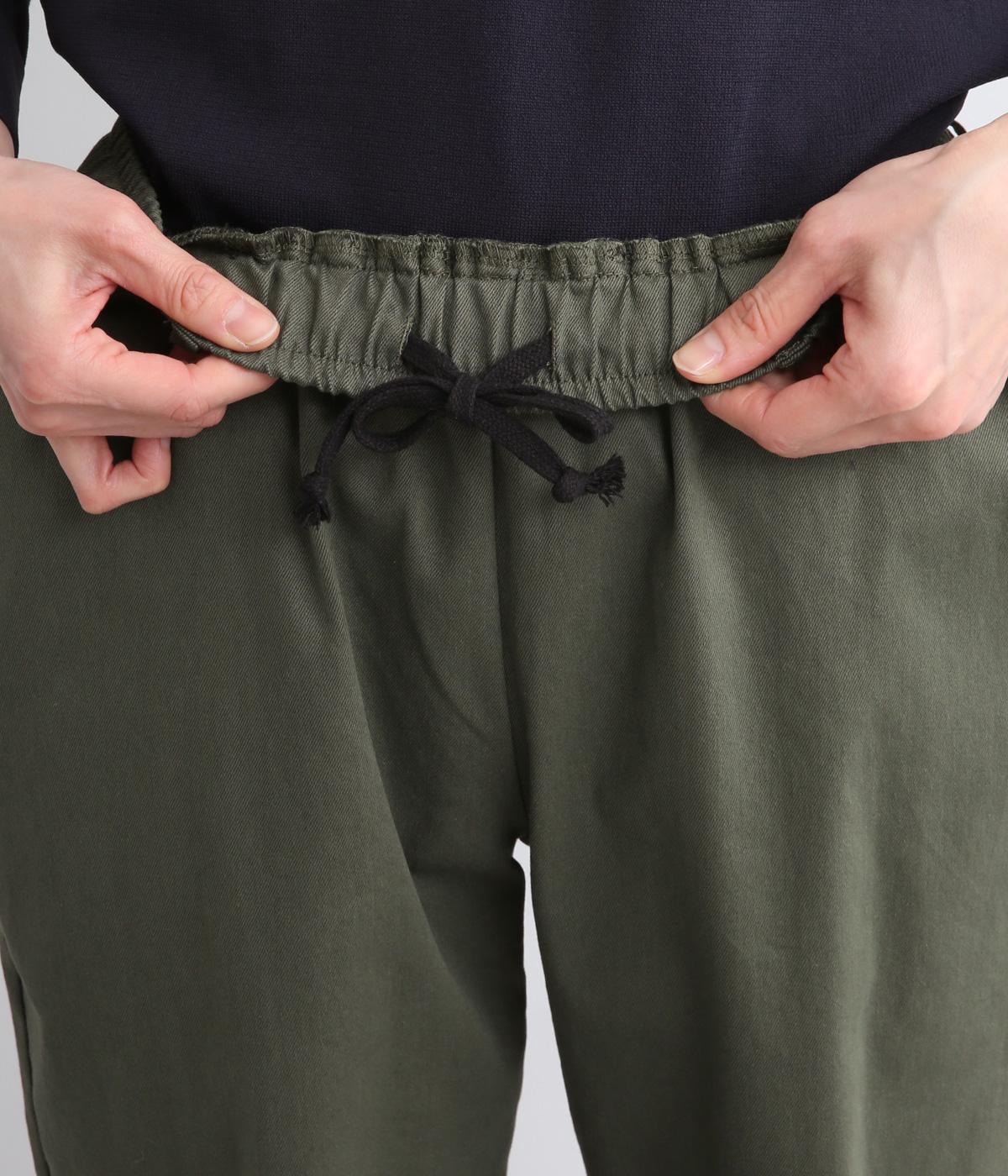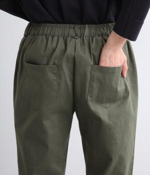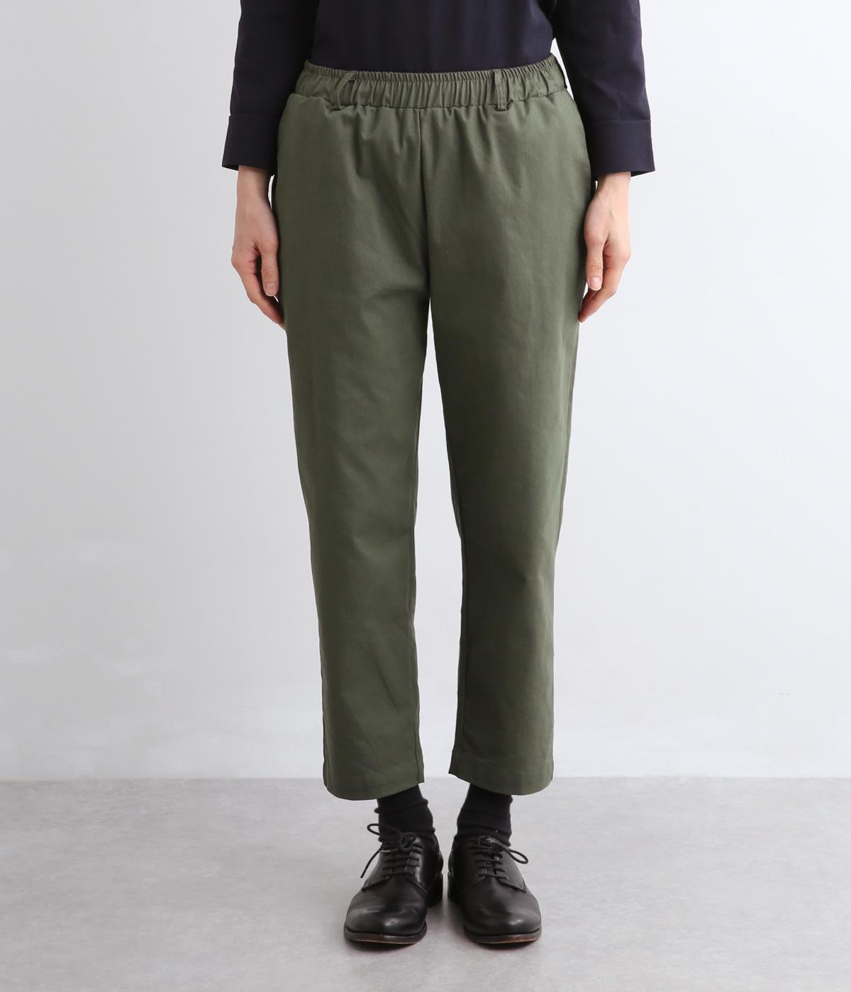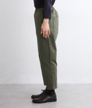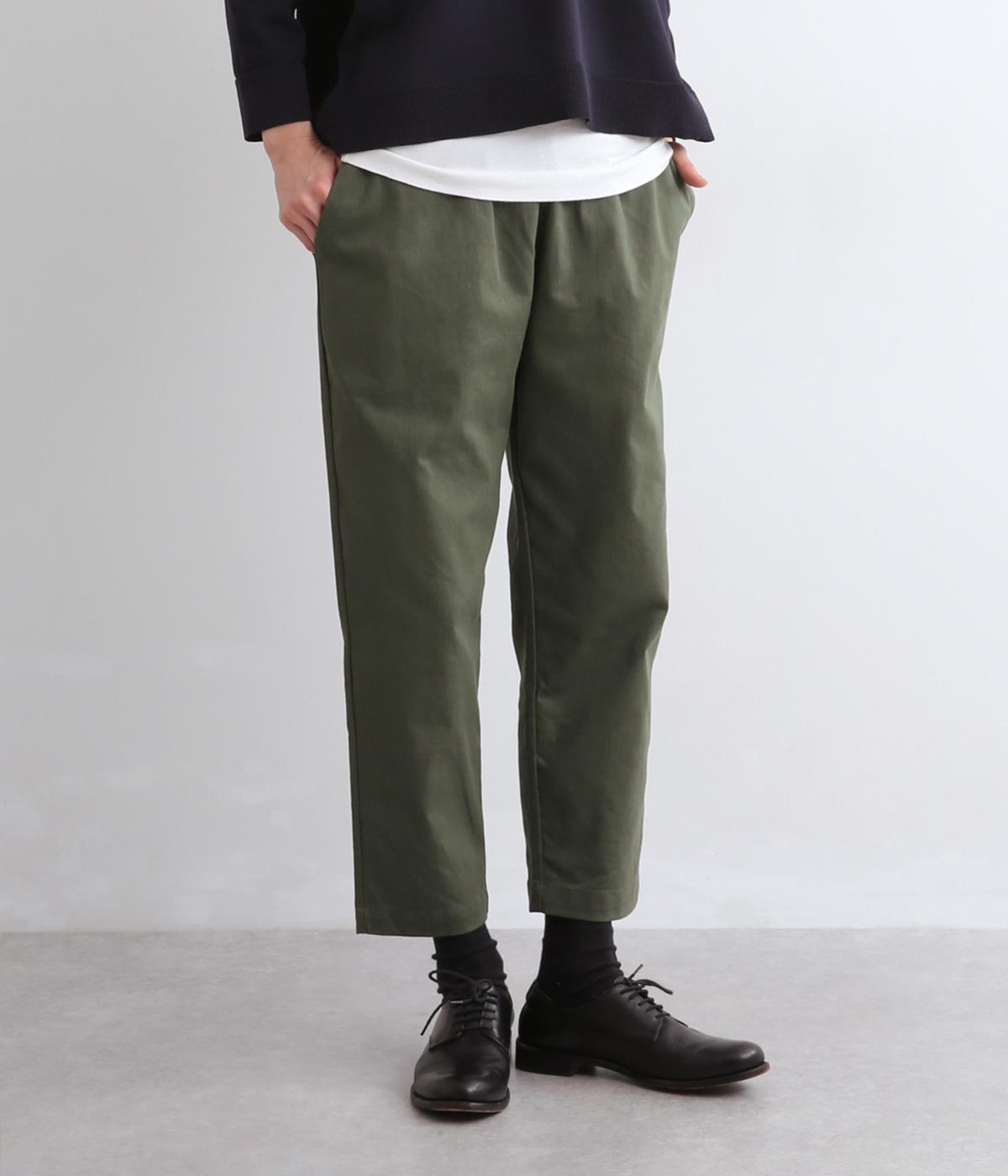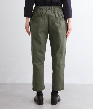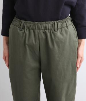 腰まわりは適度にゆとりを持たせ、裾に向かってすっきり仕立てたテーパードパンツ。シューズ合わせがたのしめる丈感でワンピースなどとレイヤードするのもおすすめ。ウエスト総ゴム&内紐つきのイージー仕様。