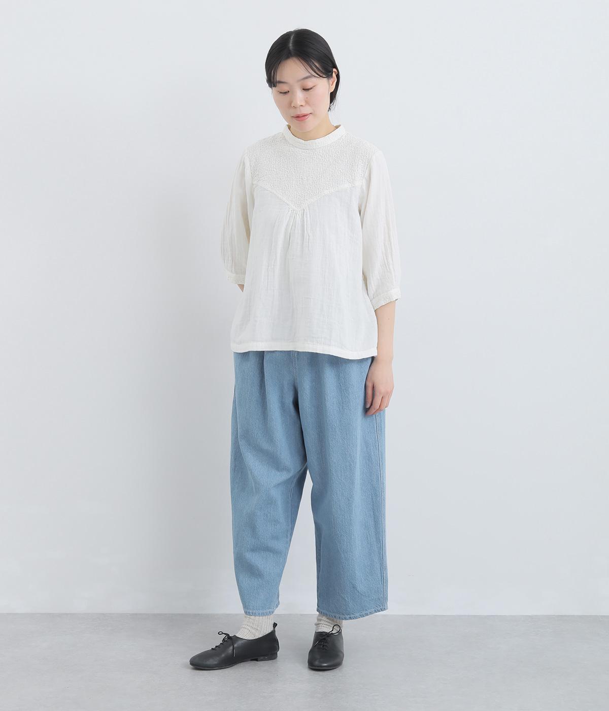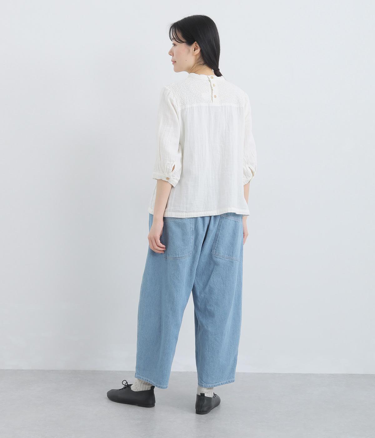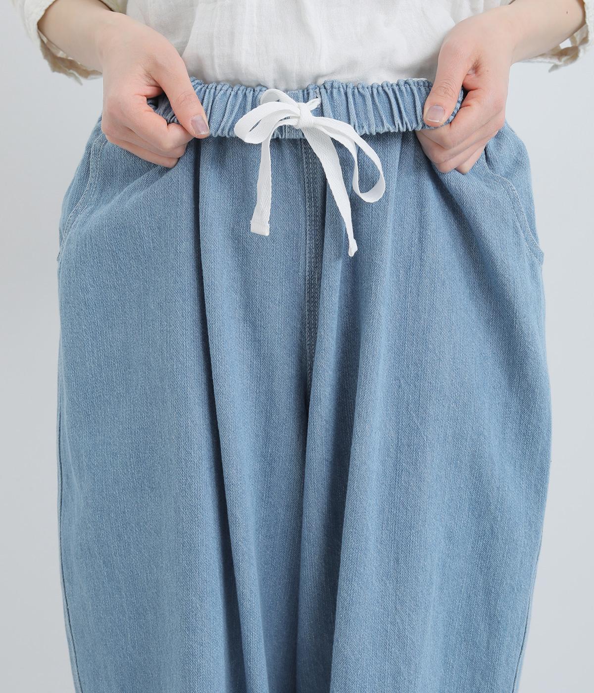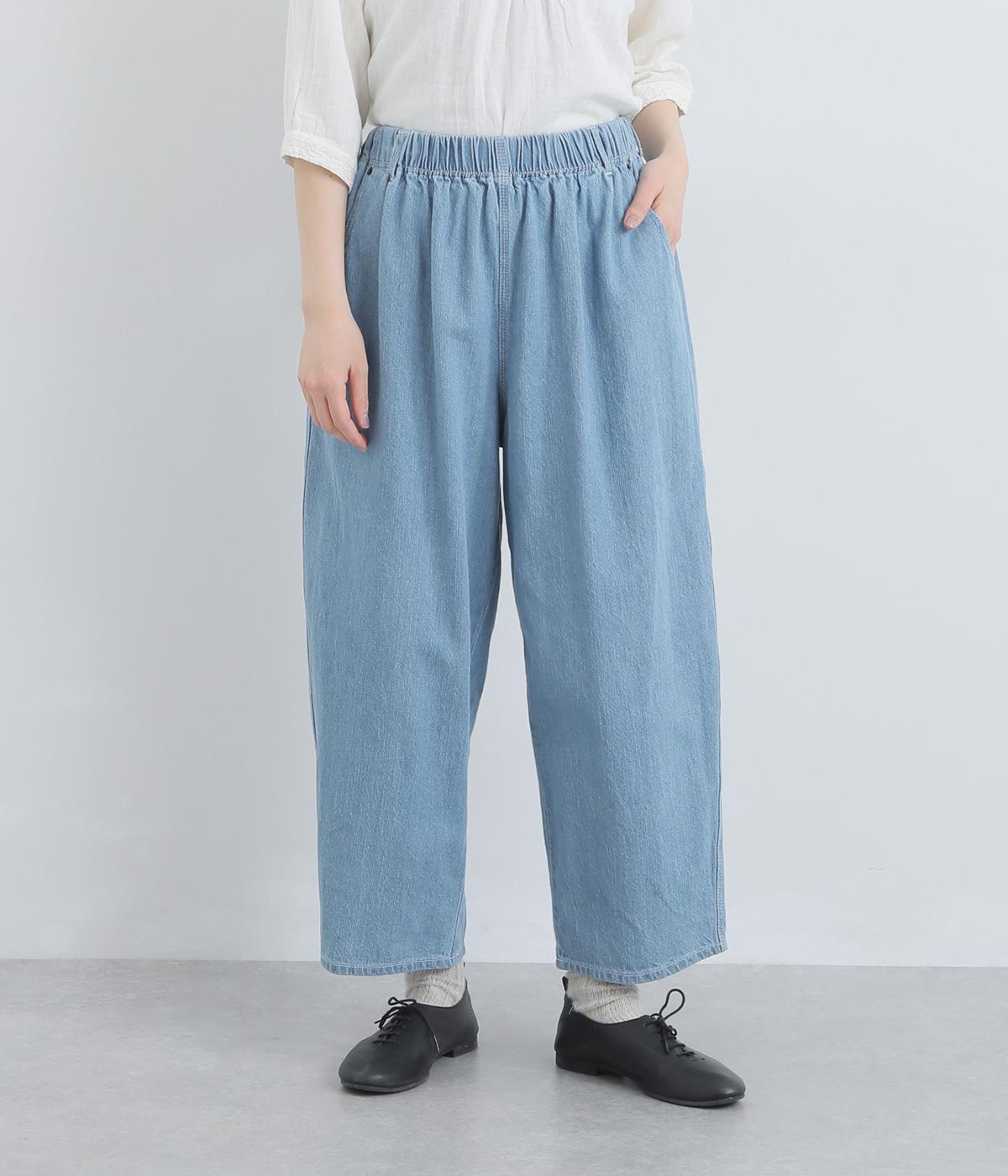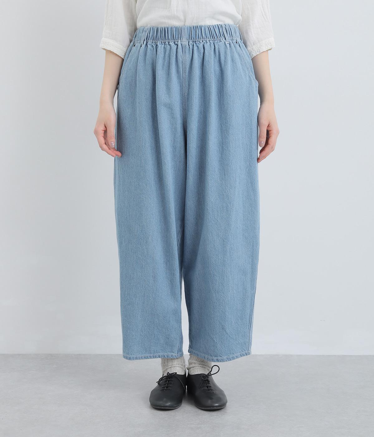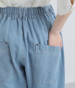 ふっくらとしたシルエットが愛らしいデニムパンツ。アンクルがのぞく丈感で重たくなりすぎずスタイリングしやすい仕上がり。あえて下げた大きめヒップポケットがリラックスムードを演出。ウエストはフィット感のある平ゴム&内紐入りです。