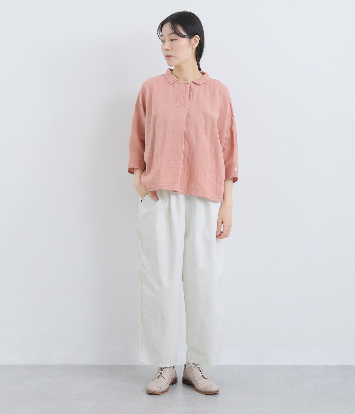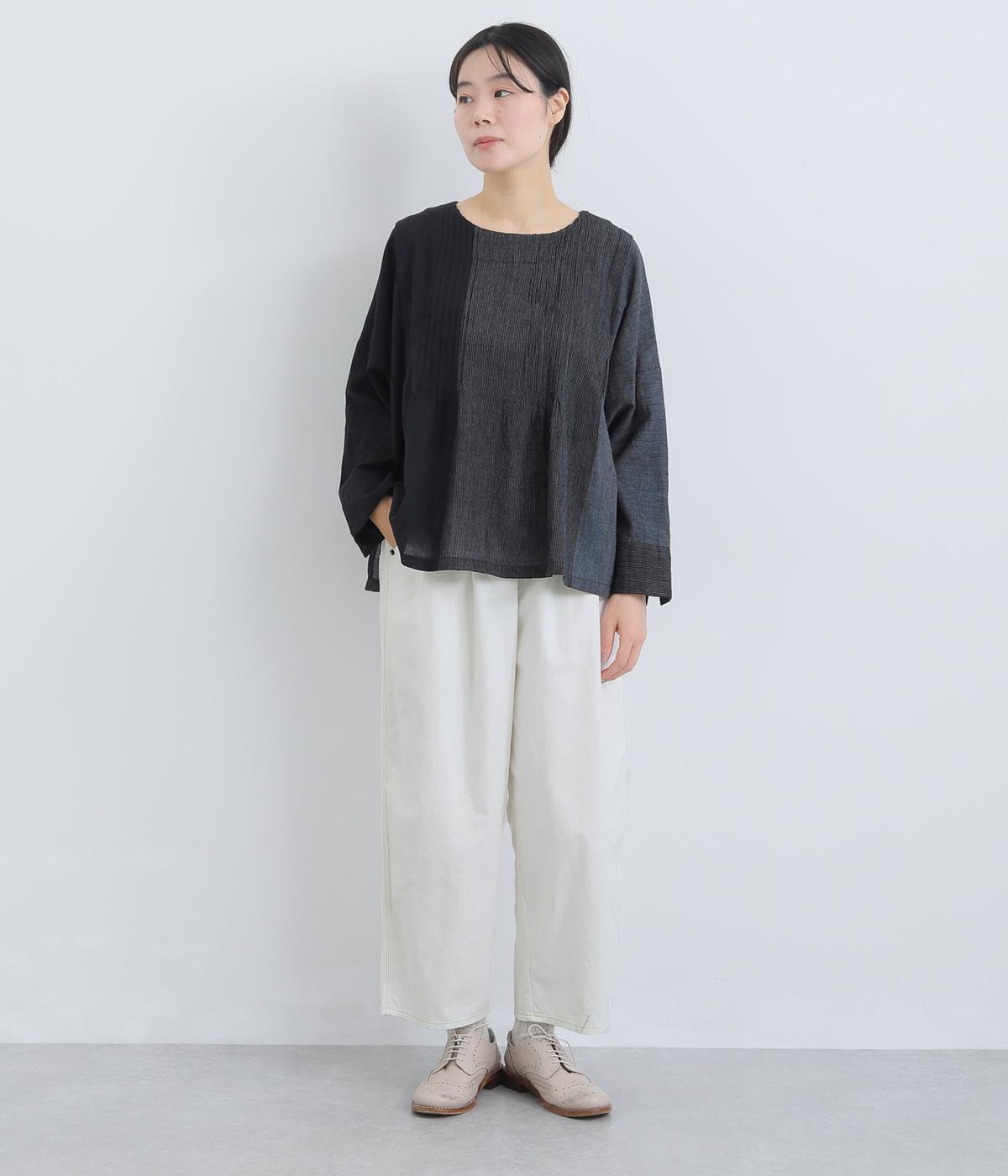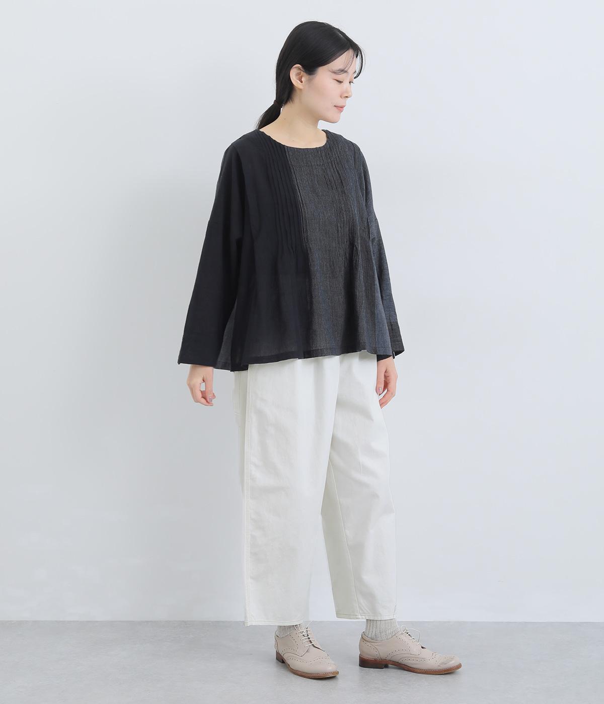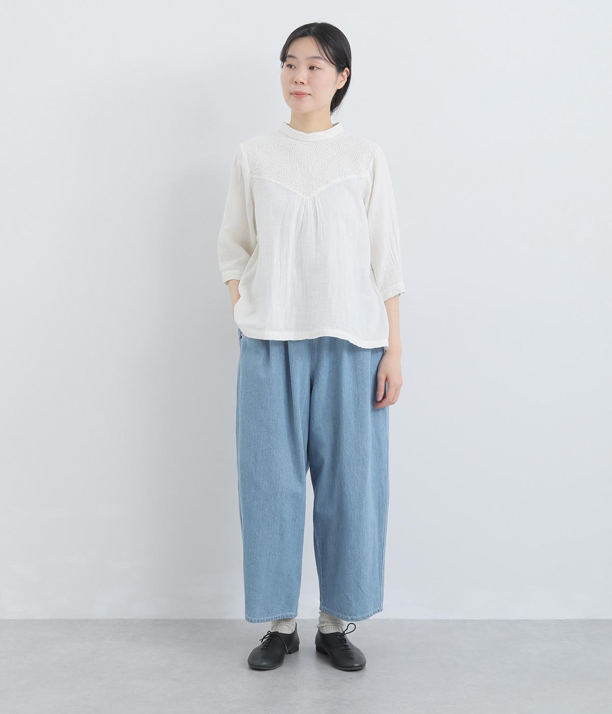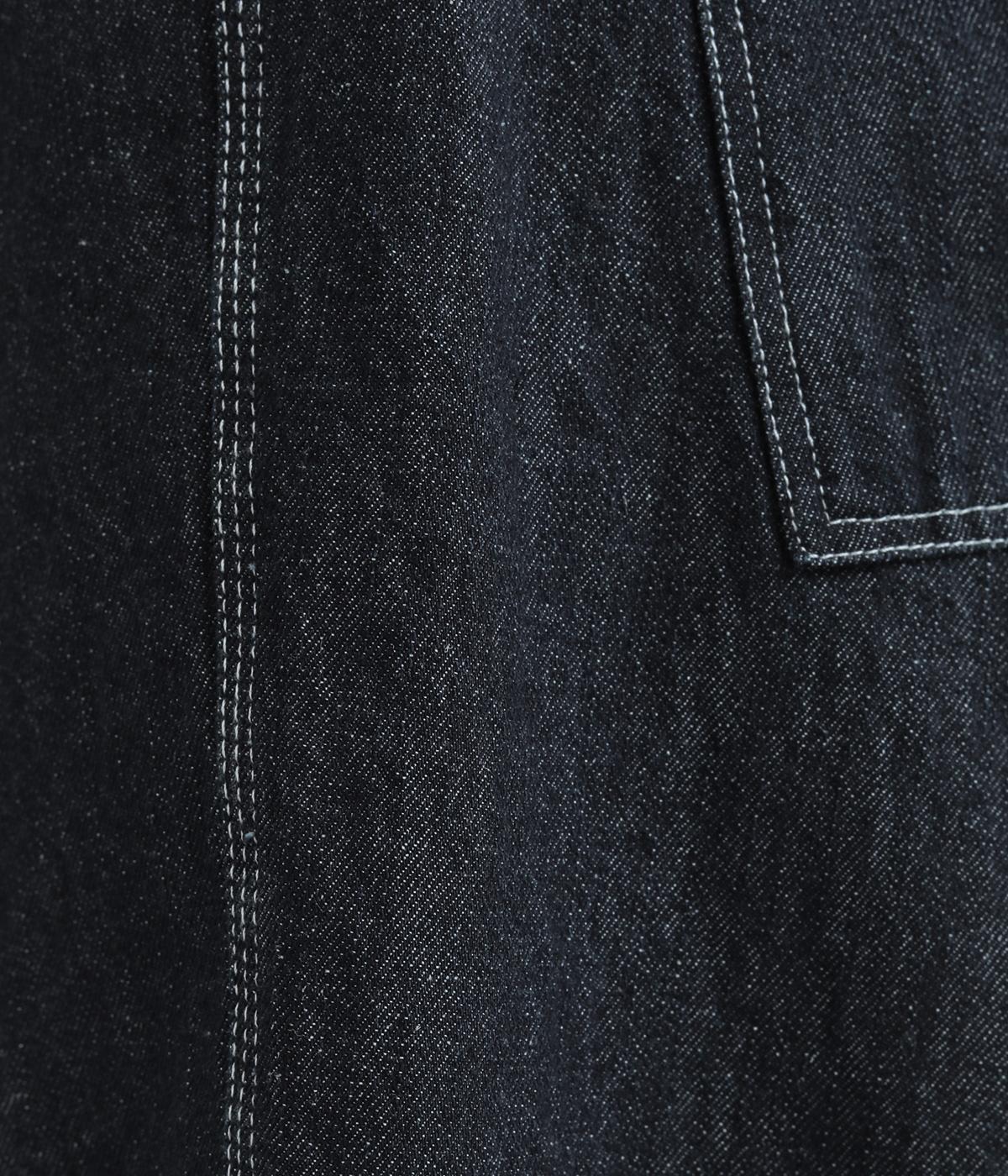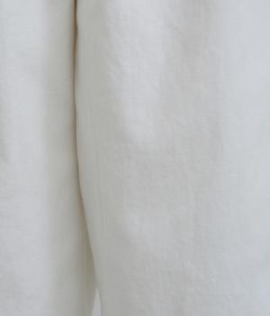 ナチュラルな風合いが心地よいコットンリネンデニムを使用。タフなコシ感を残しながらも着用初期からはきやすく、使い勝手のいい中厚手生地でロングシーズン活躍します。
