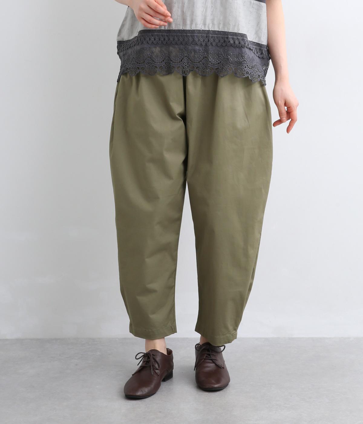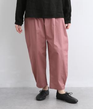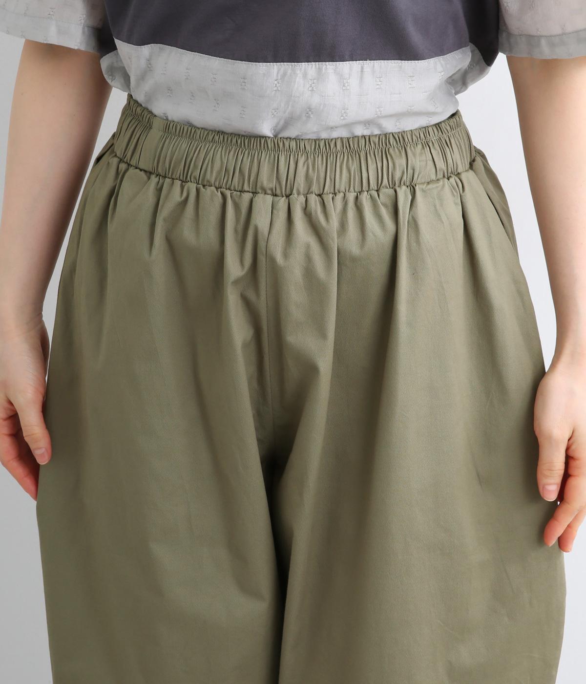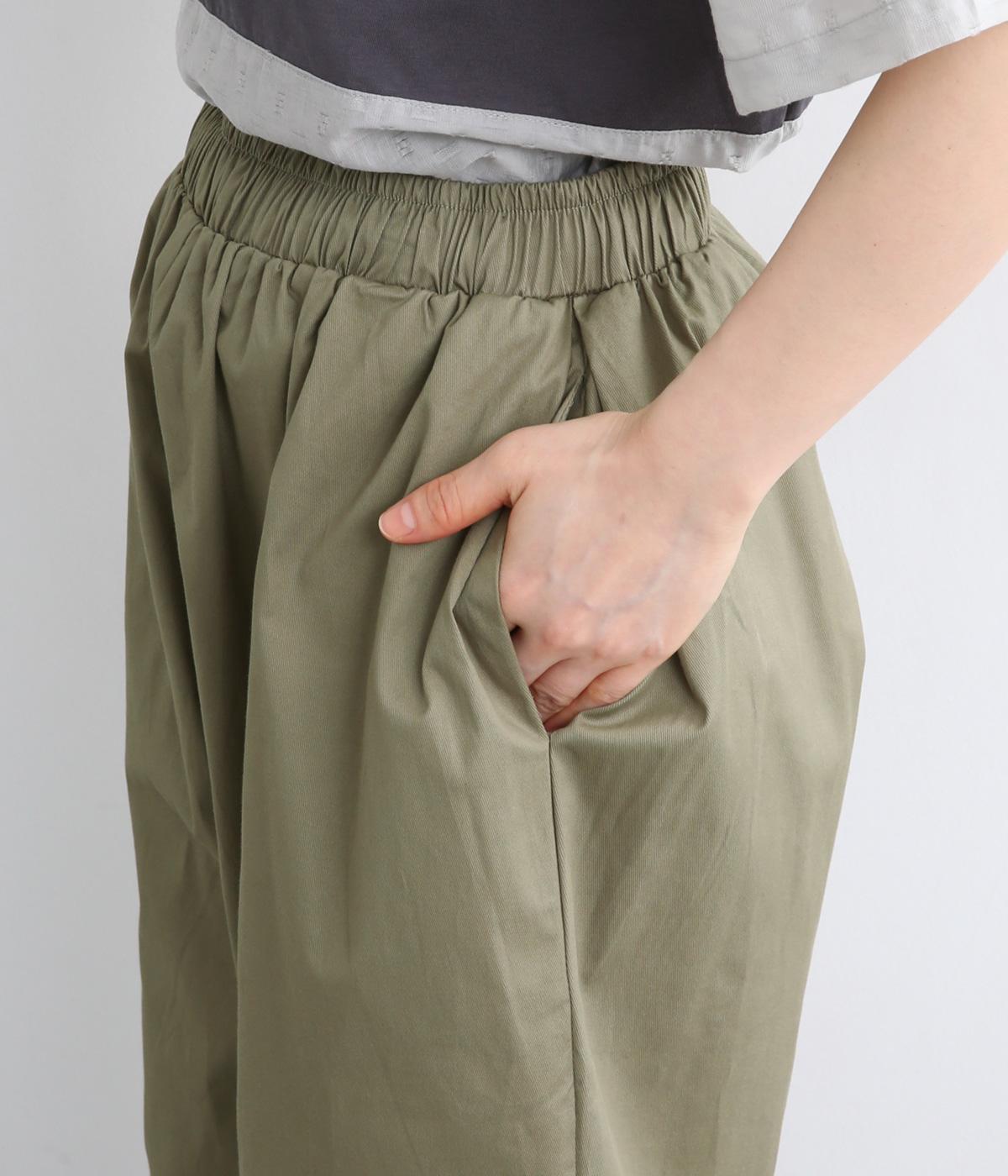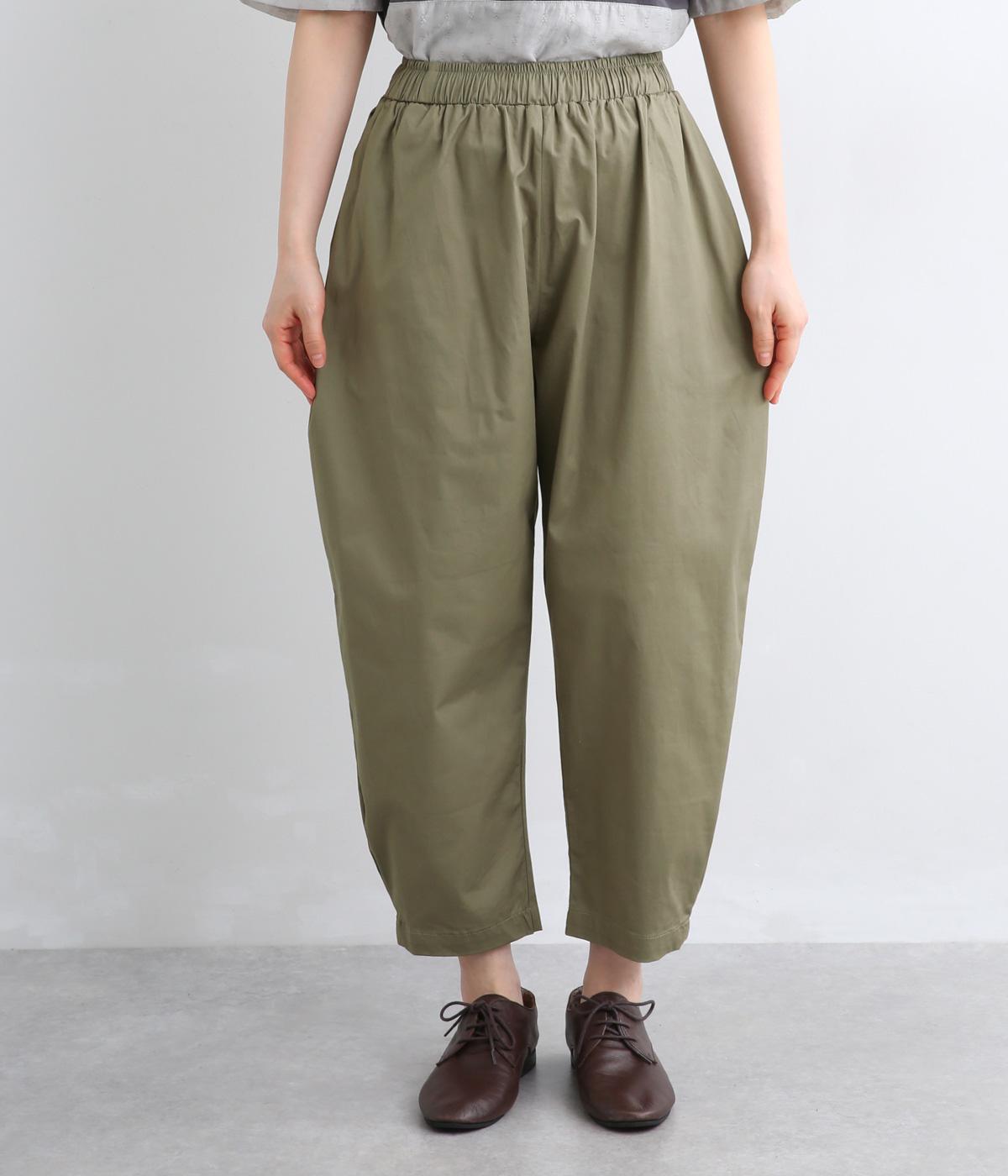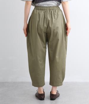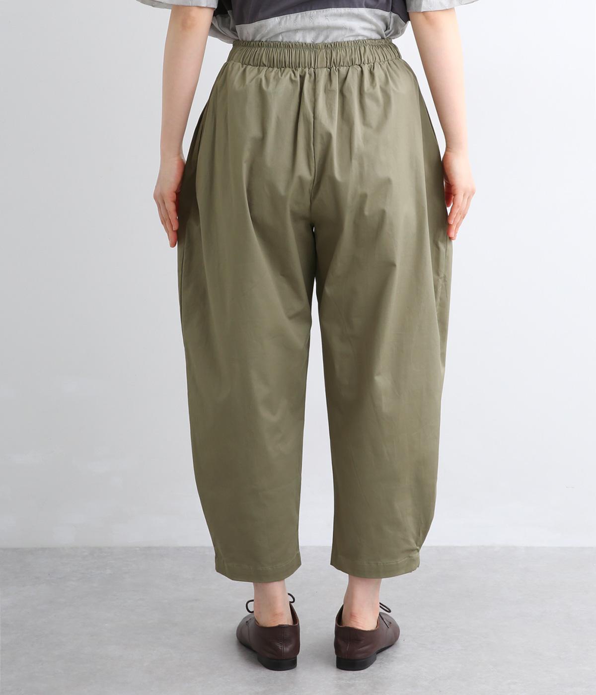 ウエストと裾のタックが立体的なフォルムを描くコクーンパンツ。やや短めの丈でバランスよく仕上げました。体のラインを拾いにくいのに、ゆるすぎない絶妙なシルエットに。ウエストは総ゴム仕様で、内紐でサイズ調節が可能です。