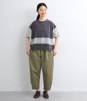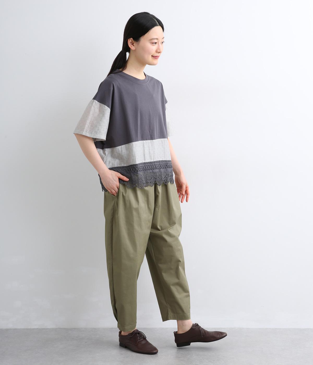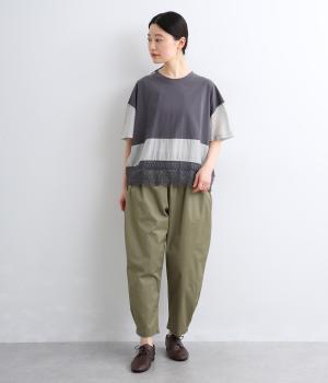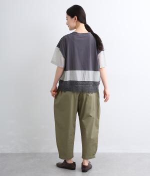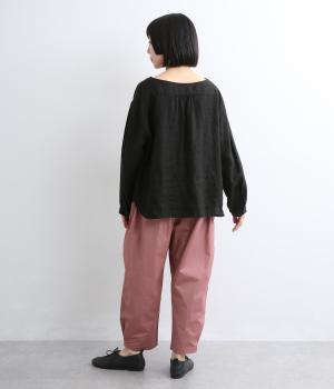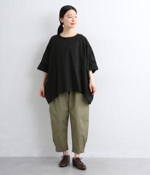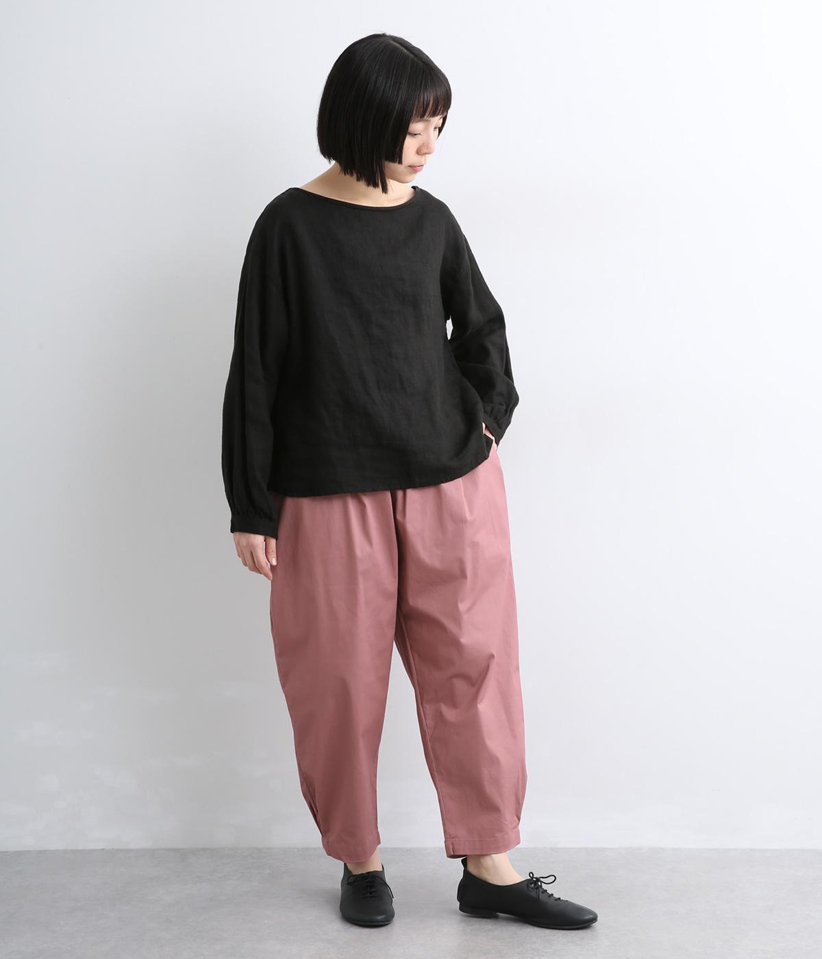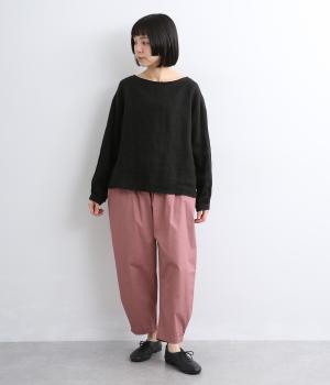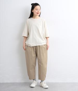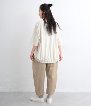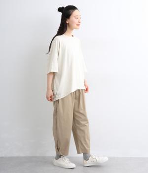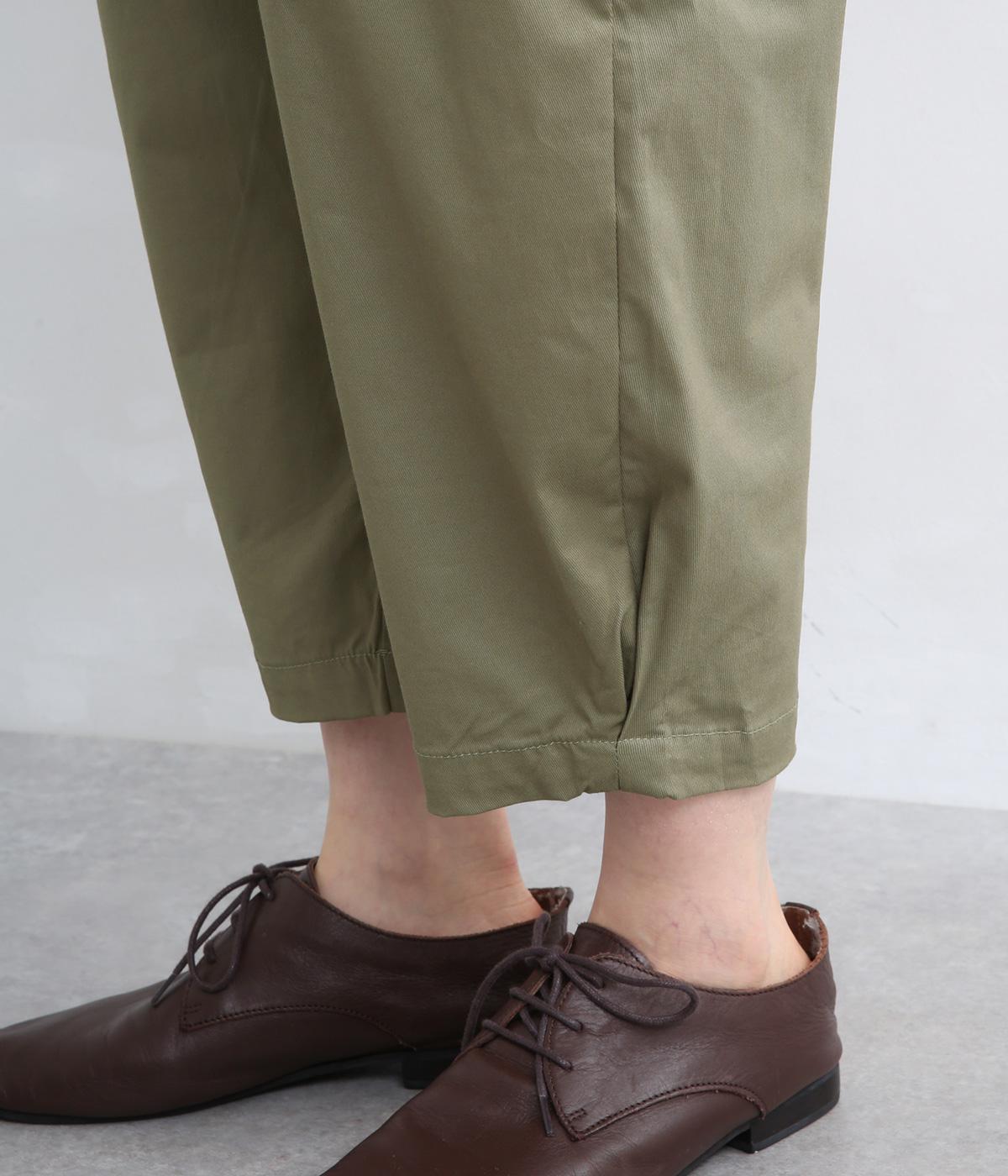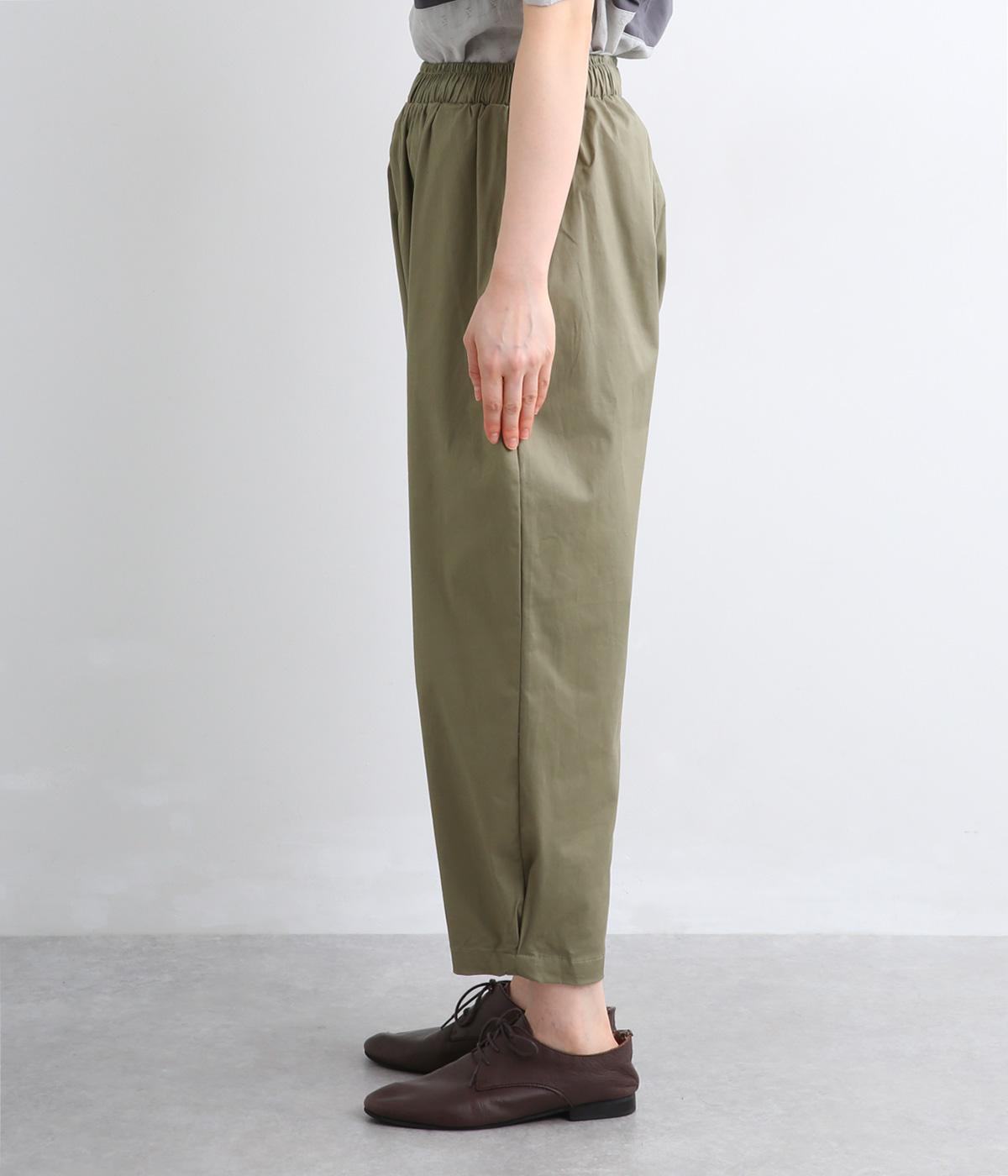 ウエストと裾のタックが立体的なフォルムを描くコクーンパンツ。やや短めの丈でバランスよく仕上げました。体のラインを拾いにくいのに、ゆるすぎない絶妙なシルエットに。ウエストは総ゴム仕様で、内紐でサイズ調節が可能です。