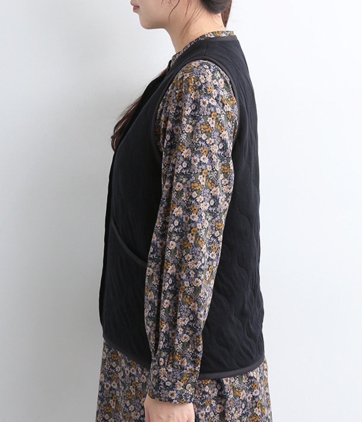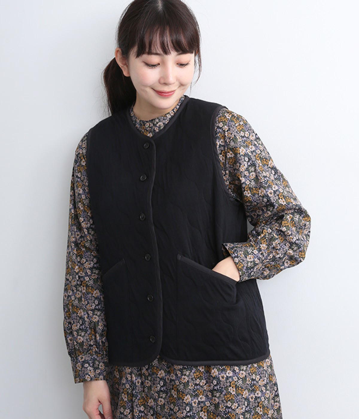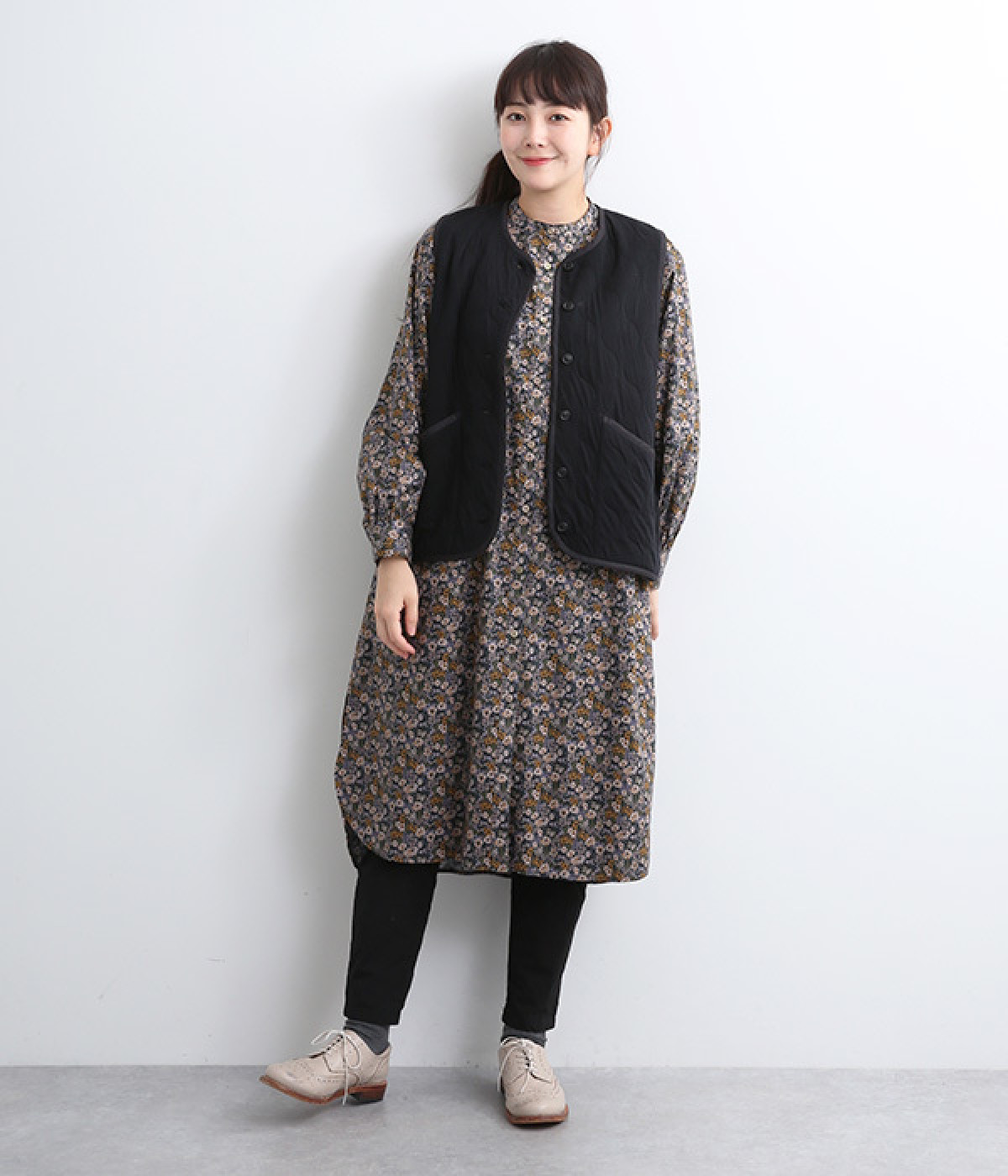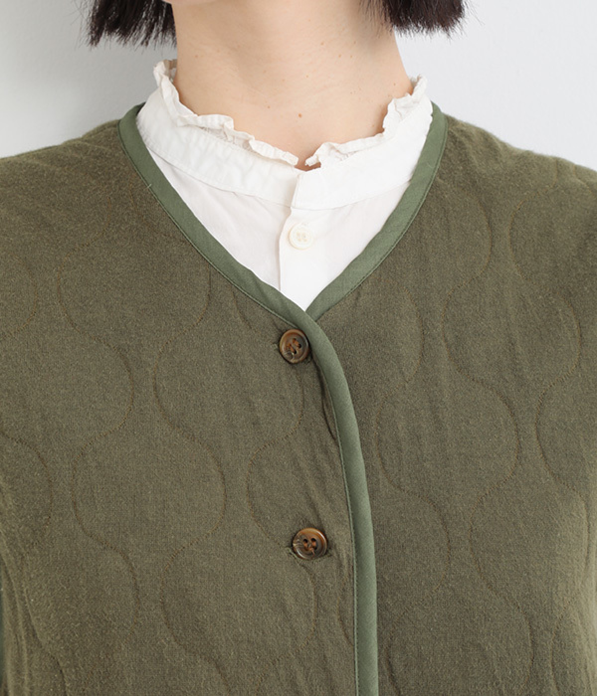 首元や裾の丸みが女性らしさを印象づけ
