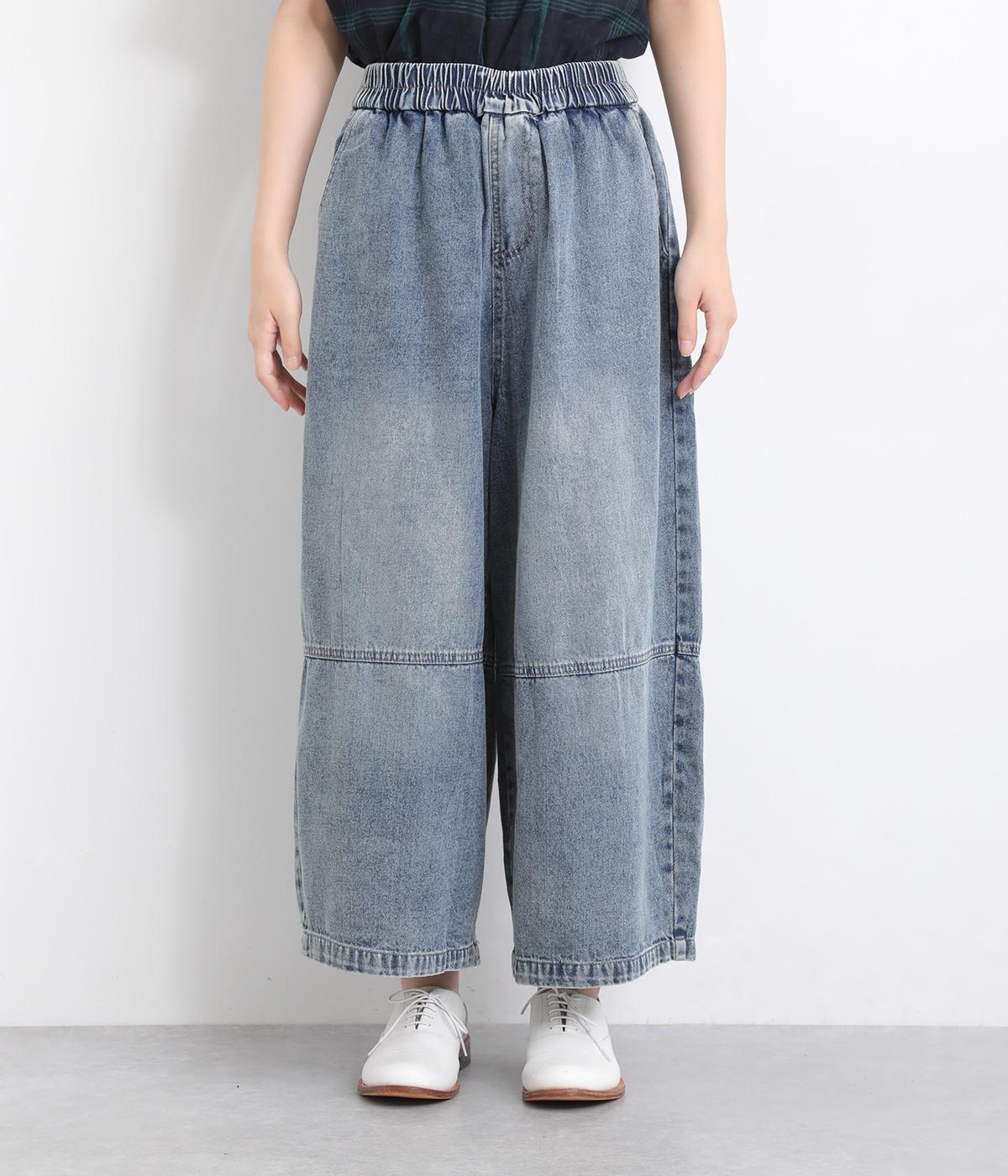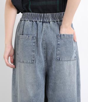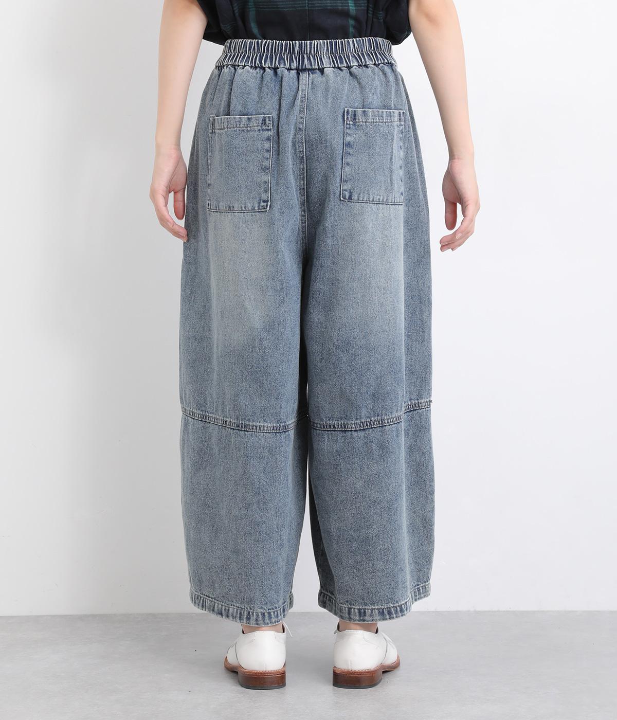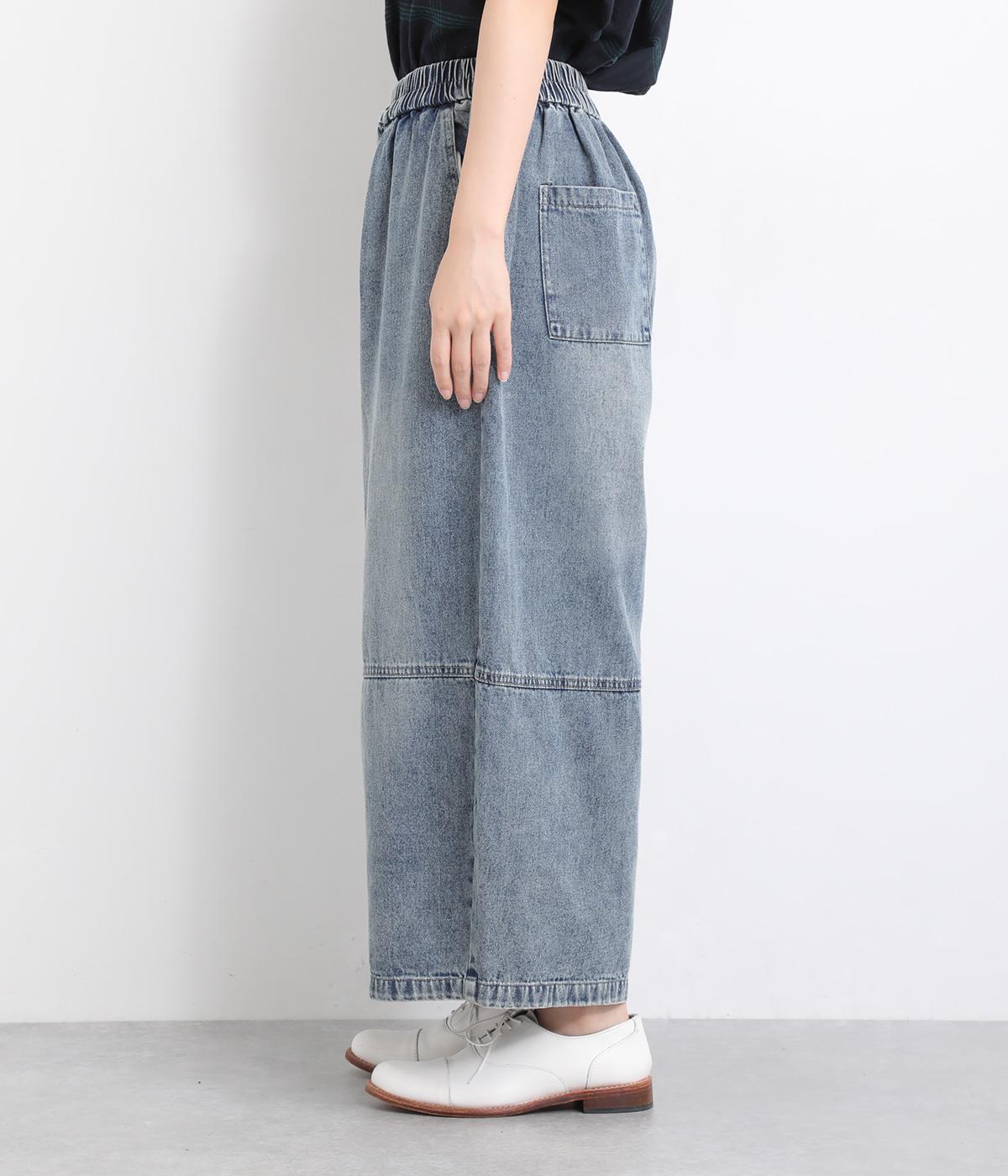 切り替えデザインとやや丸みのあるシルエットが特徴的なデニムパンツ。ウエストはオールゴムのリラックス仕様で、トップスをインしたレトロ感あるスタイリングも◎。シューズ合わせがたのしめるすっきりとした丈感にこだわりました。