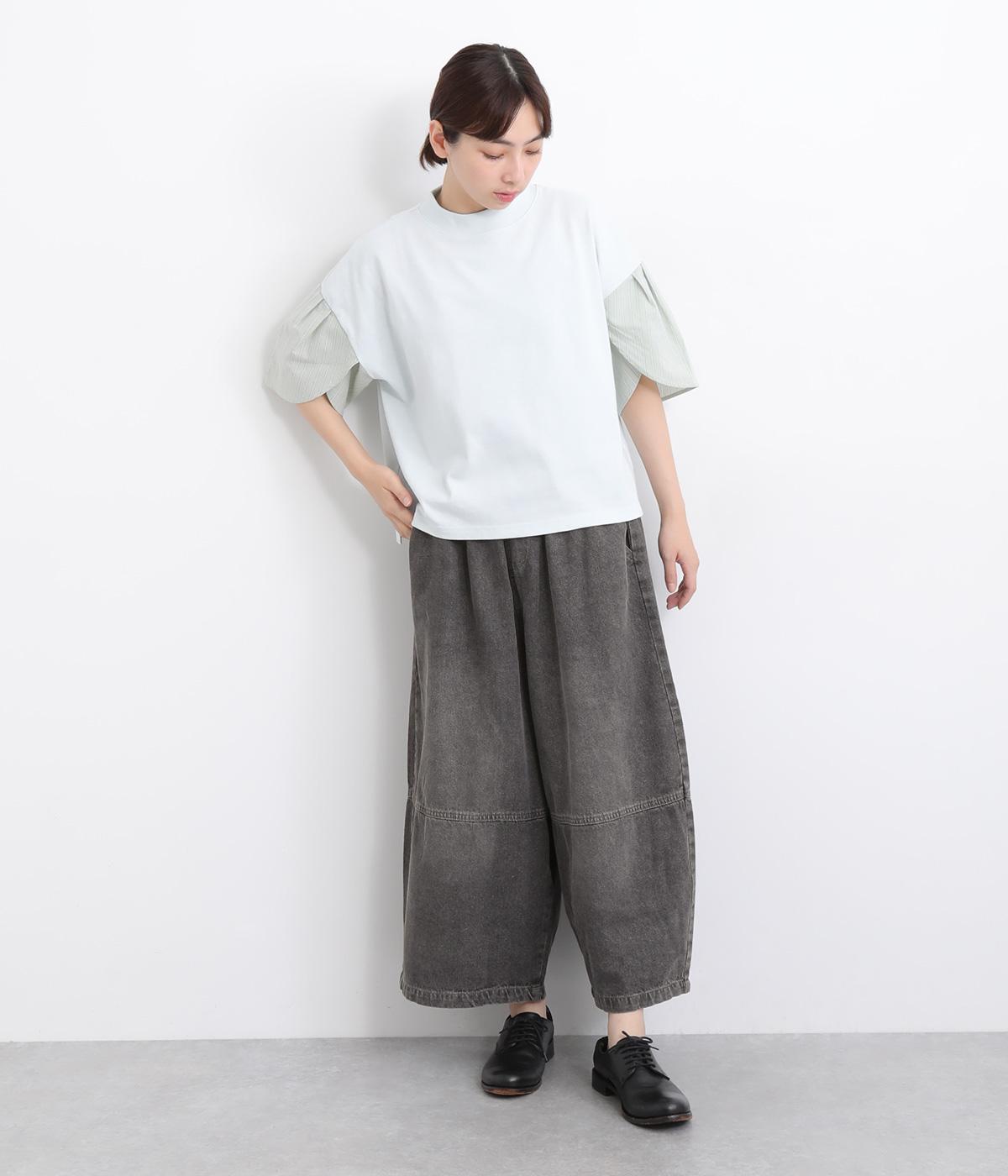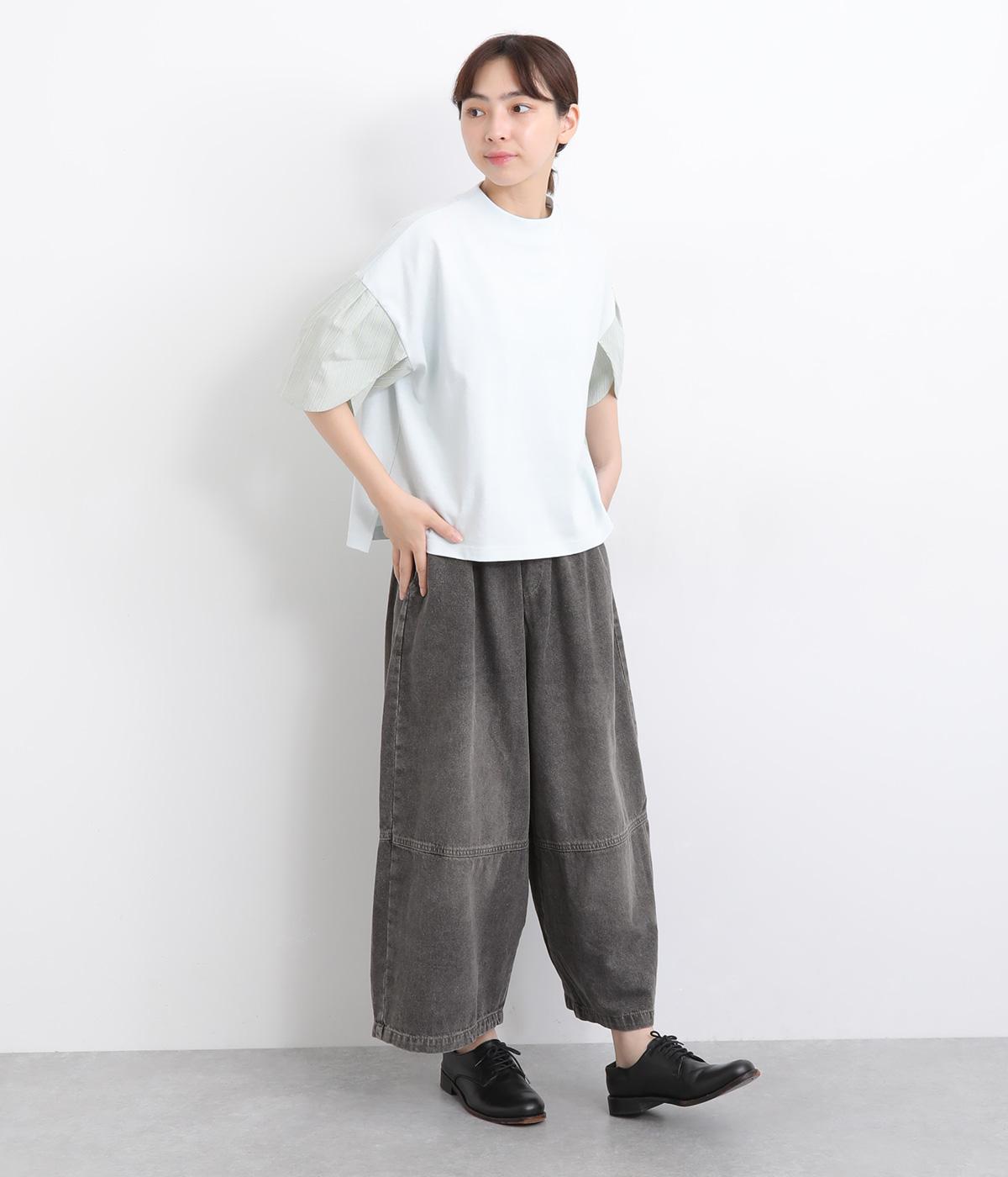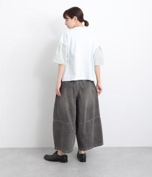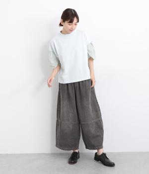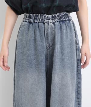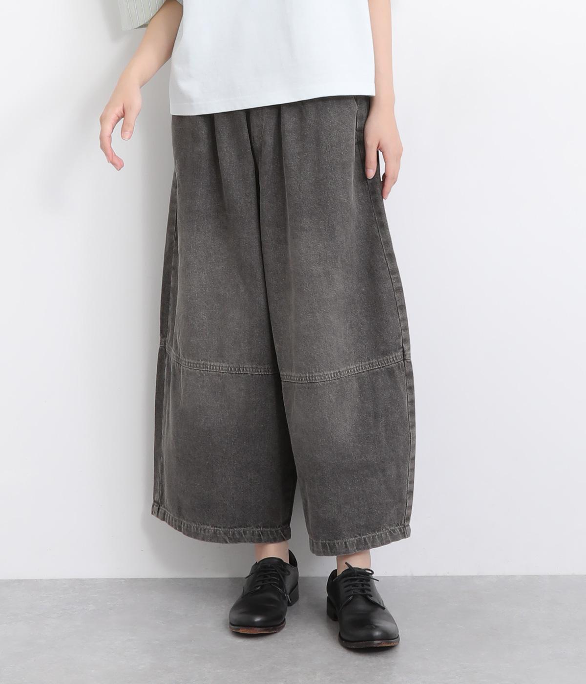 切り替えデザインとやや丸みのあるシルエットが特徴的なデニムパンツ。ウエストはオールゴムのリラックス仕様で、トップスをインしたレトロ感あるスタイリングも◎。シューズ合わせがたのしめるすっきりとした丈感にこだわりました。