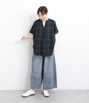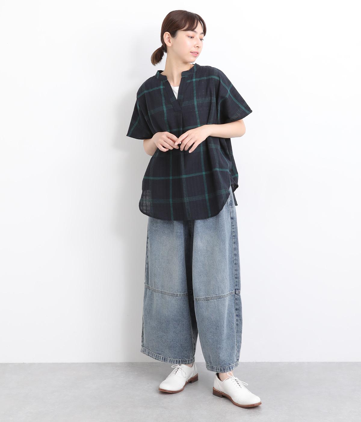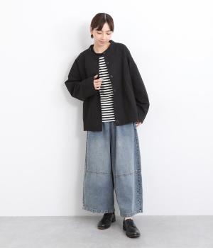 長く愛用しているようなウォッシュ感がかっこいいコットンデニム生地を使用しています。デニムならではのタフさと、初期からやわらかな質感が◎。インディゴ染め特有の色落ちもたのしみです。