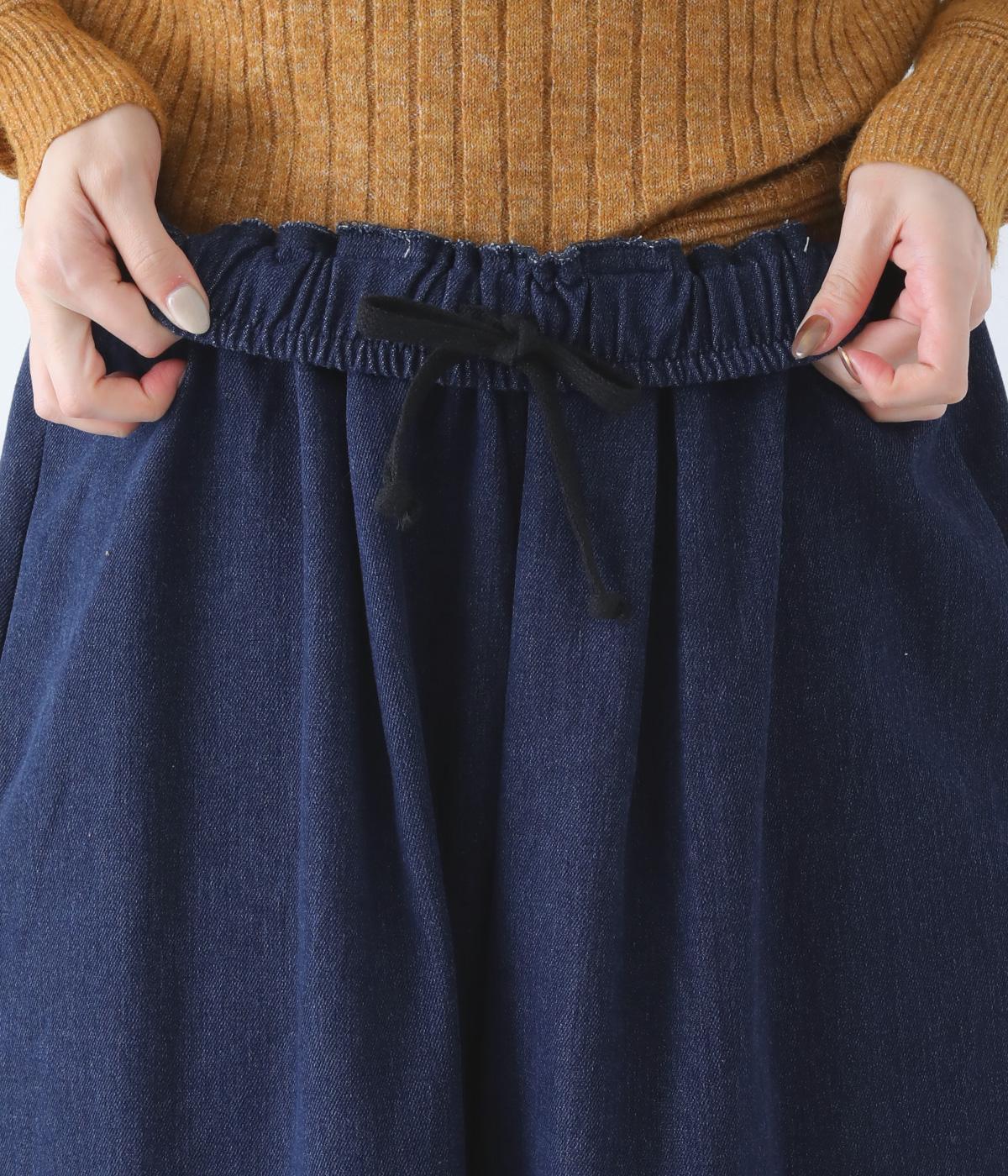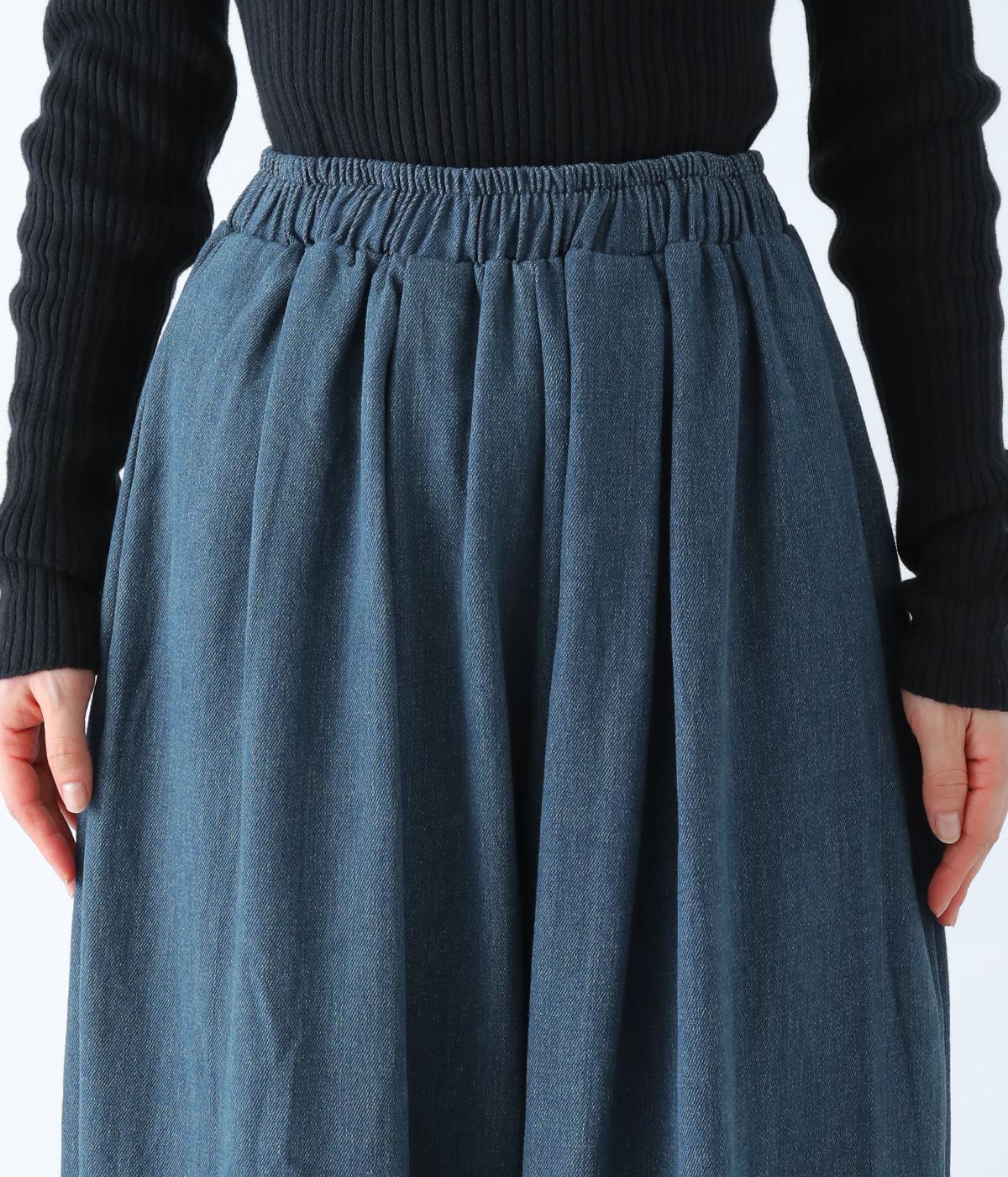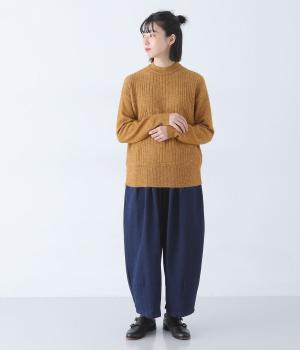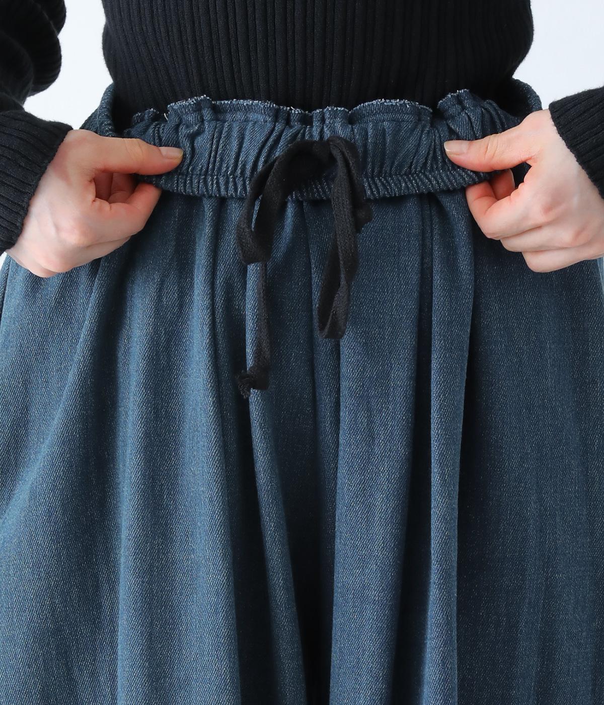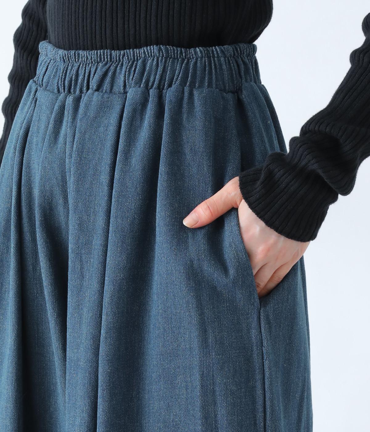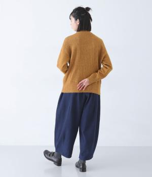 前ウエストにタックを、裾にダーツを施して丸みを帯びたコクーンシルエットに仕上げました。やわらかな生地がドレープを描きながら横への広がりをおさえ、丁度良いボリューム感に整えてくれます。ウエストは総ゴム仕様で、フィット感を高める内紐つきです。
