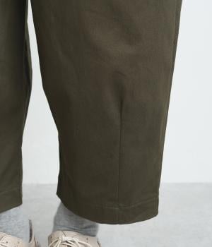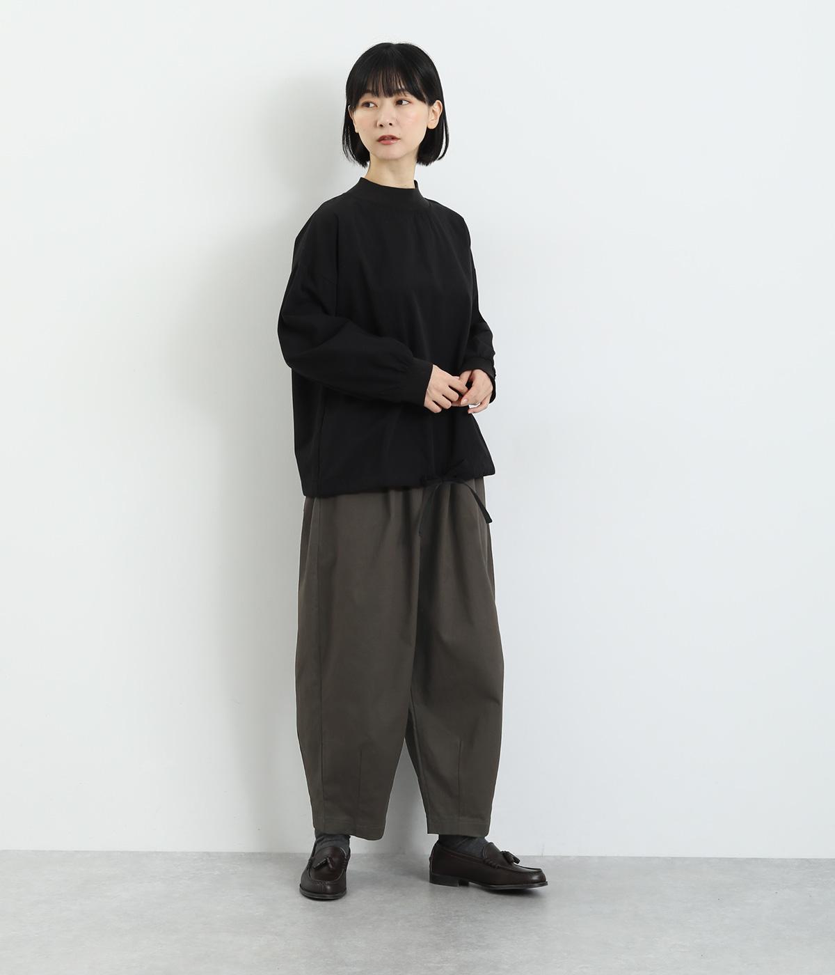 ウエストラインから裾までの美しい曲線が印象的です。大きめなギャザーでゆとりをつくり、裾まわりは洗練されたタック仕様に。きれいめカジュアルな雰囲気で、トップス次第でさまざまな着まわしを楽しめます。腰まわりはゴム入りで心地よさも抜群。