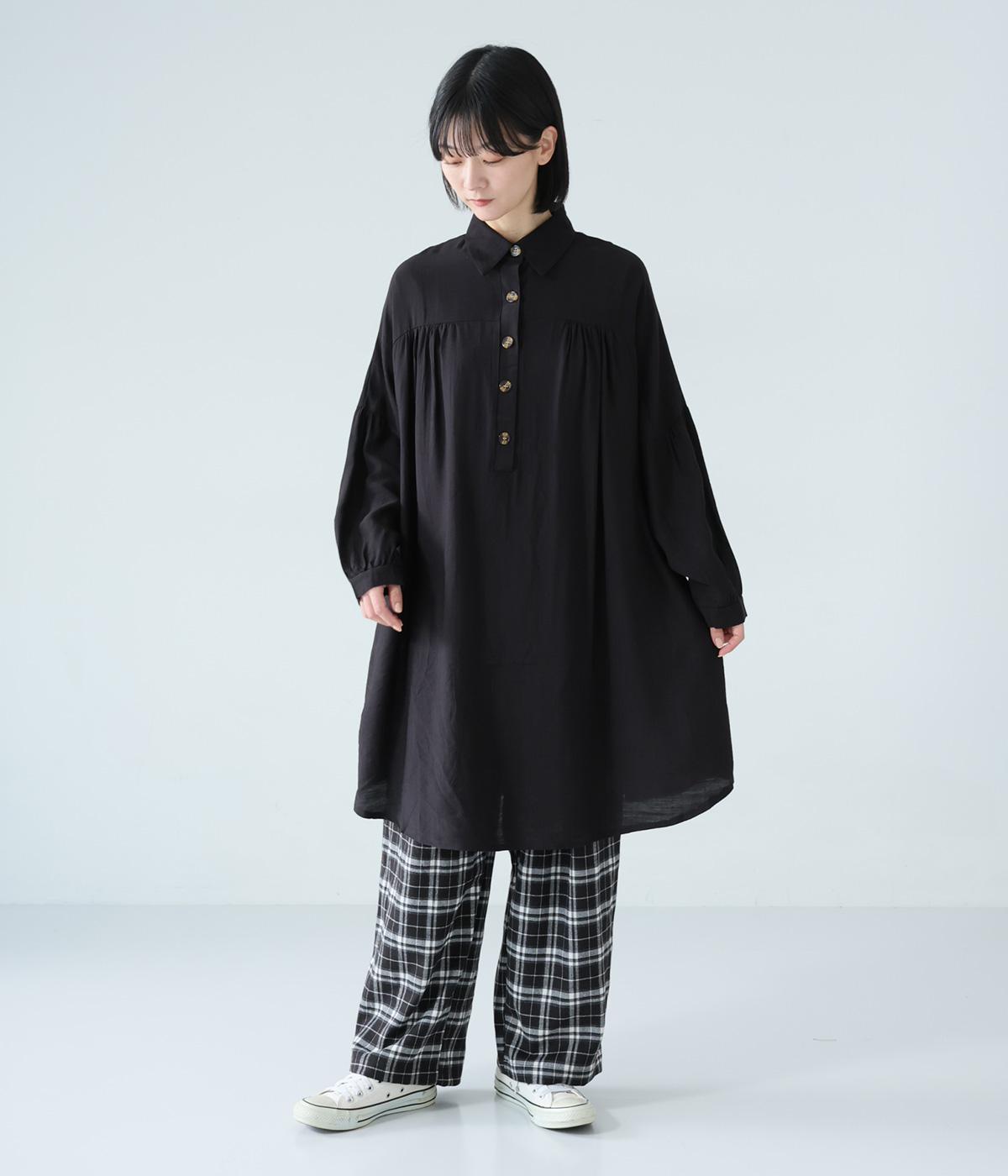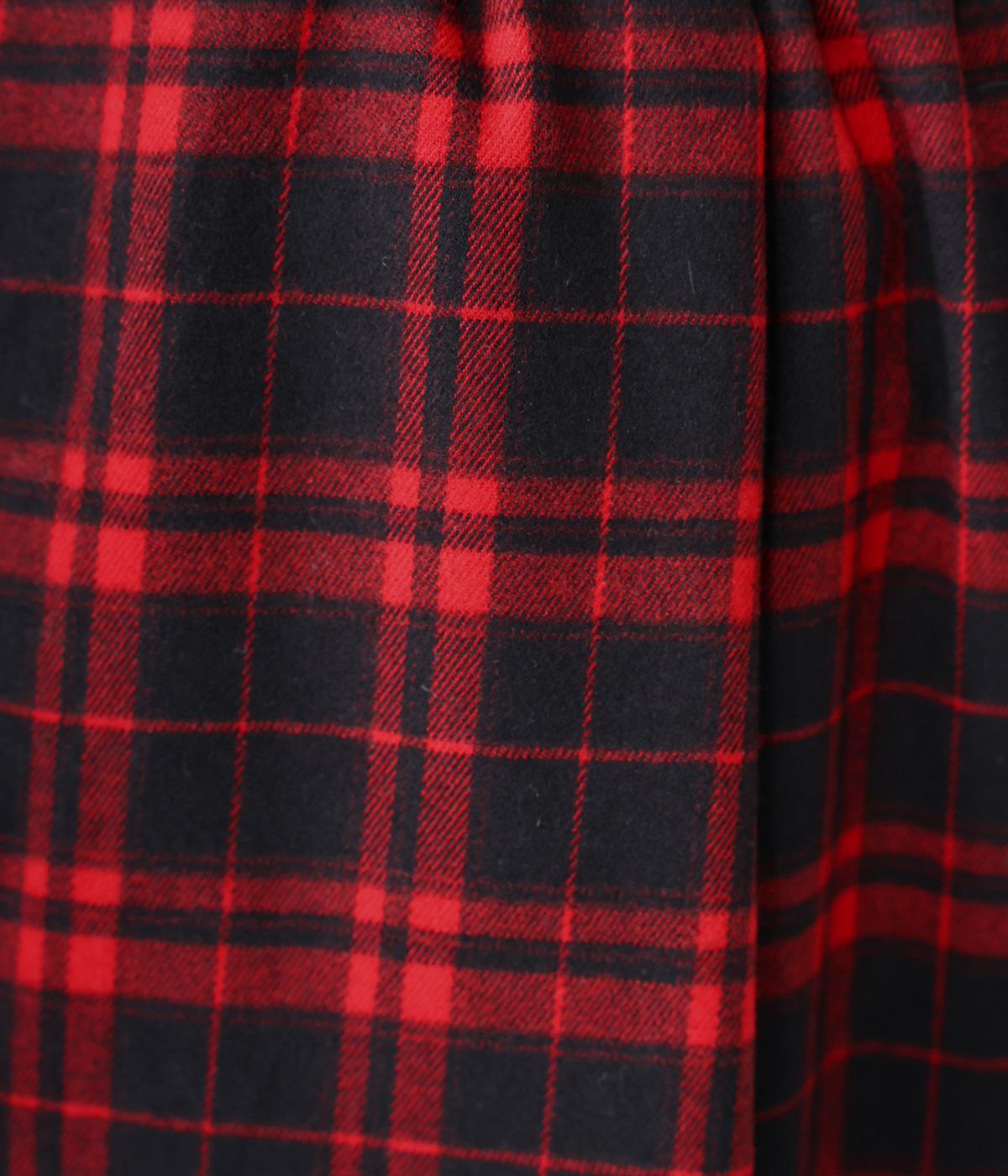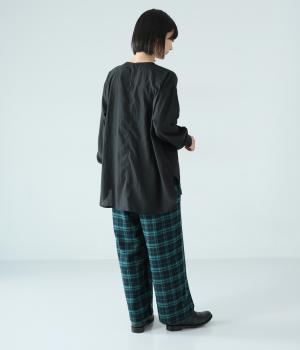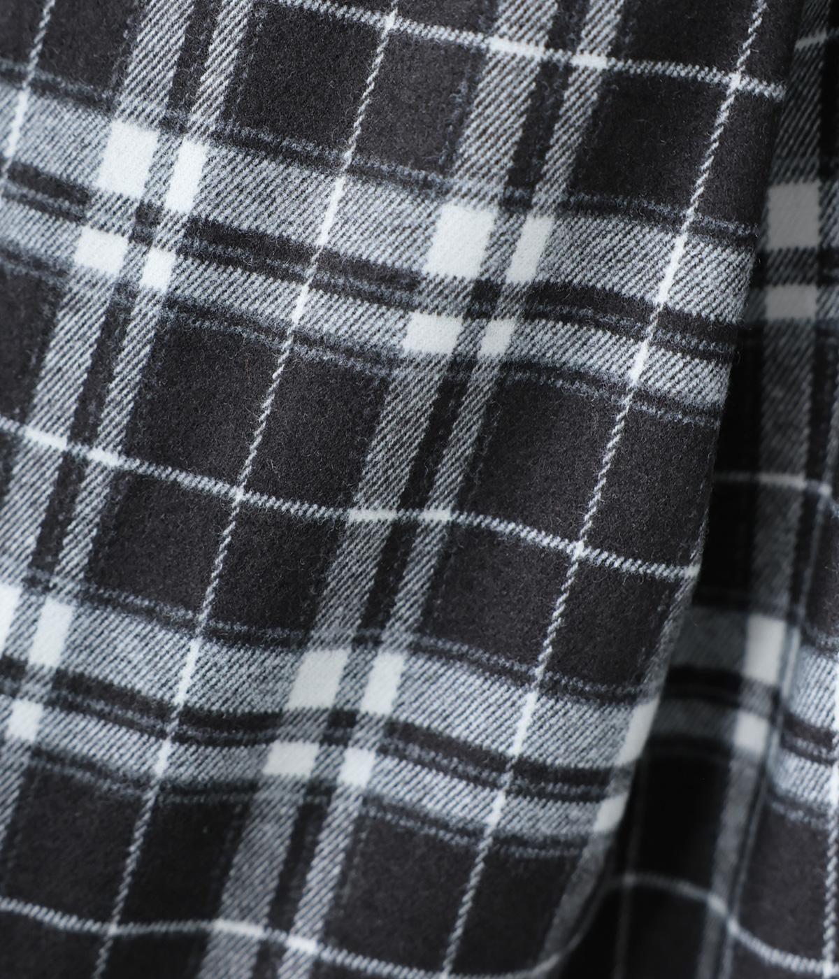 コットンをブレンドしたやわらかな風合いの生地を使用しています。ふっくらとした起毛が空気を含み、とても軽くてあたたかな着用感に。色に深みを出した先染めチェック柄にも注目です。