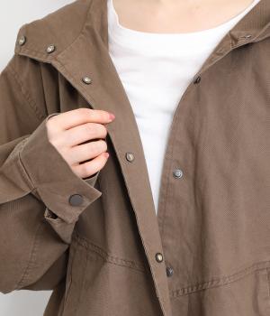 スナップボタン&フードがカジュアル感を盛り上げるパーカーです。ゆったりとラフな羽織りスタイルがさまになり、裾アジャスターでシルエットのアレンジもたのしめます。ライトアウターとして季節の変わり目などロングシーズン活躍。