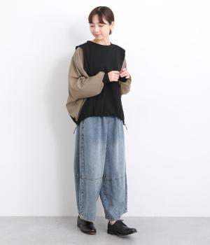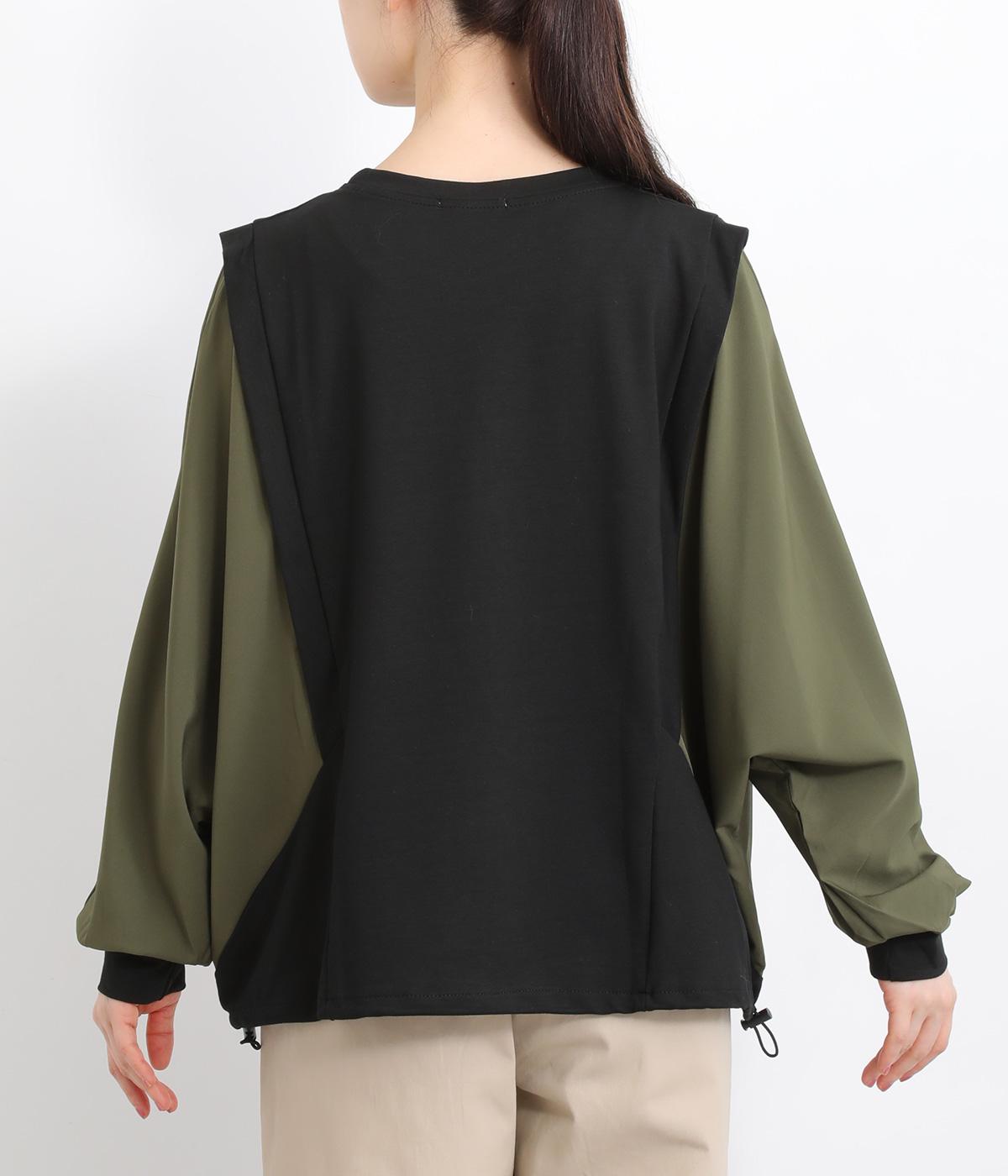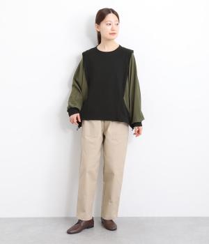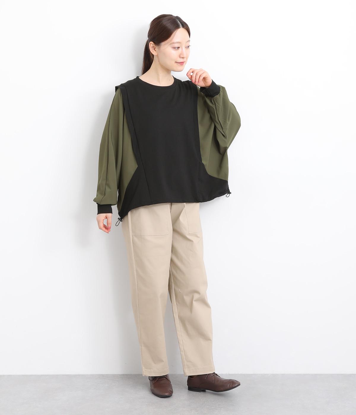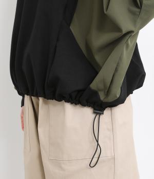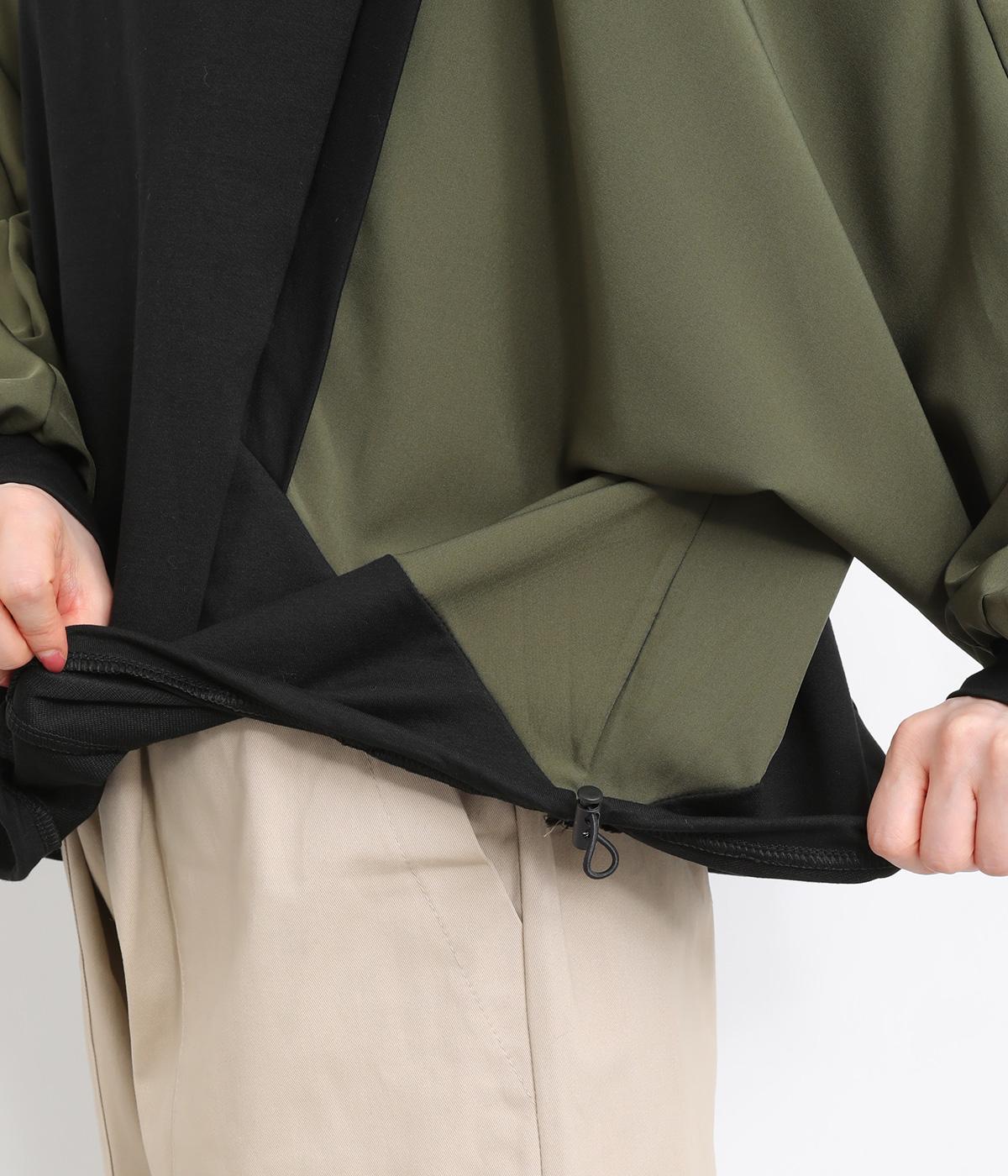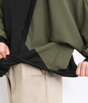 シェイプした切り替えラインがすっきりとした印象を与えつつ、ドルマンスリーブで着心地はリラクシー。裾のアジャスターでシルエットをアレンジしたり、袖口は伸縮性のある生地を配しているのでたくし上げも◎。