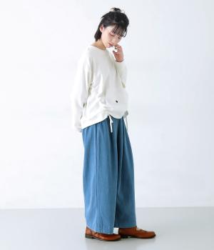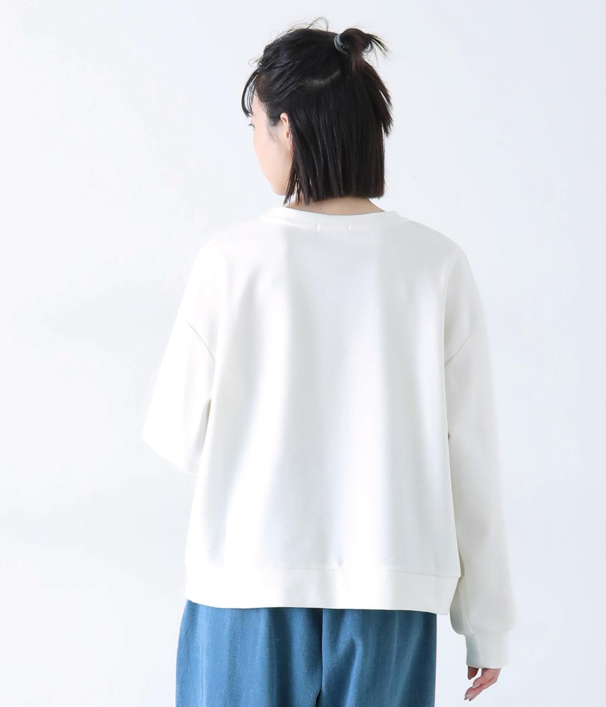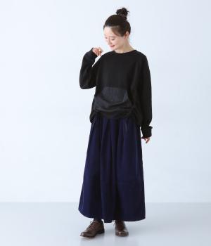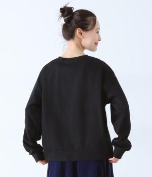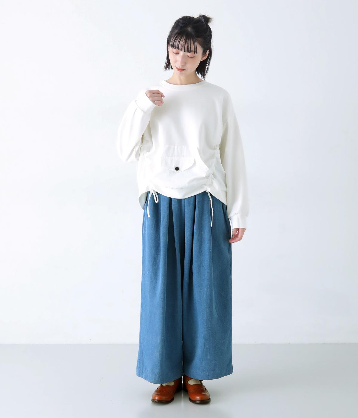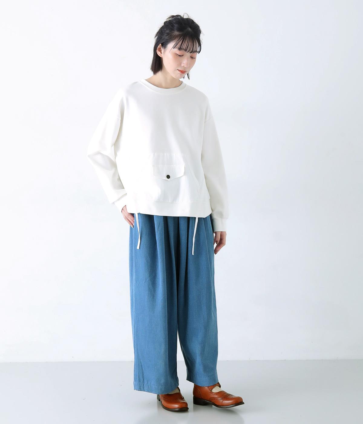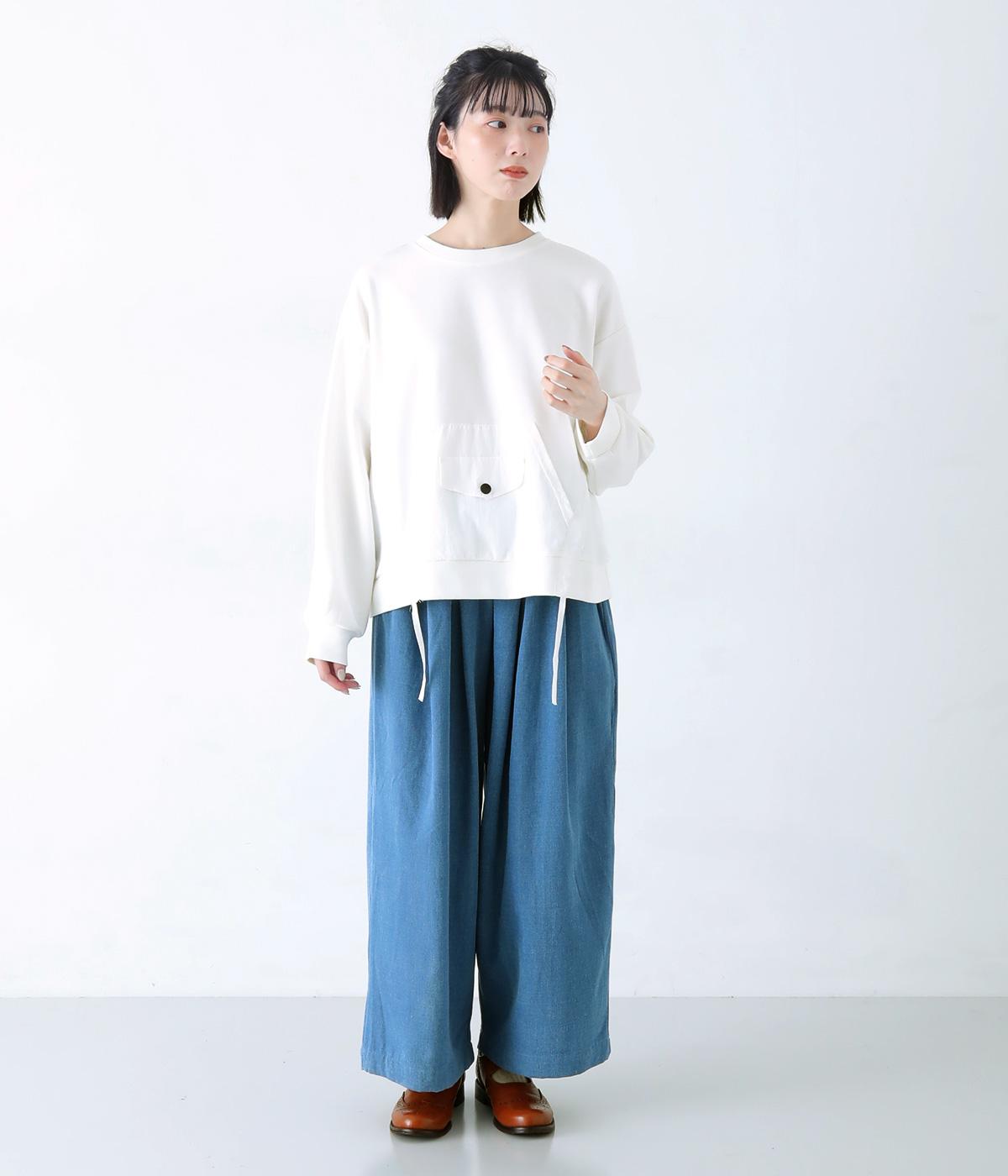 メイントップスとして活躍する適度な厚みのあるコットンポリエステルのカットソー生地。やわらかな風合いで快適に着用できます。ポケット部分にはさらりとした薄手のポリエステル布帛生地を使用しました。