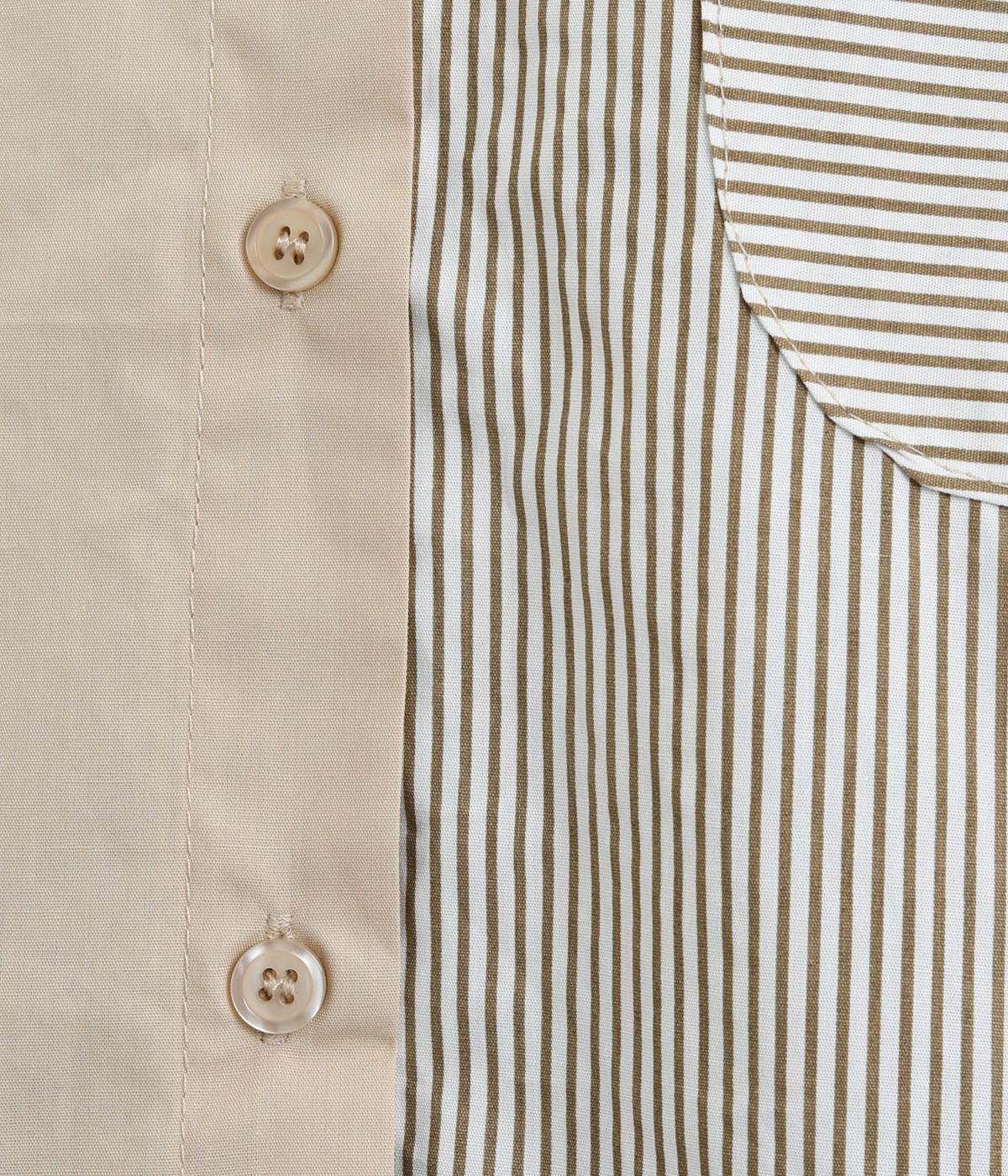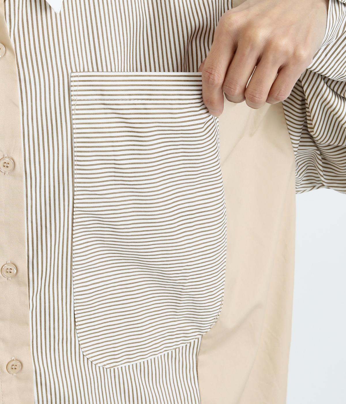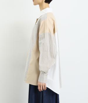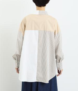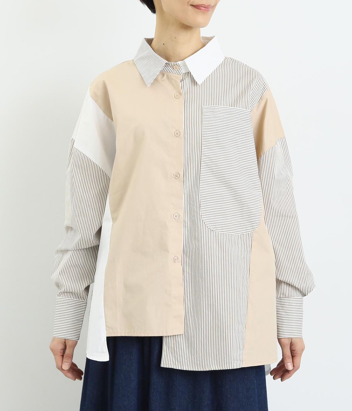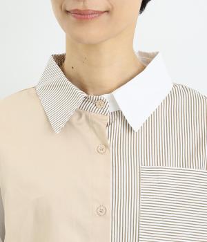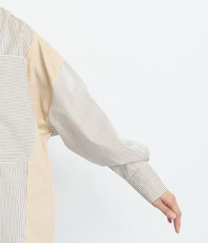 ハリ感のあるコットン素材で、なめらかな肌触りが魅力的。異なる生地のコンビネーションはカジュアルすぎないのも大人にうれしいポイントです。