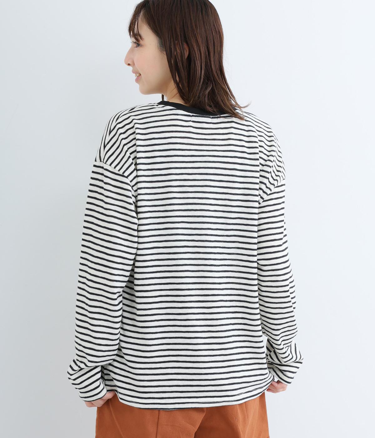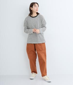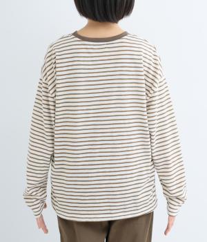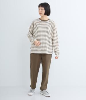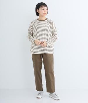 薄手のニット素材で、あたたかみのある見た目が特徴的な細ボーダープルオーバー。定番のボーダー柄は、流行に左右されない王道デザイン。一枚もっていれば、毎シーズン活躍します。家庭で洗濯ができるのもうれしいポイント。