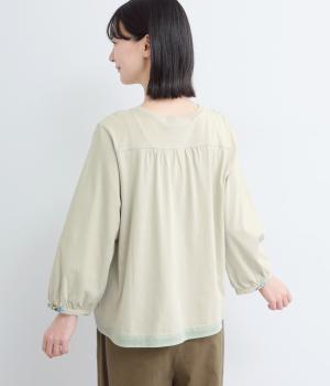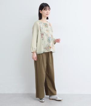 無地や柄の布帛、カットソーなどを組み合わせて着心地の良さとお洒落感を両立。ルシオール加工による、洗いざらしのようなナチュラルなワッシャー感と、天日干ししたようなやさしい風合いが魅力です。